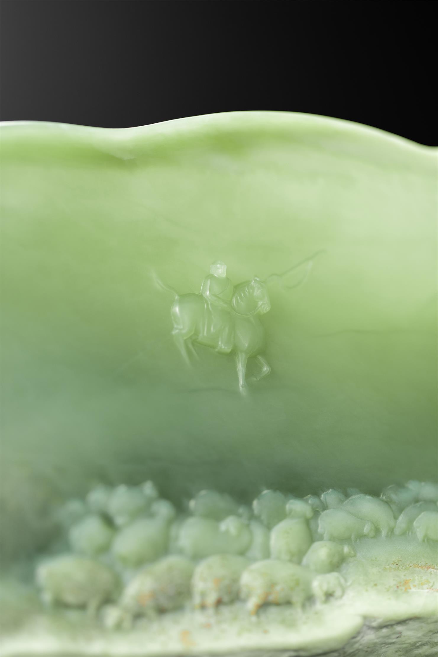 毋庸置疑,这样的作品必须是有两面雕工,且要薄可透光才能营造朦胧而梦幻的意境,彰显雕者技艺精湛和玉质优良。