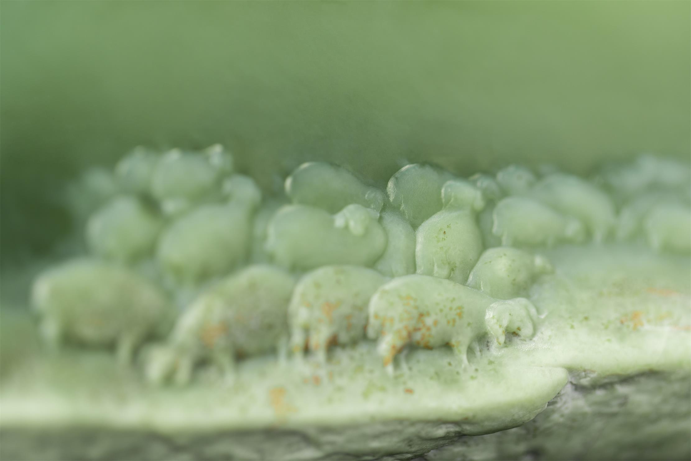去皮打磨后的析木玉玉肉,透闪清雅的嫩绿光泽。