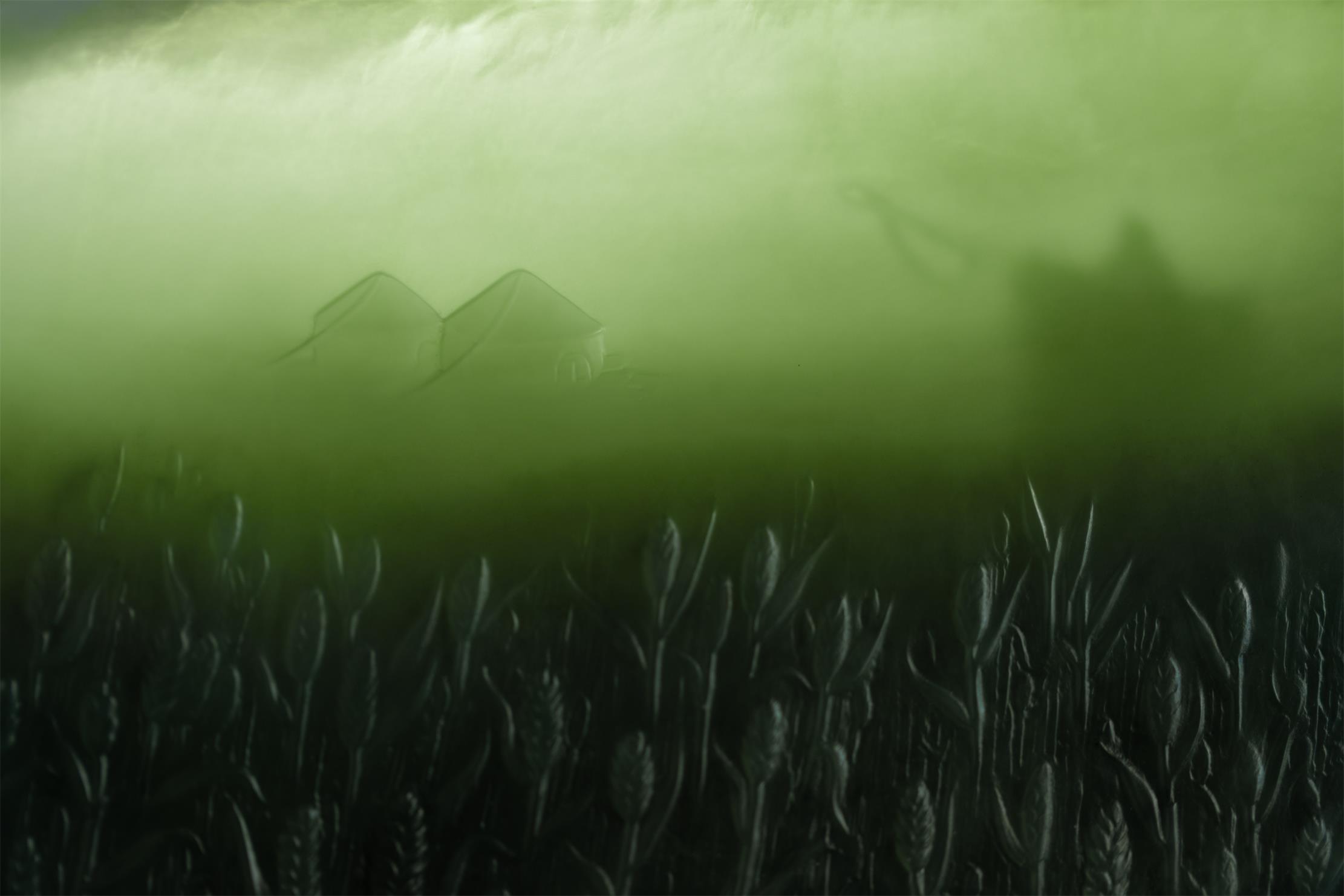 那一排排高挺叠立的绿植,应是草原上绿玉葱葱的麦子。