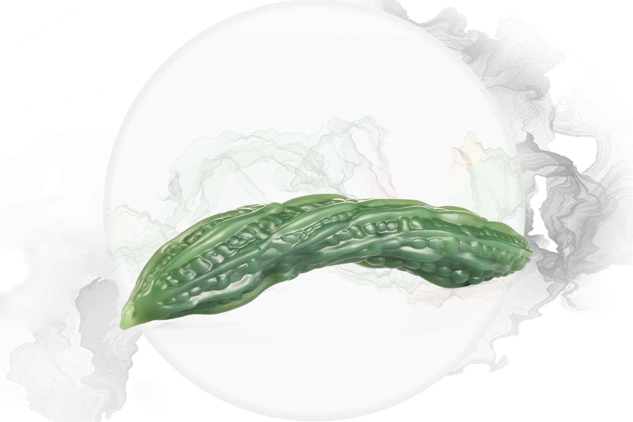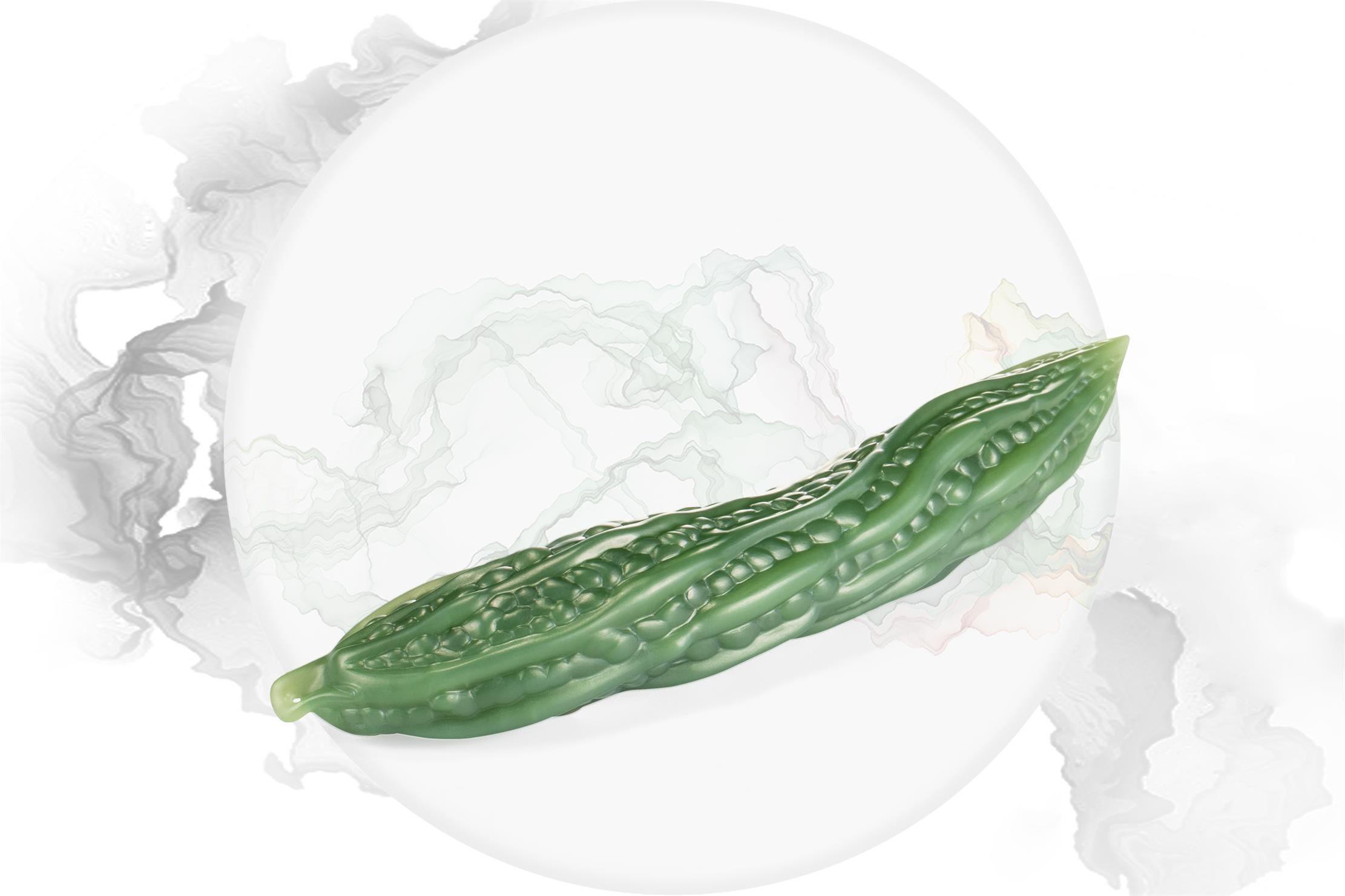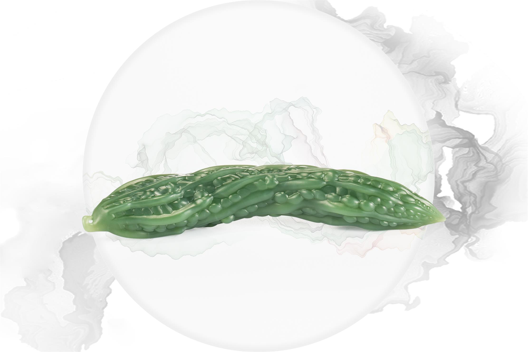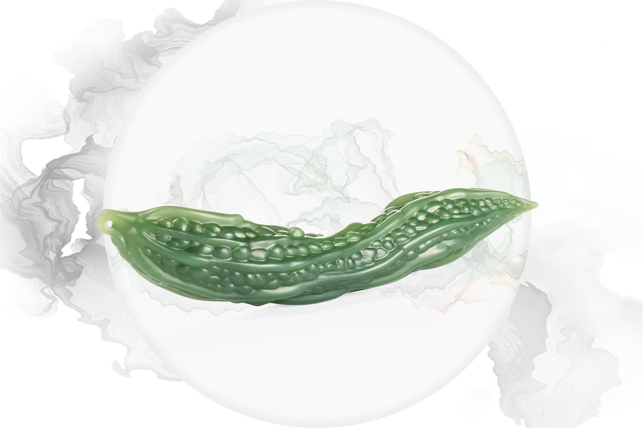 千璞滙旗下中国玉石雕刻大师张庆东,以析木玉创作的《否极泰来》,正是写实果蔬,既我们餐桌上常见的——苦瓜,又称癞瓜、凉瓜和荔枝锦。