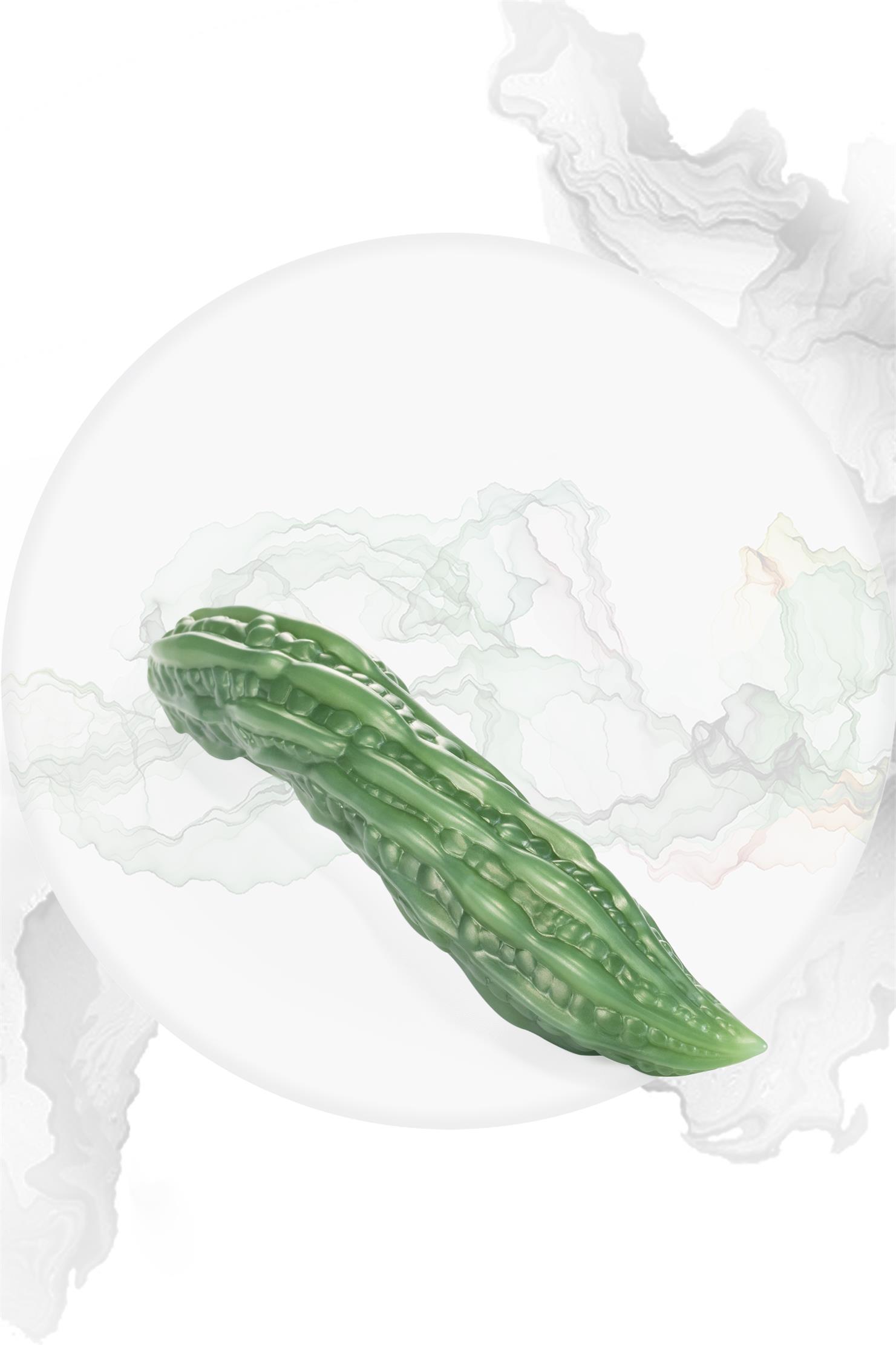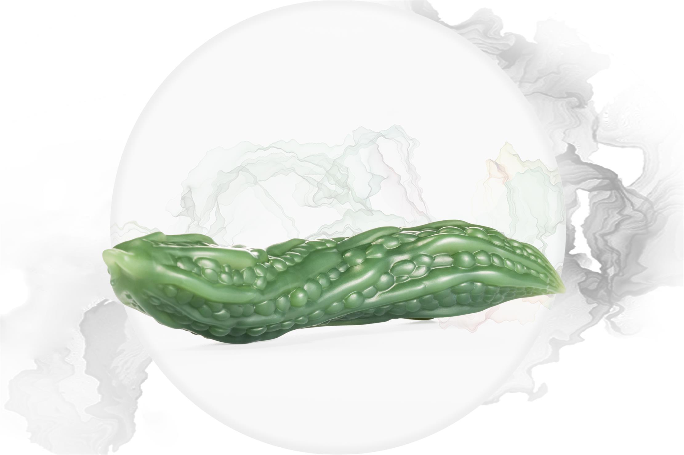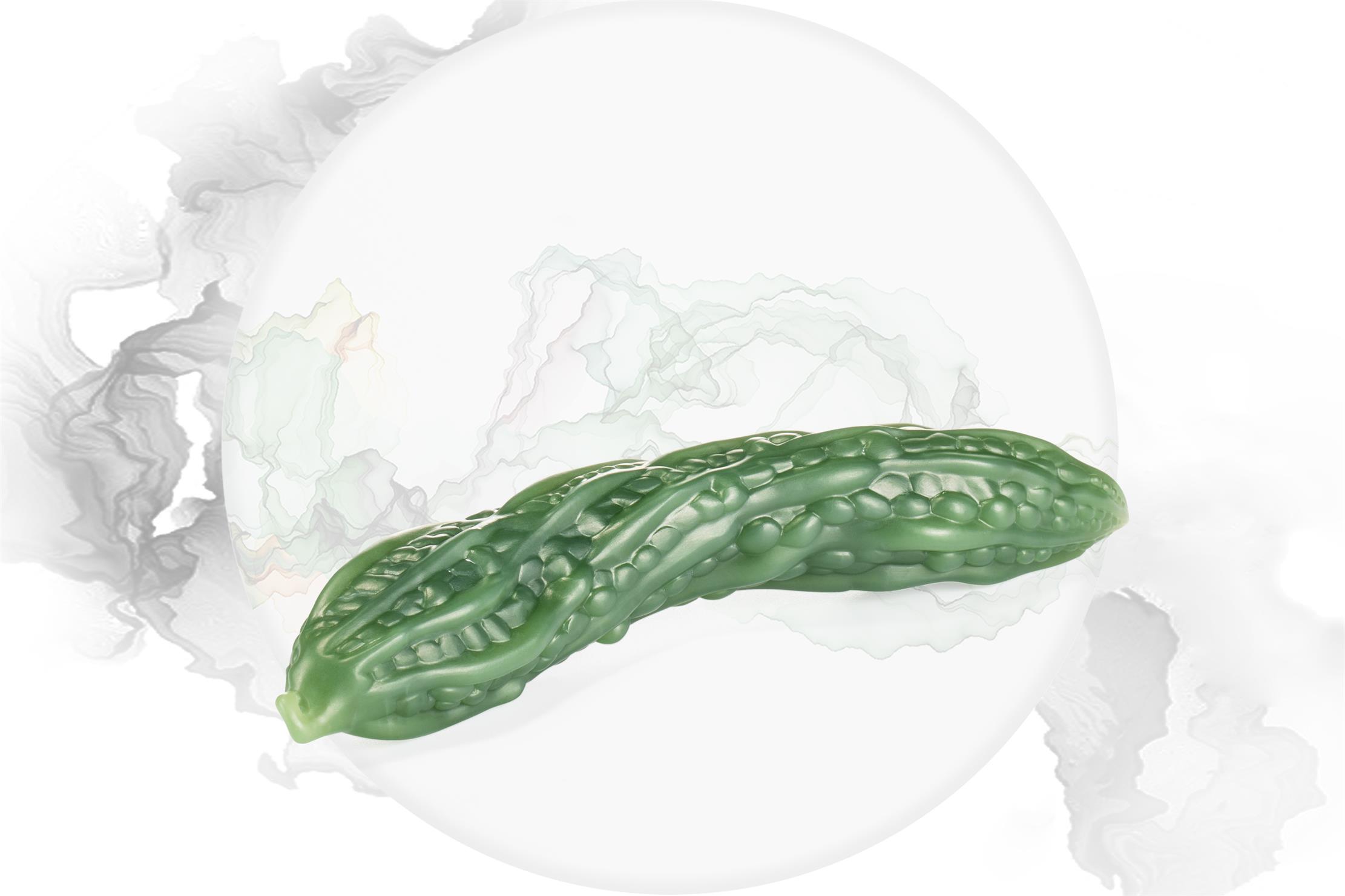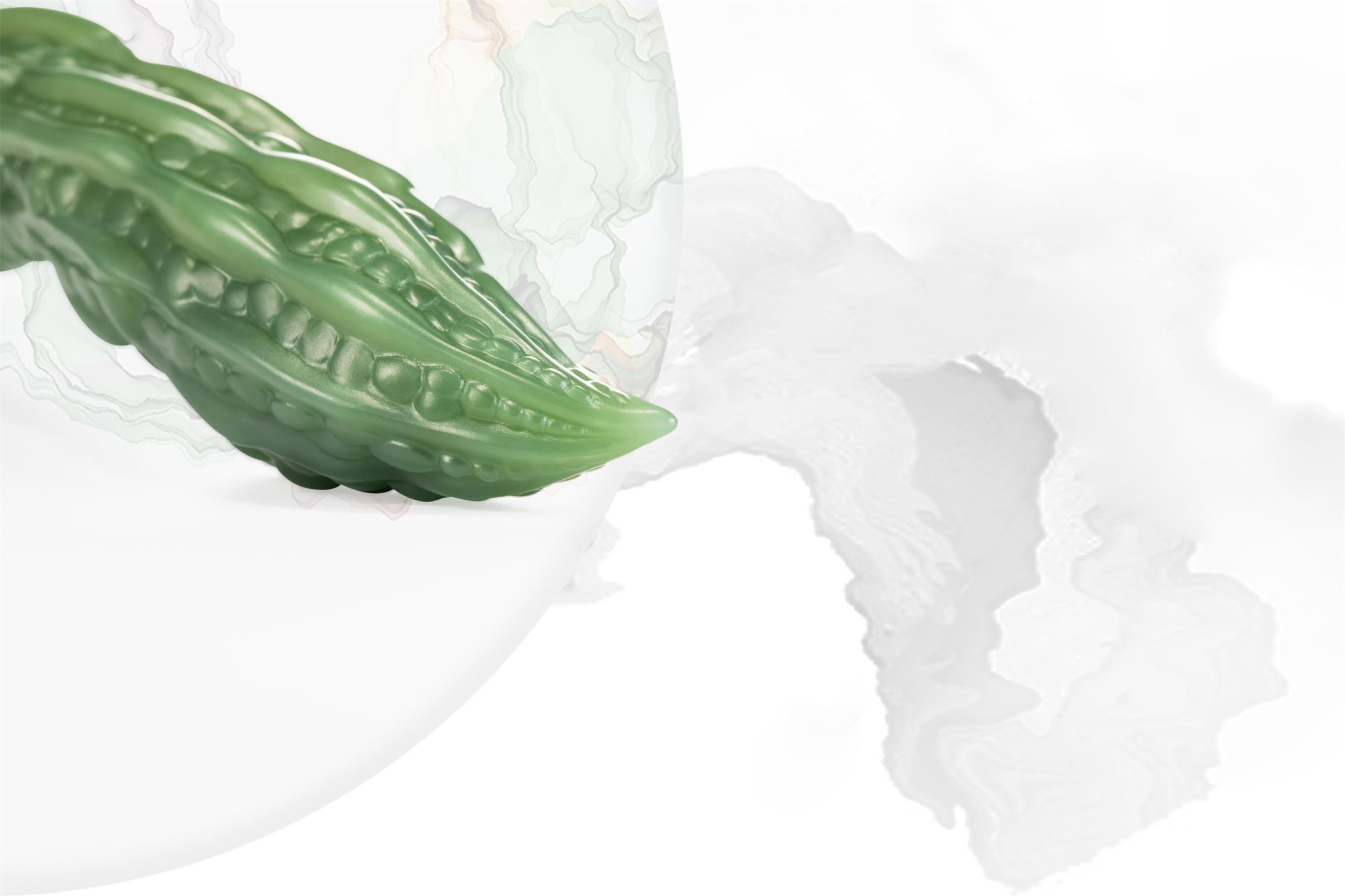 千璞滙旗下中国玉石雕刻大师张庆东,以析木玉创作的《否极泰来》,正是写实果蔬,既我们餐桌上常见的——苦瓜,又称癞瓜、凉瓜和荔枝锦。