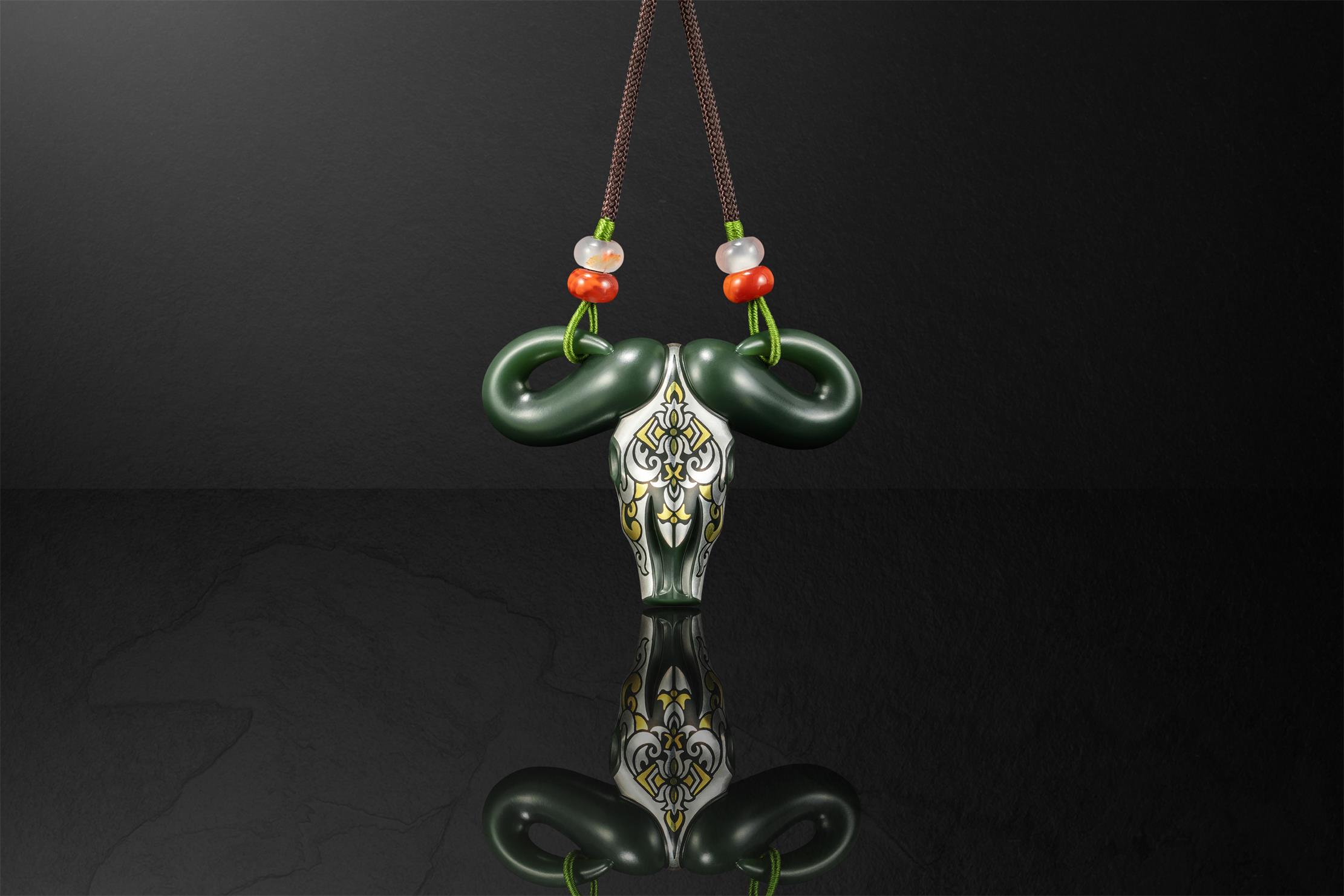 中国玉石雕刻大师张庆东,今天就以牛首为创作体裁,圆雕了析木玉挂件《牛运当头》。