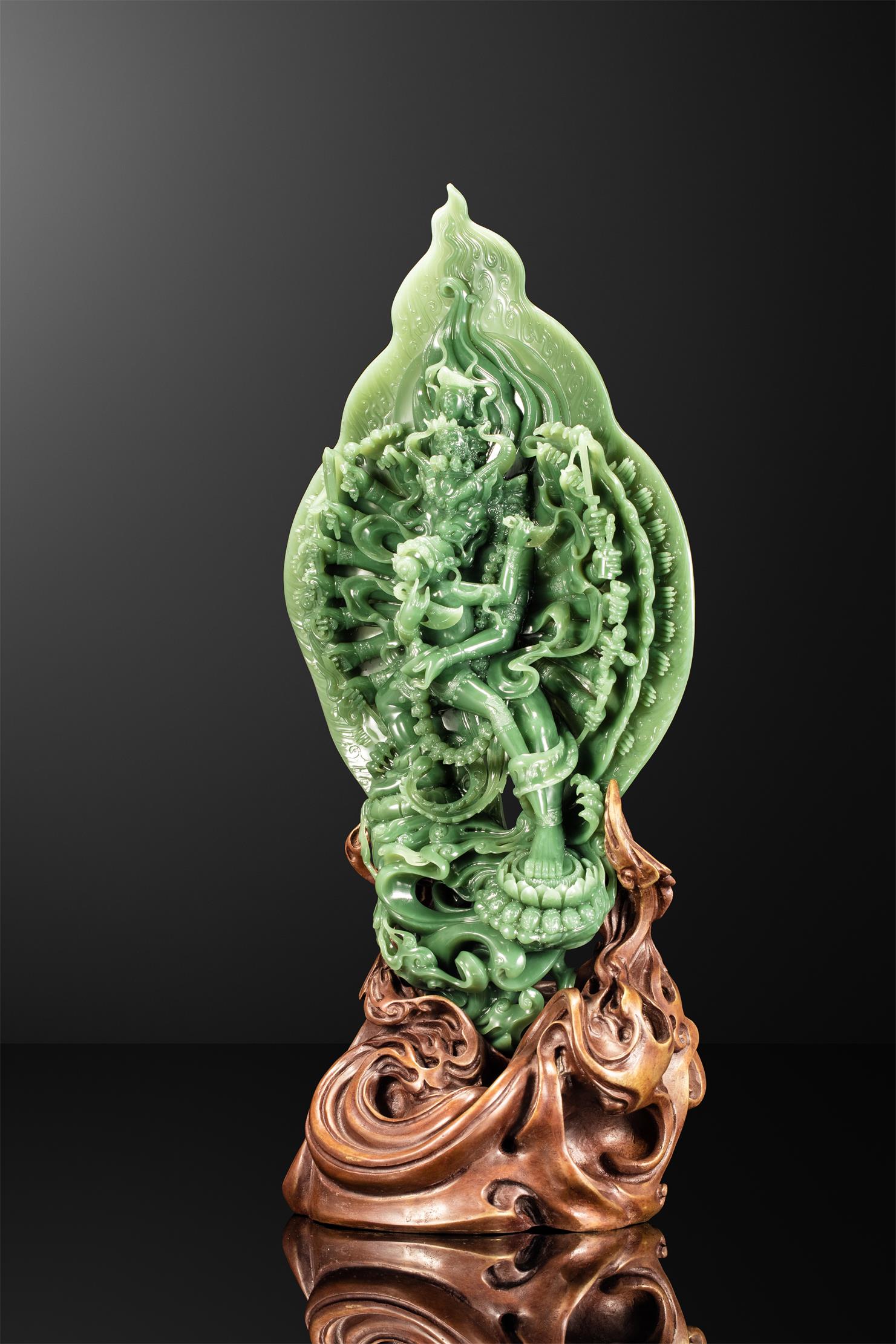 当小编看到中国玉石雕刻大师张雪松,以析木玉创作的《大威德金刚》时,只能用惊叹再惊叹来表其风格独到的做玉之功!