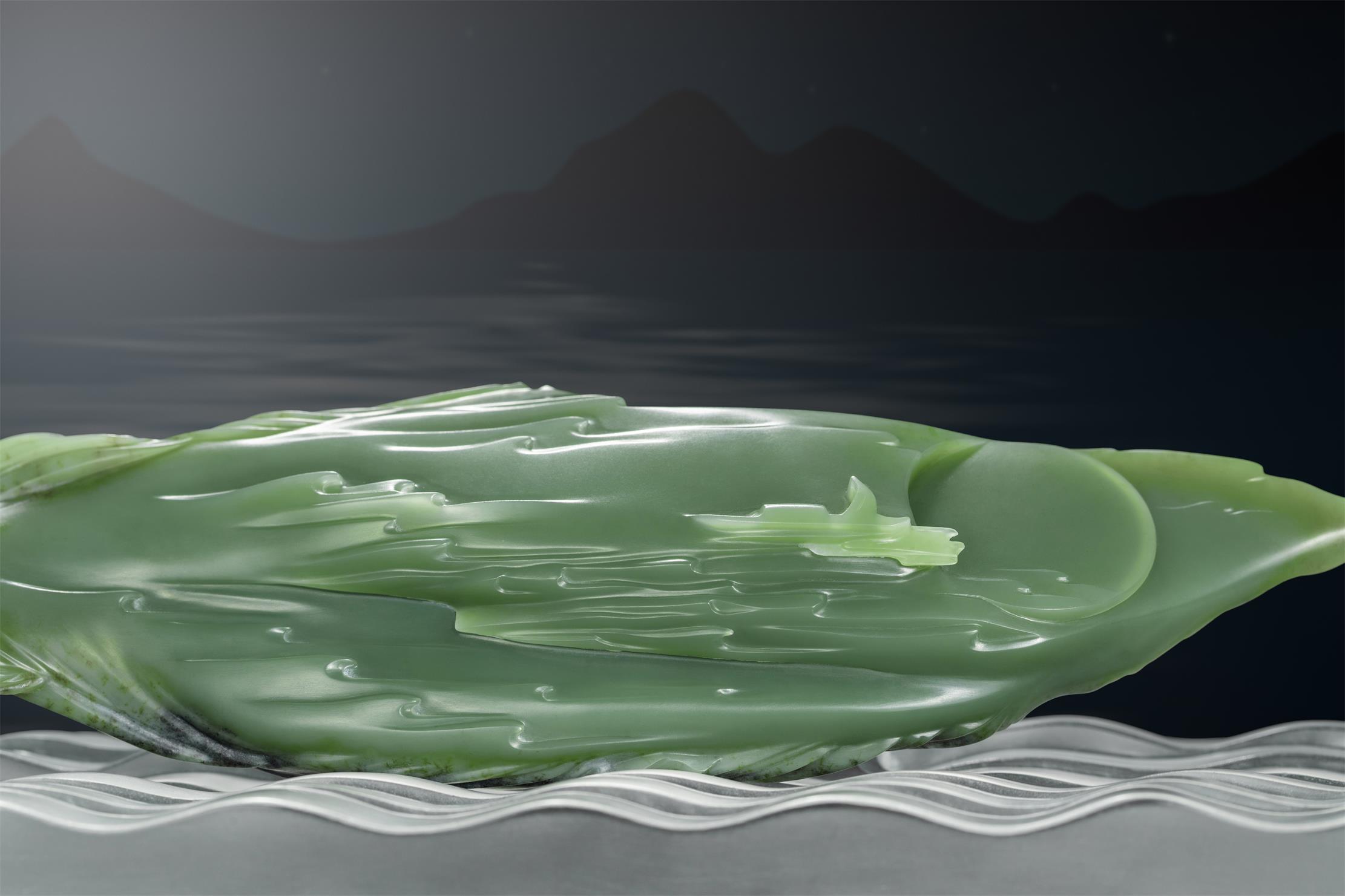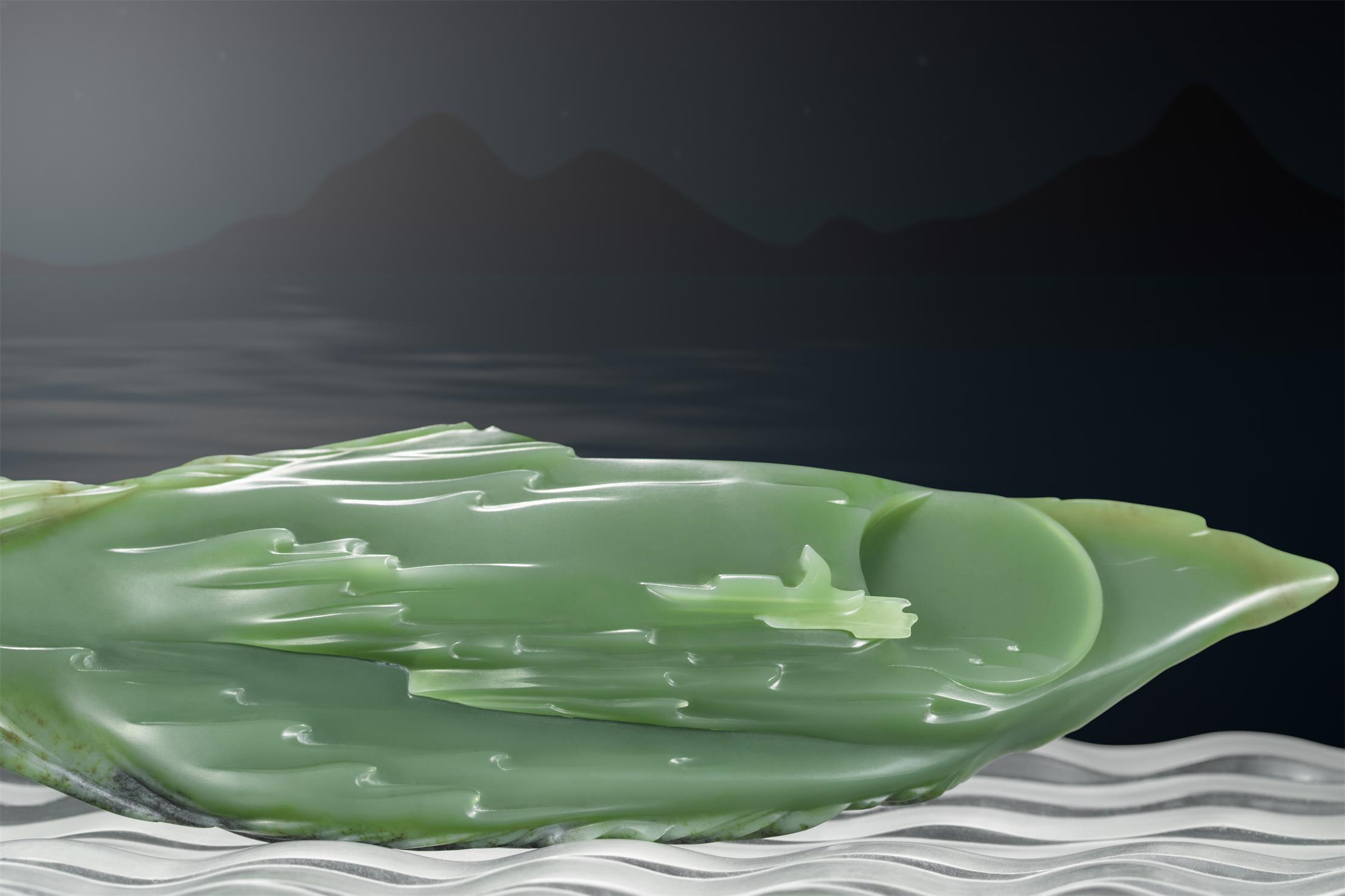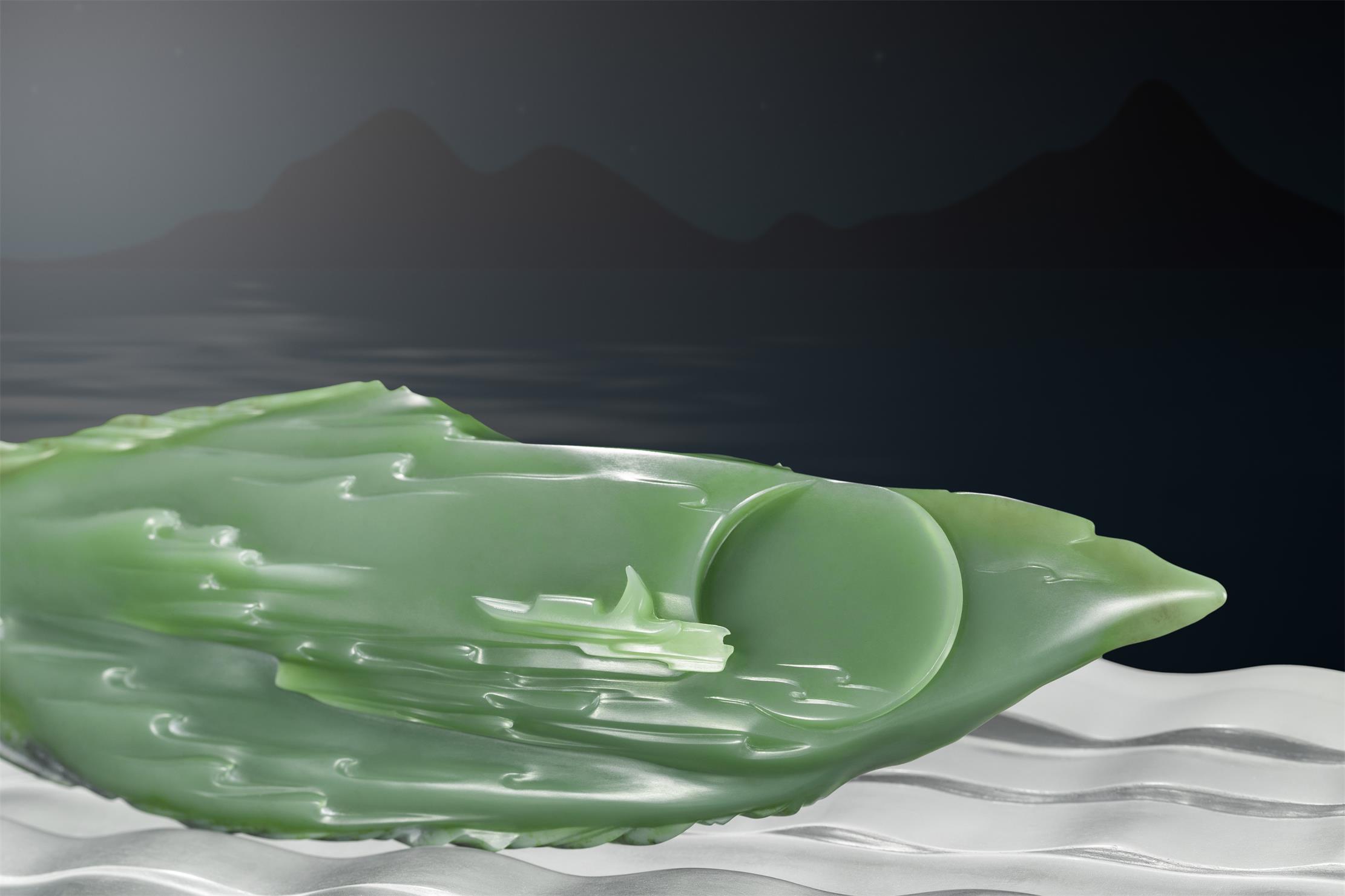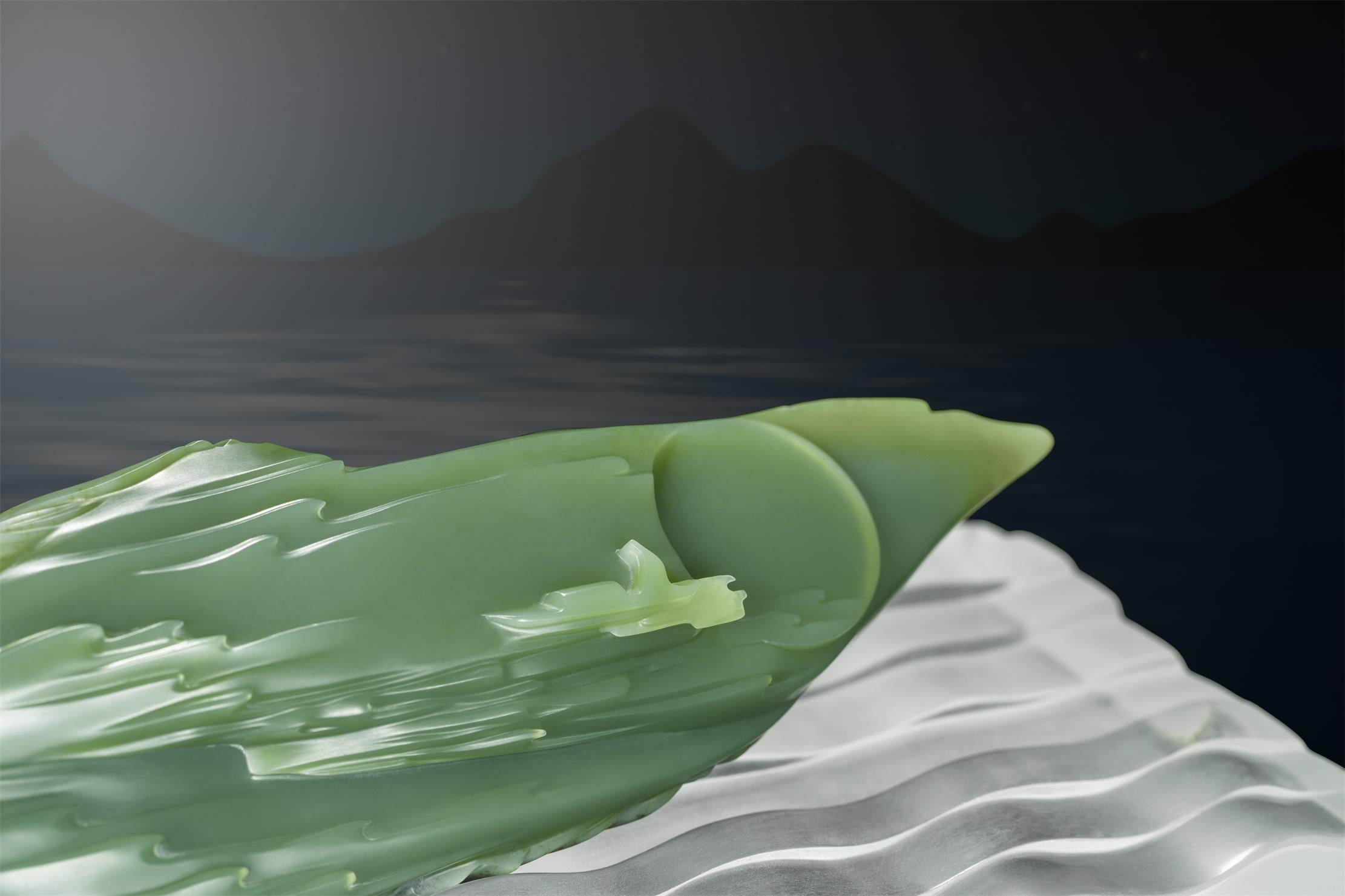 他说,他喜欢在柔和的月辉中,深刻心事;喜欢将那些离情别绪,以及人生感慨,用线条、构图和意境,表现在润美的析木玉上。