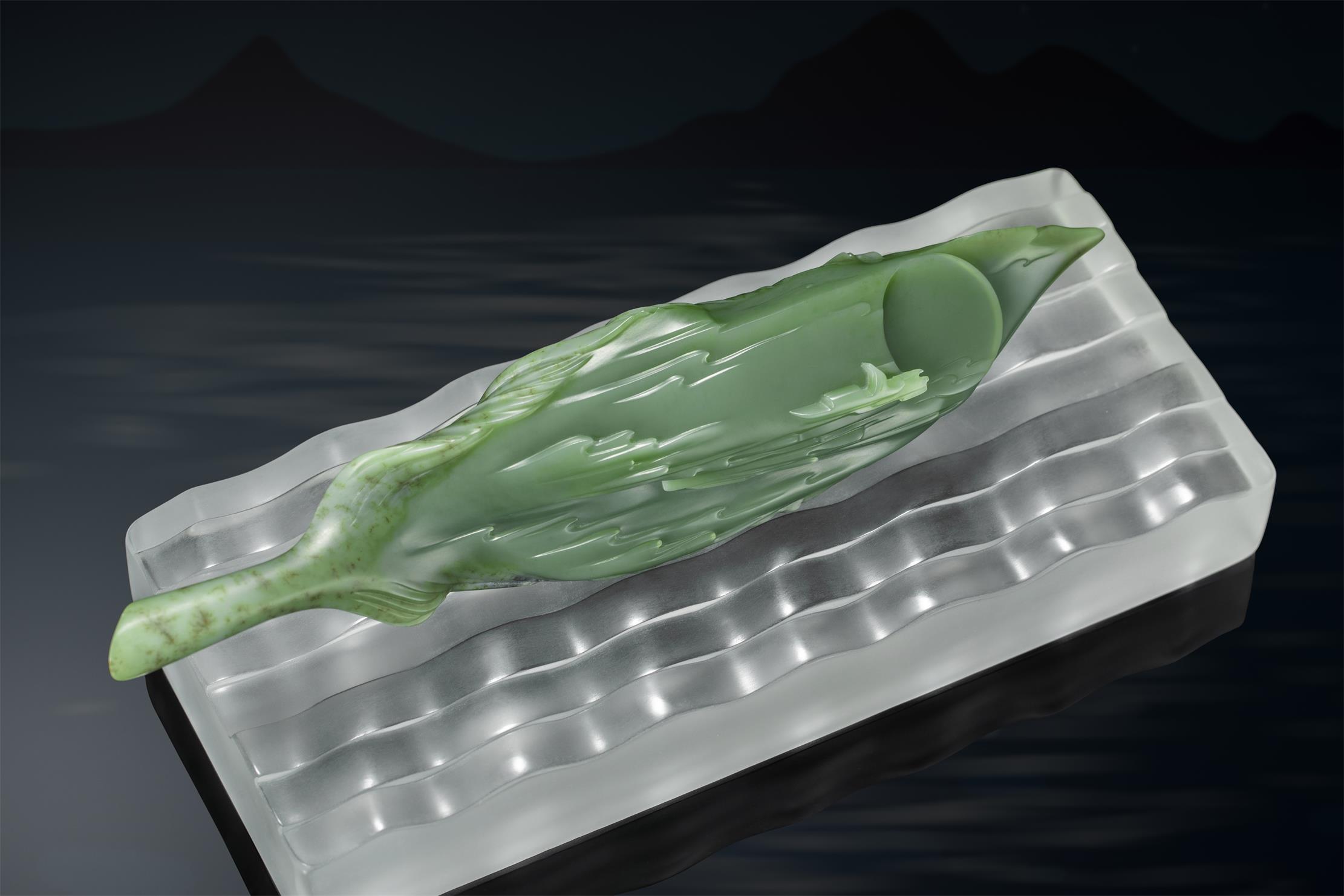 圆雕摆件《海上生明月》,正是其思乡时所作。他希望我们能在海天寥廓里,感悟到游子月夜泛舟还乡的急切,以及“弄潮儿向涛头立”的勇敢进取。
