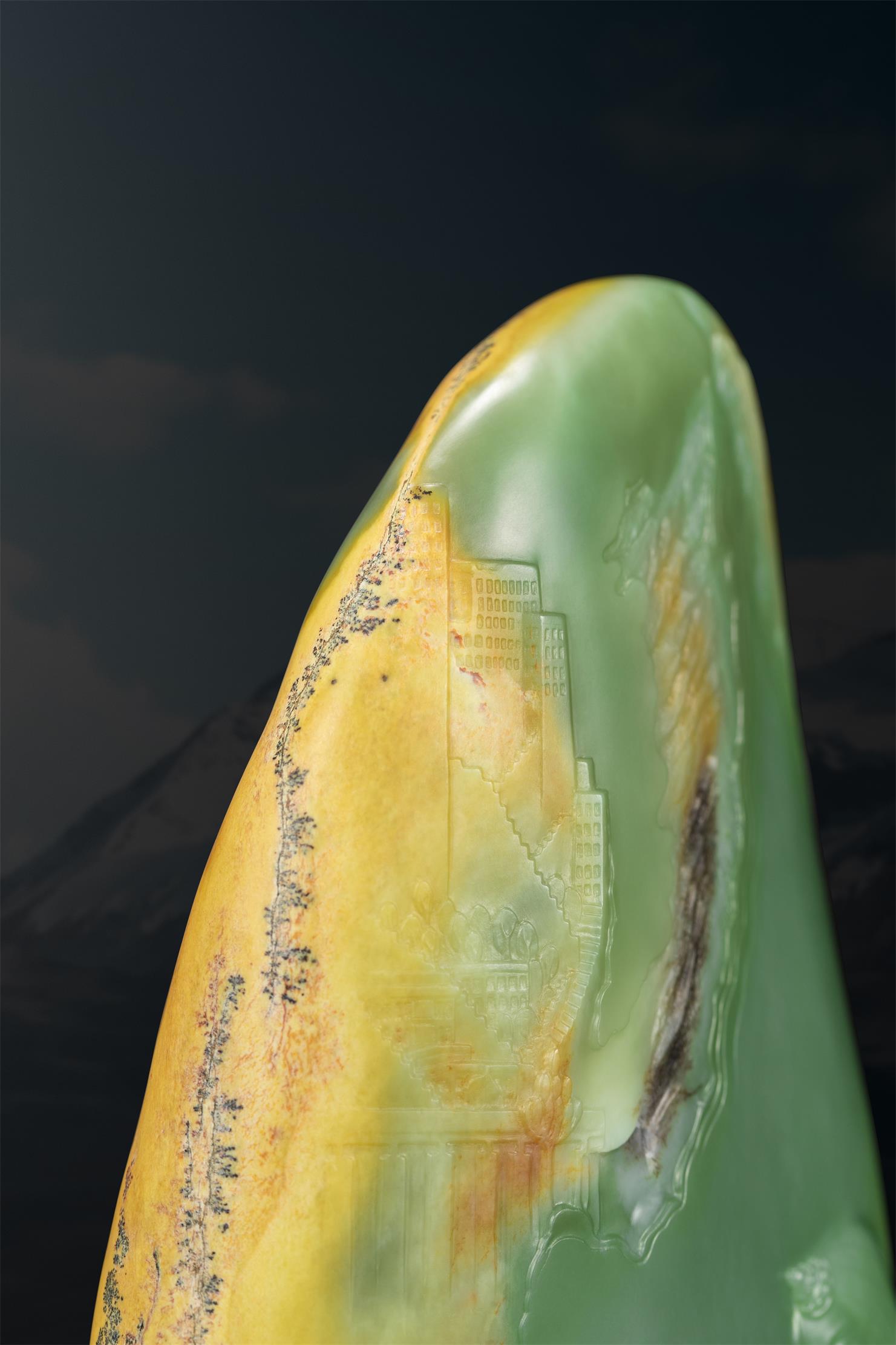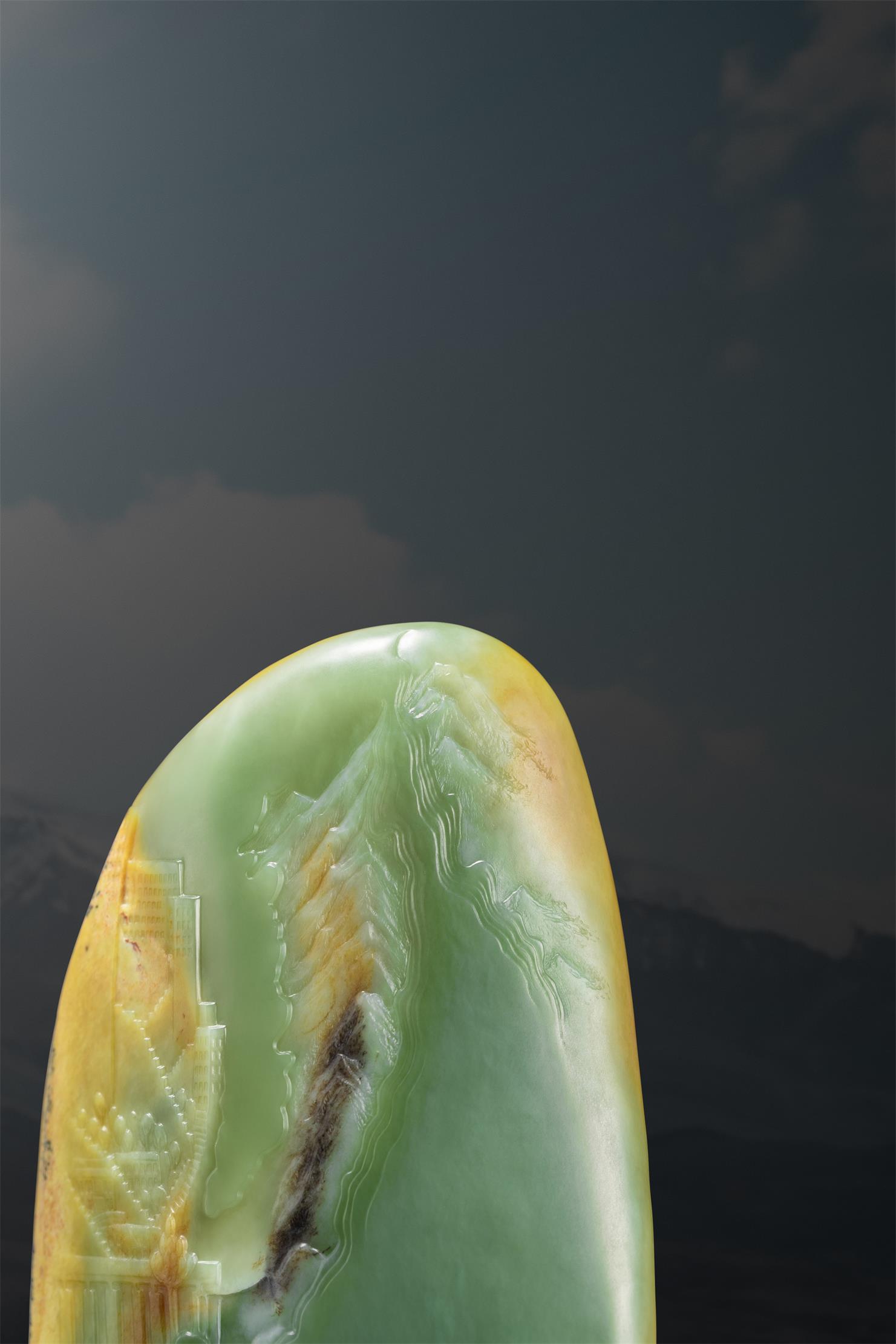 那一天,我在白皮绿肉的玉上刻下雪域高原底座,蓦然听见他诵经中的真言。