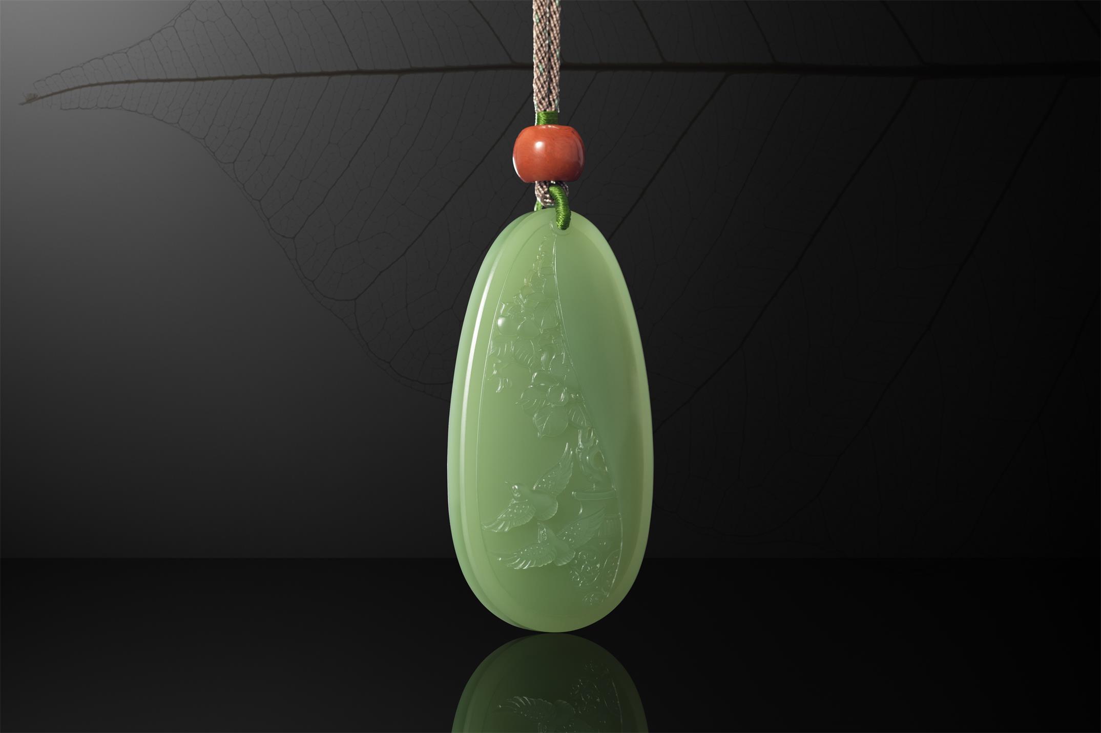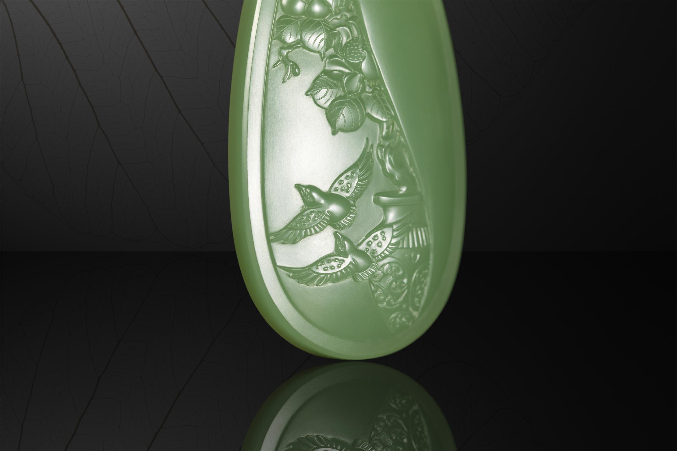 《微风》,是析木玉挂件,从上海乘机,刚刚抵达千璞滙,带着欣欣向荣的茶花、呢喃的双燕和润泽的风物,以凝炼、含蓄、空灵和意境之美,俘获人心。