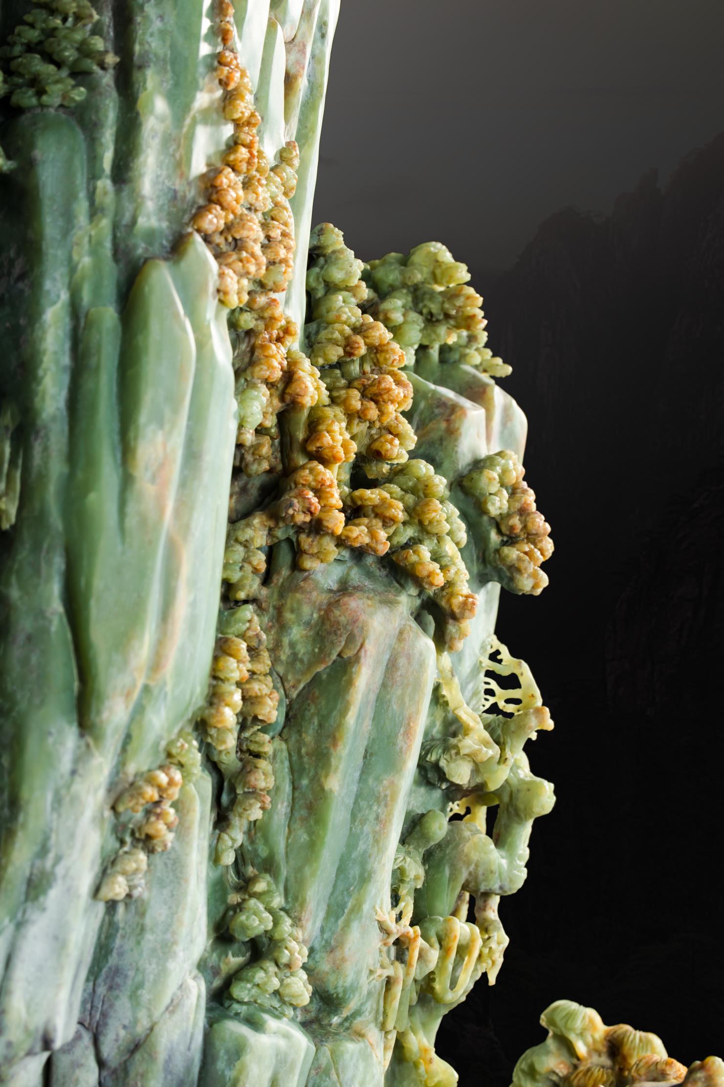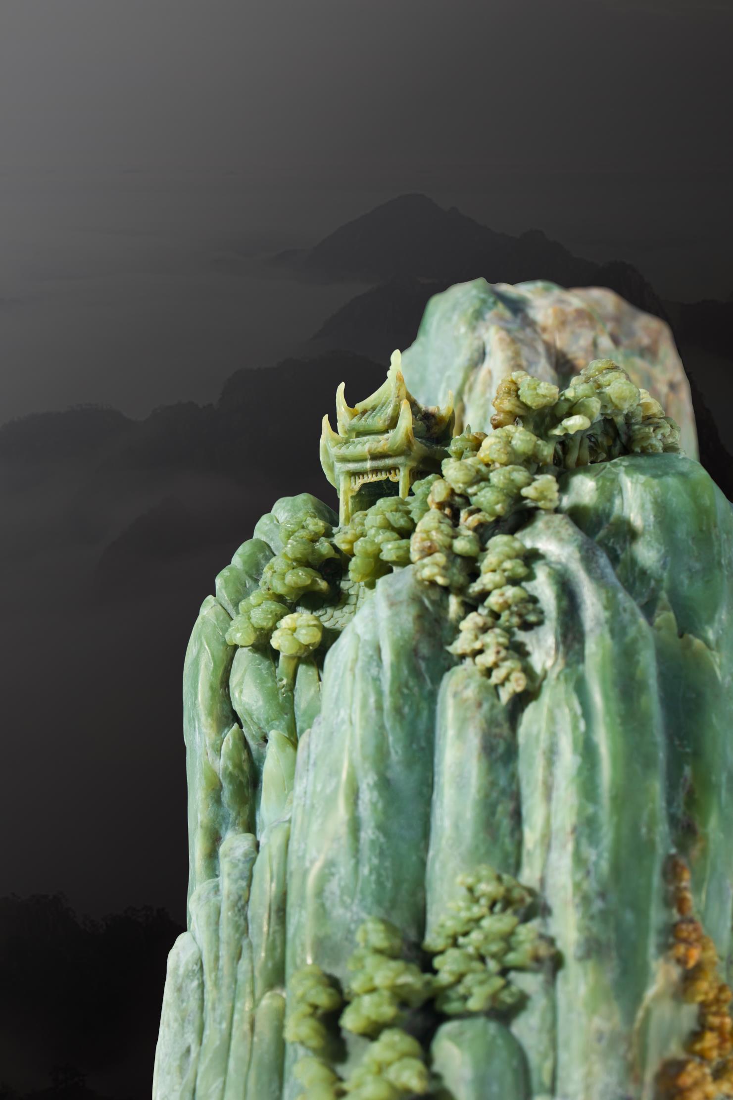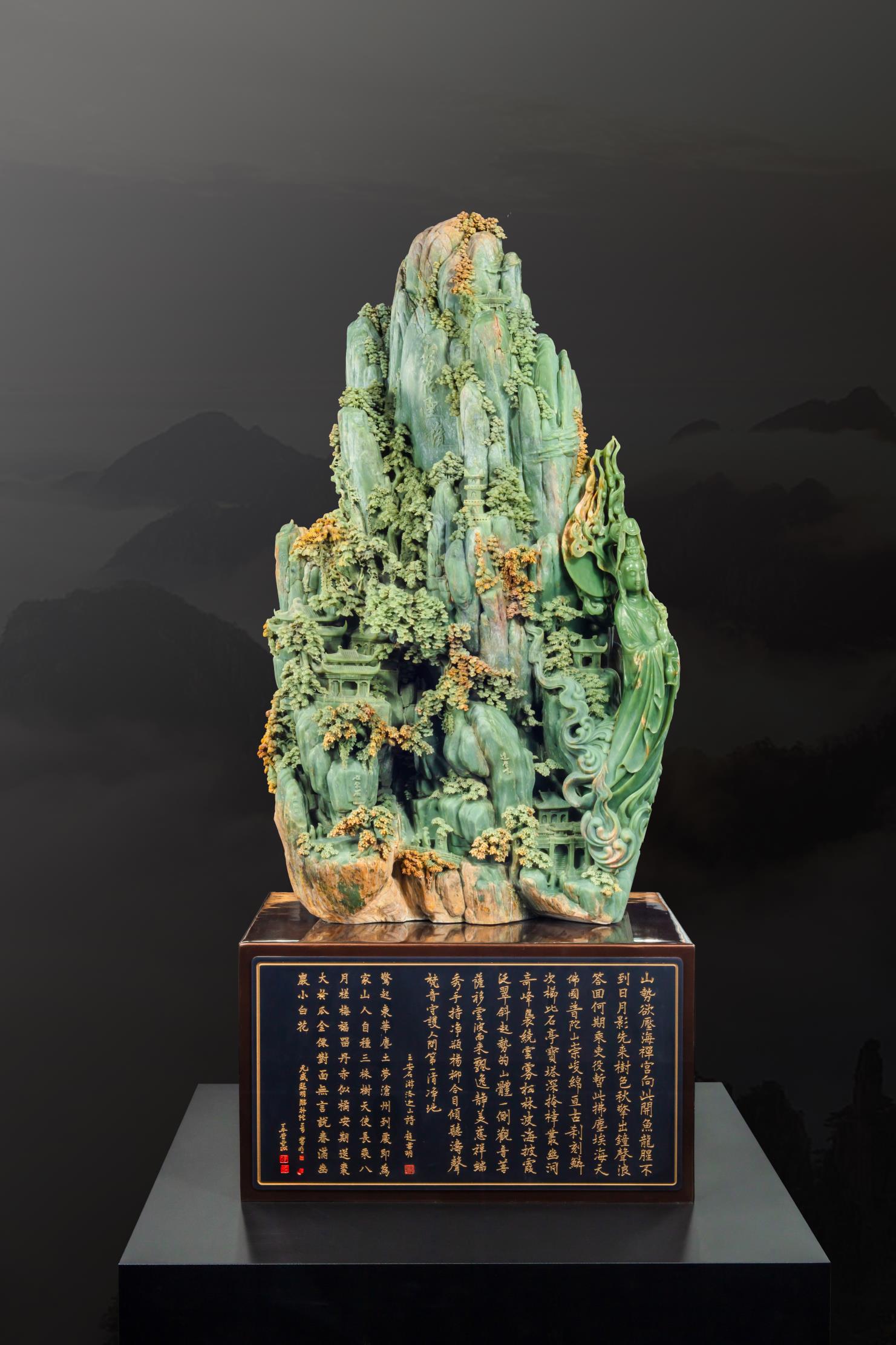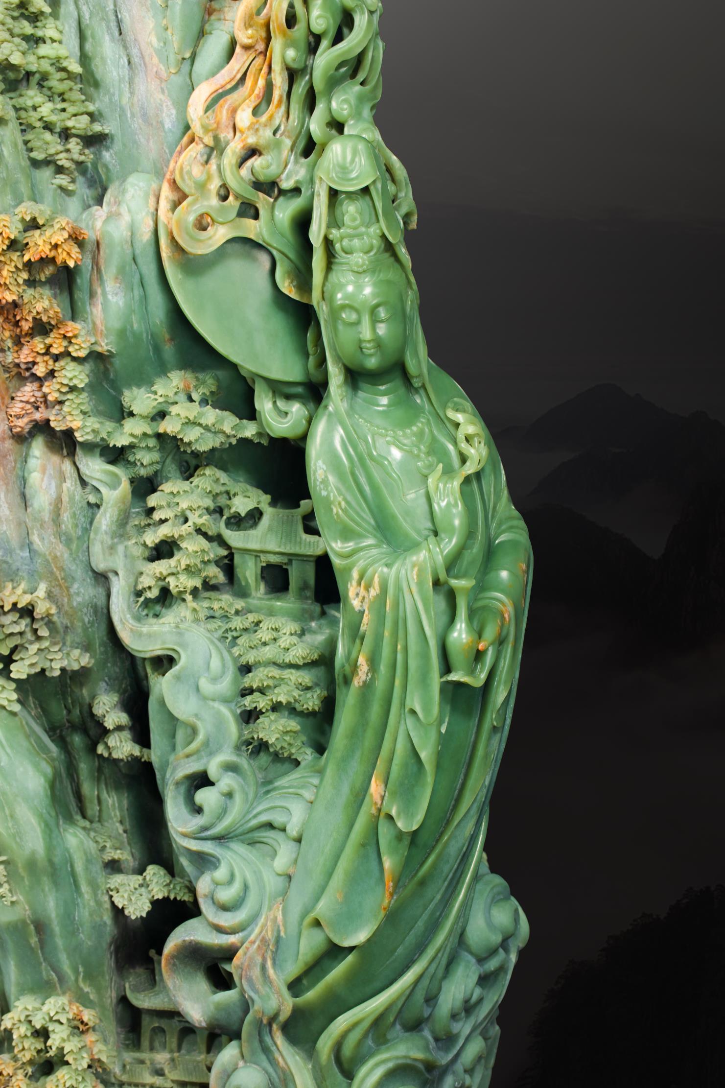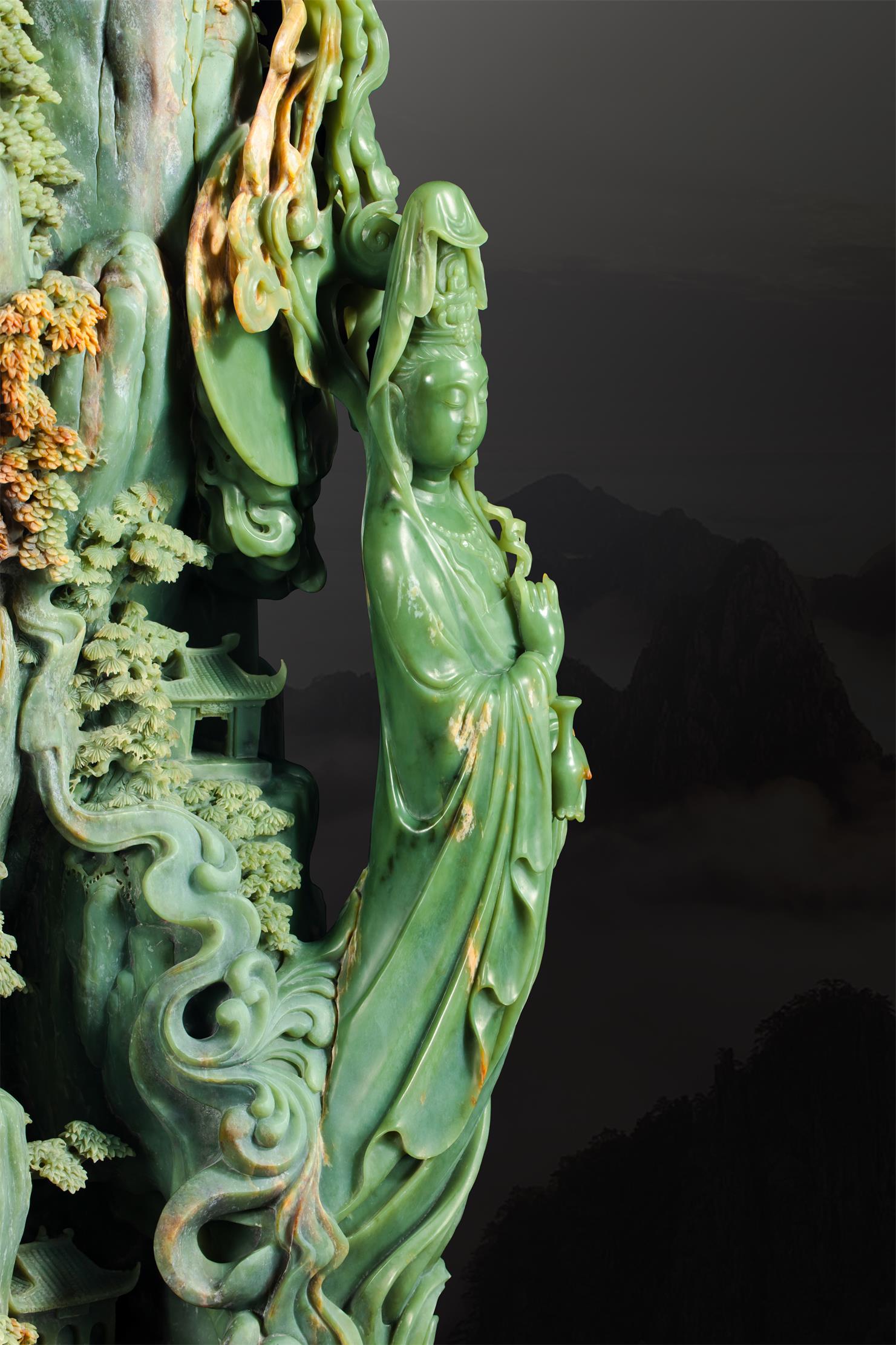 而这鬼斧天工之地,竟非天然,却是中国玉石雕刻大师、中国美术家协会会员张雪松的析木玉恢宏力作《普陀圣境》!