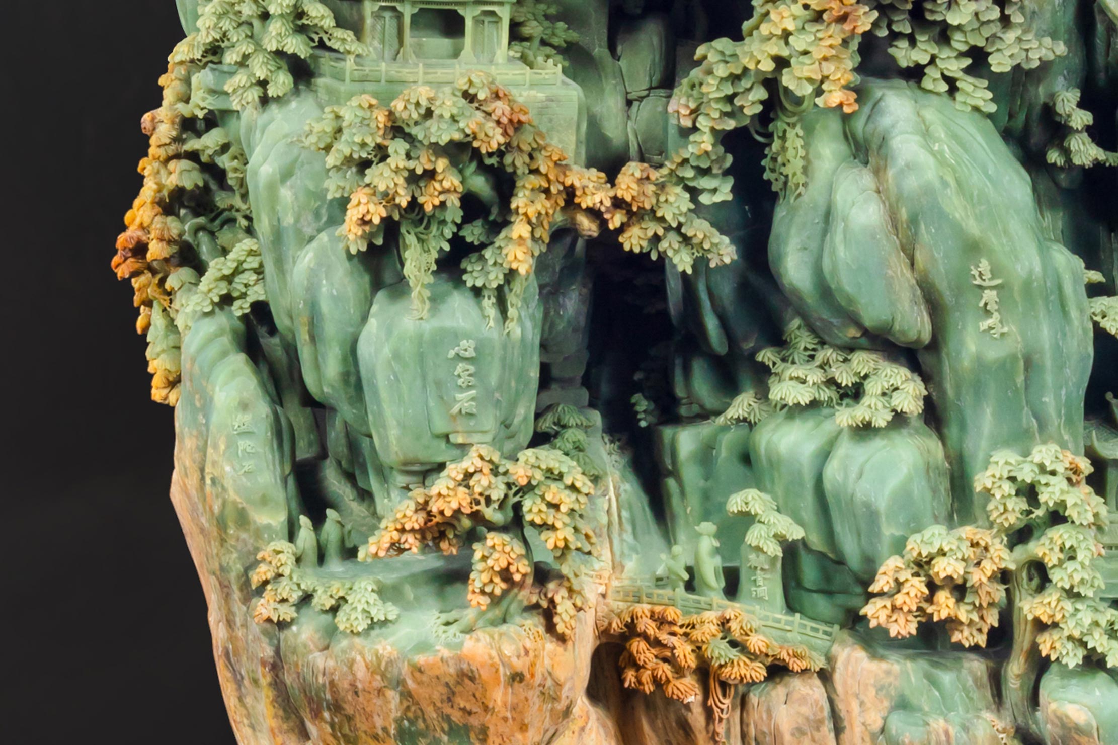 作品工艺繁复精湛,自然俏色用得恰到好处,令人叫绝。