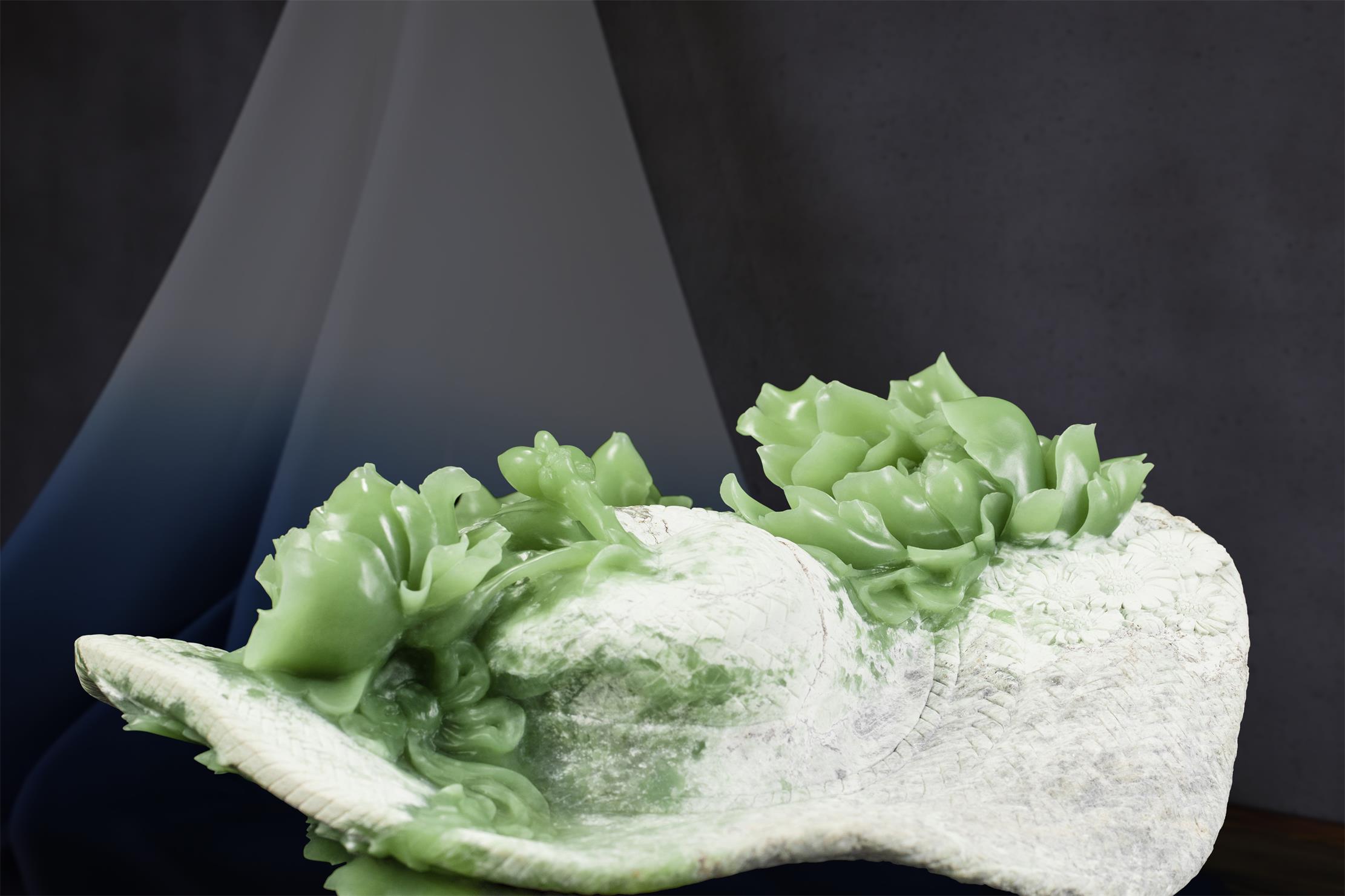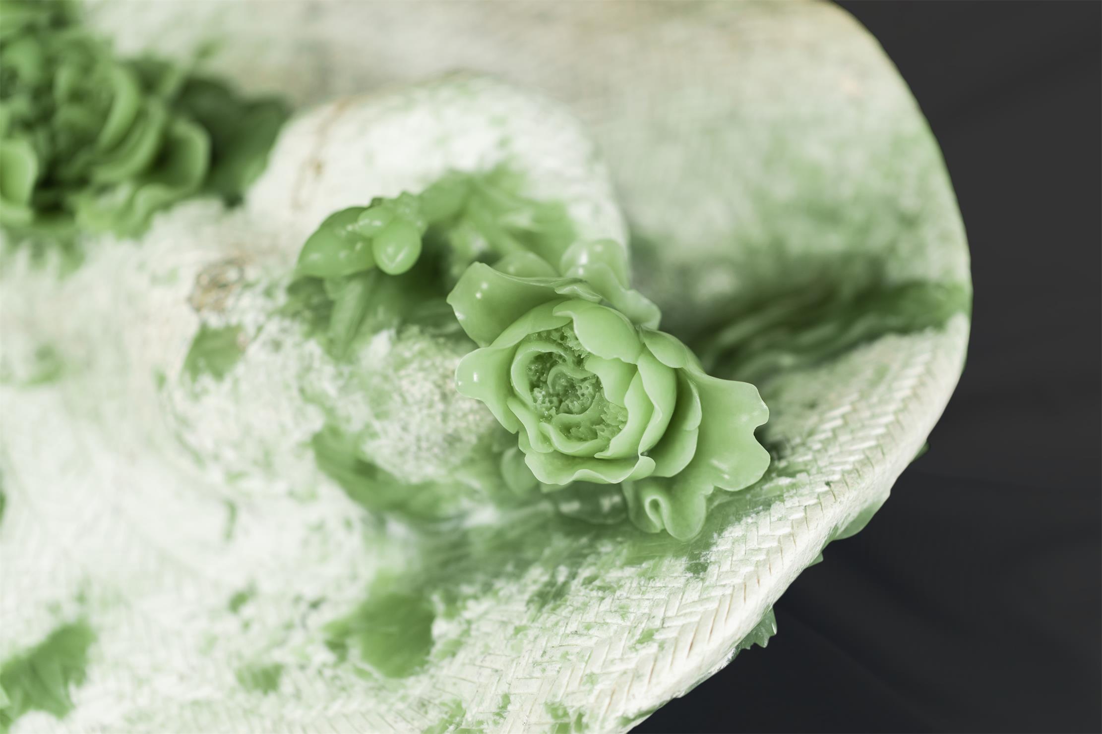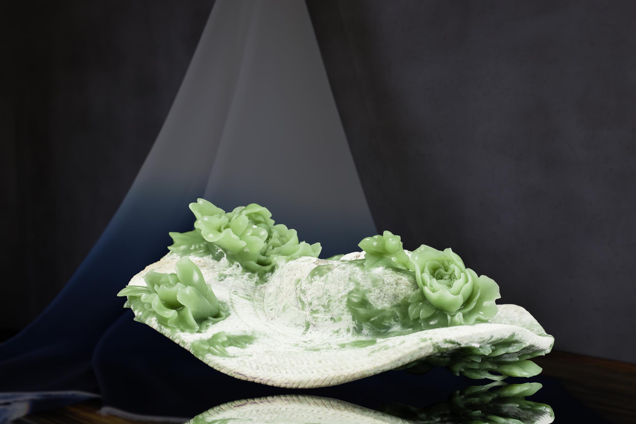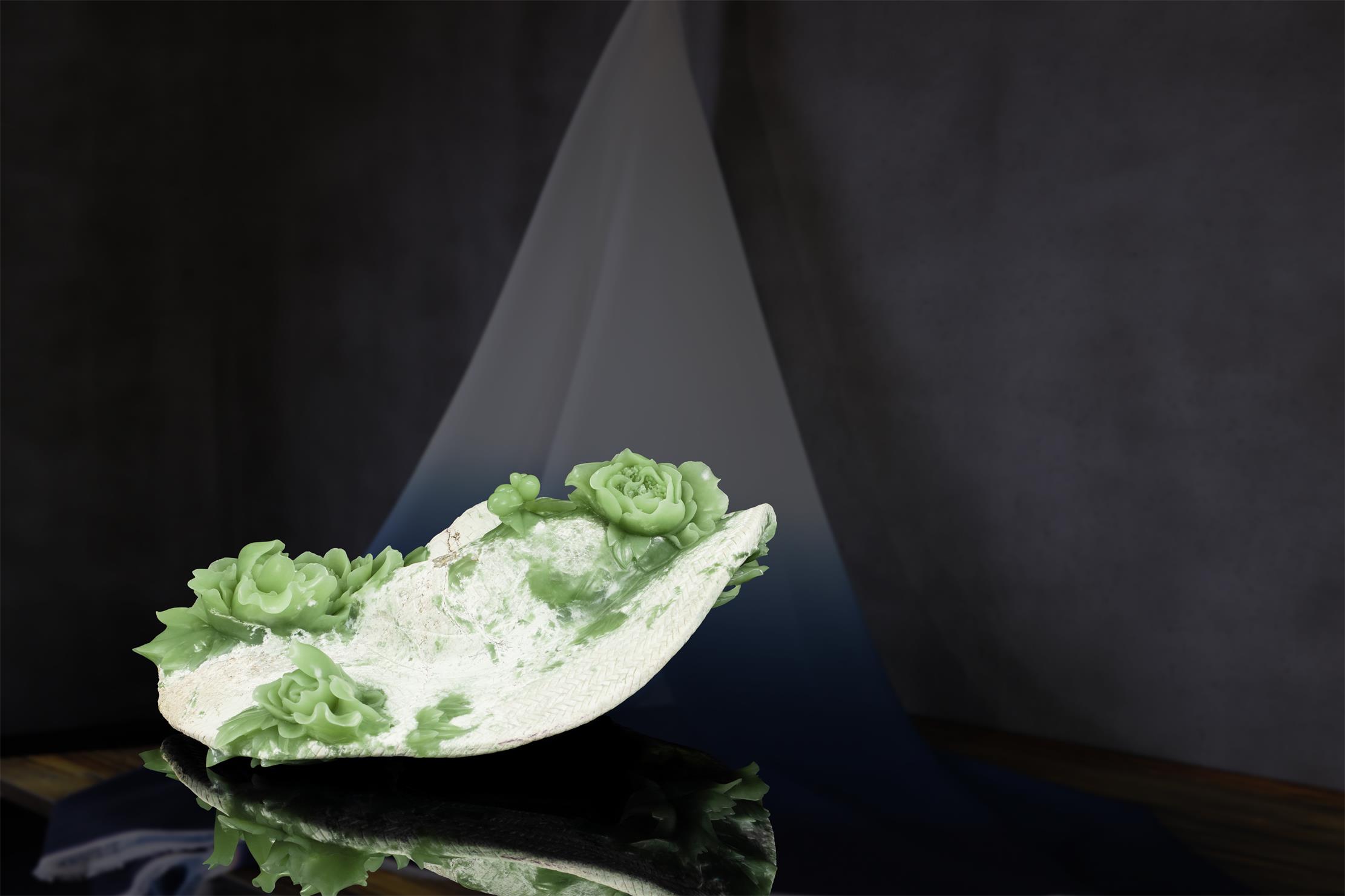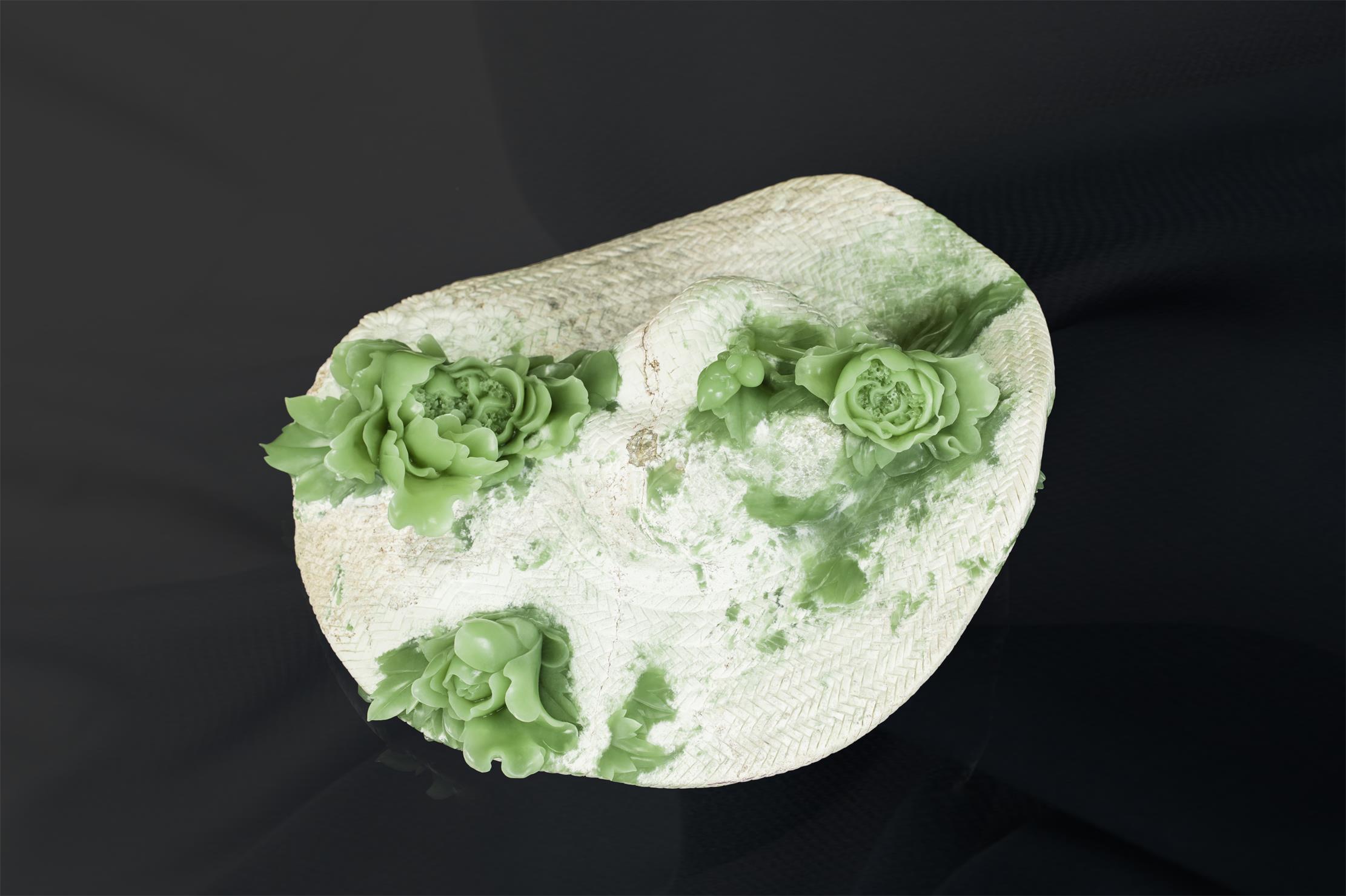 清丽、匀净、细腻的绿色玉肉,鲜活了牡丹的姿态。