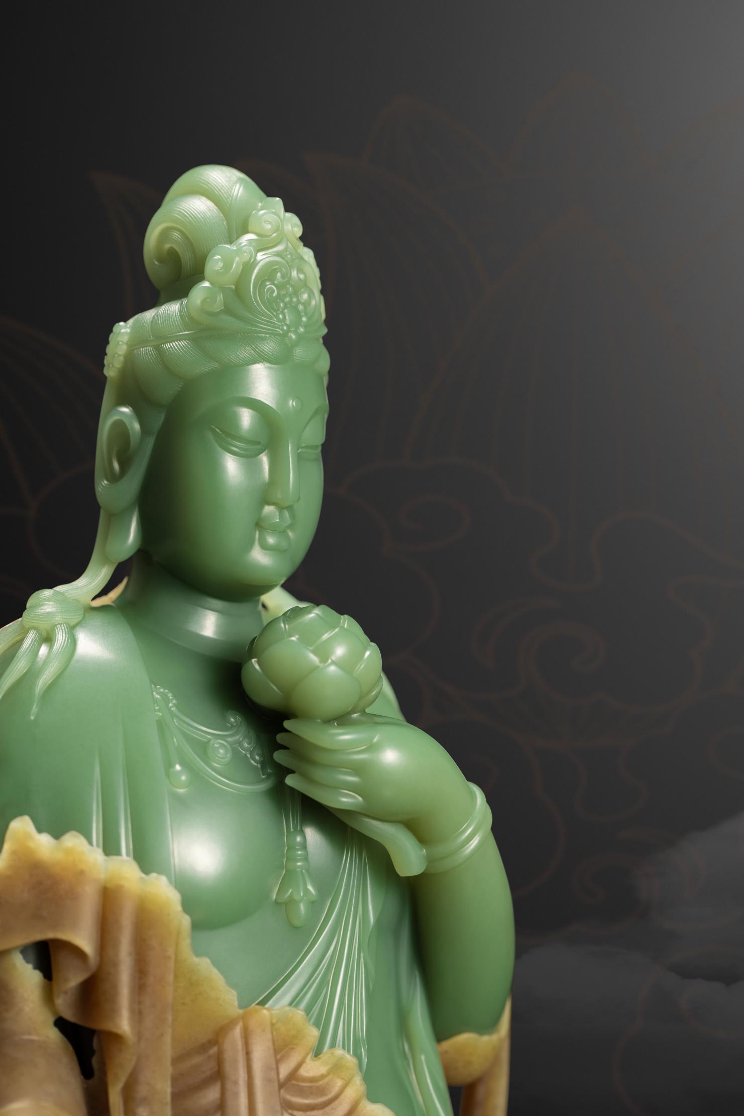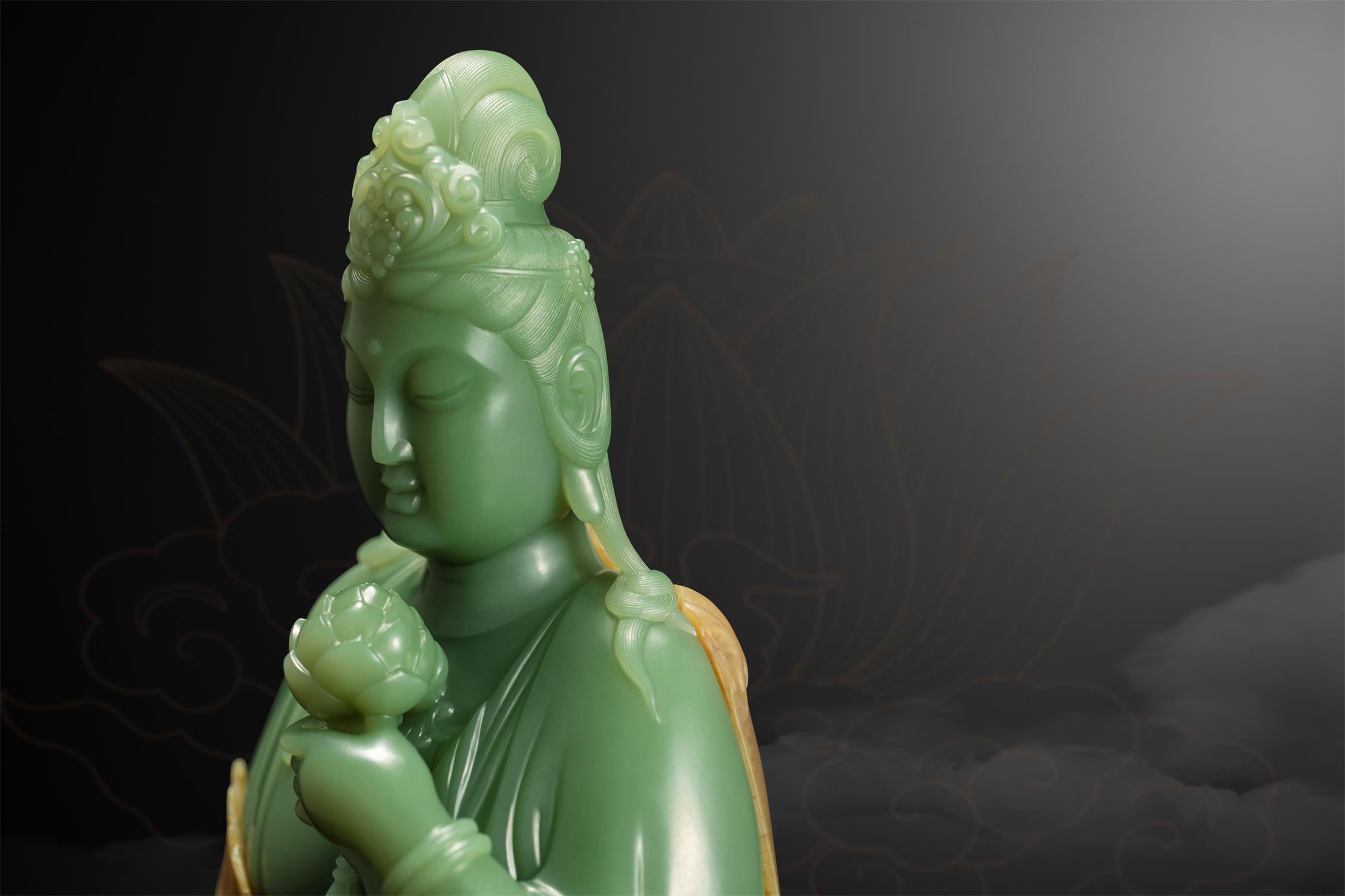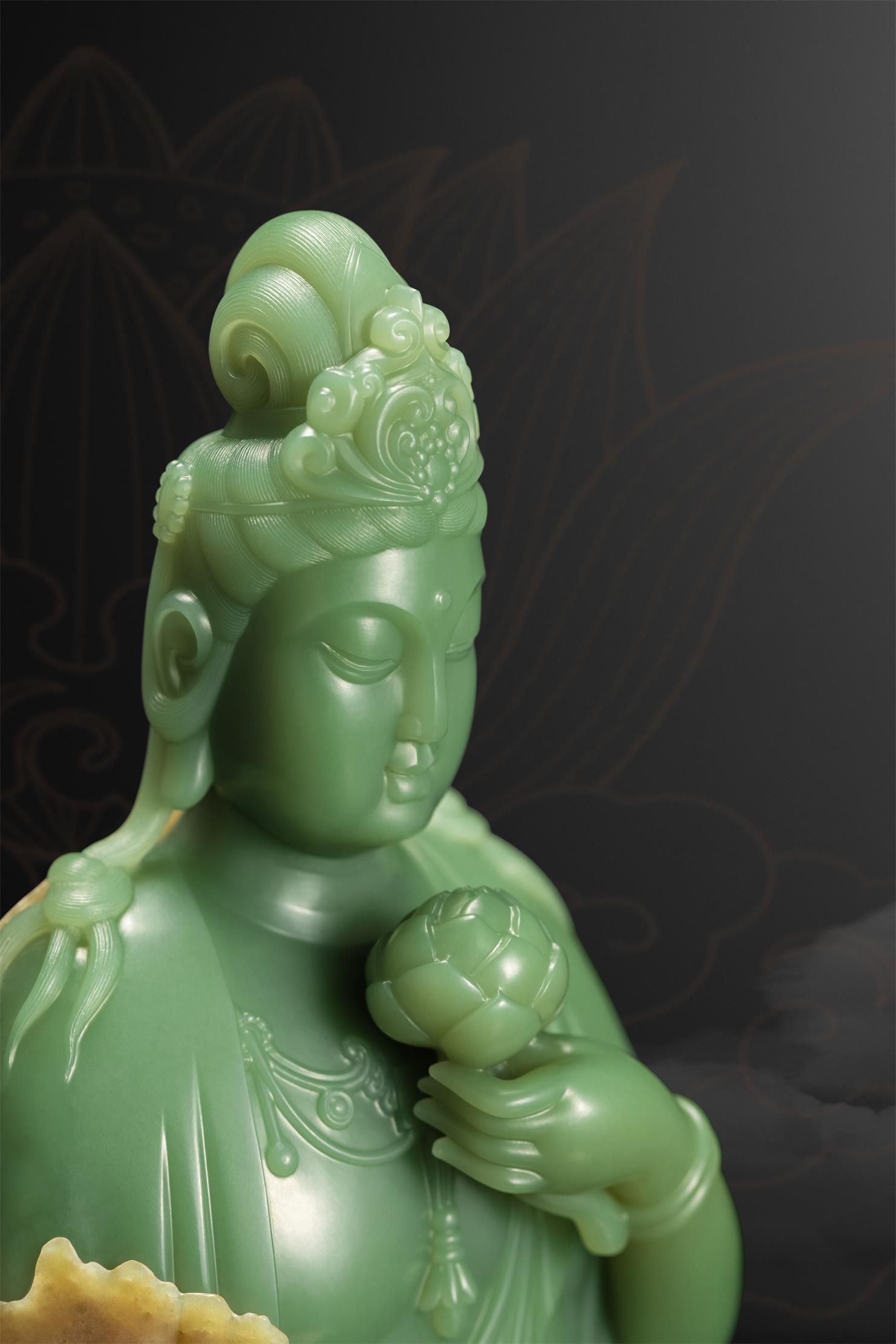 玉雕师雕刻佛像,多偏爱选择细腻净润的玉,并以圆润的雕刻语言来表达不染纤尘的圆满、祥和、安宁与尊贵。