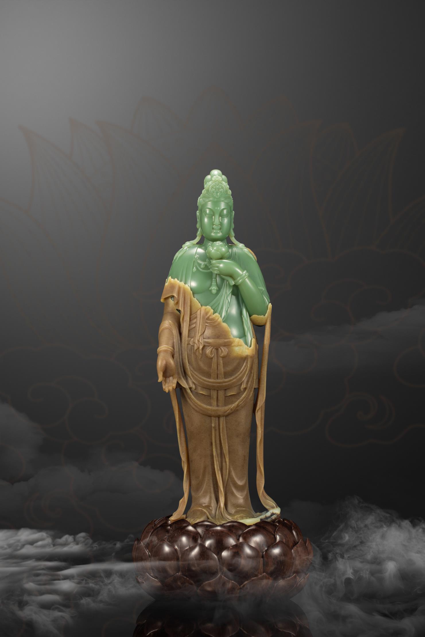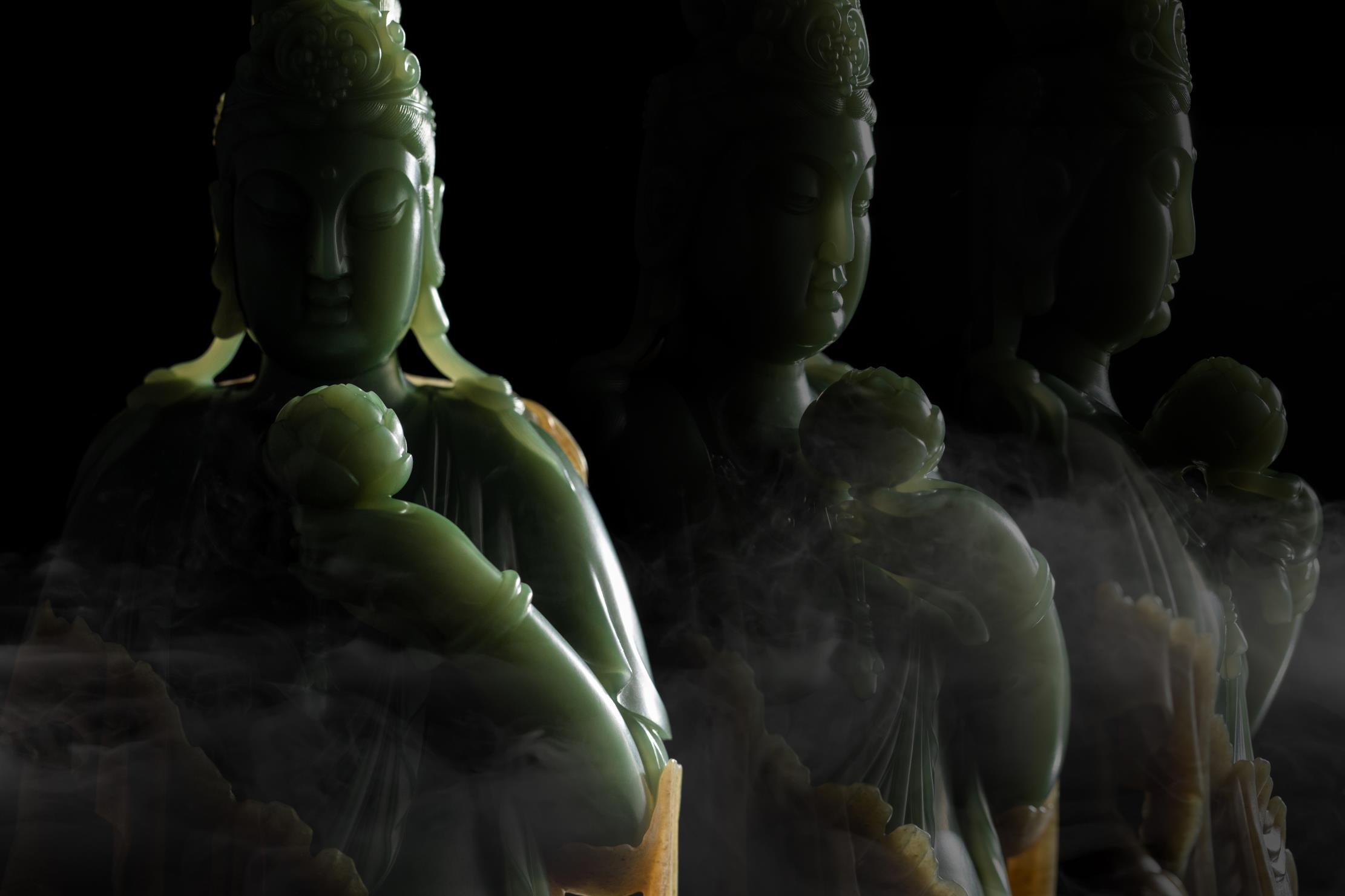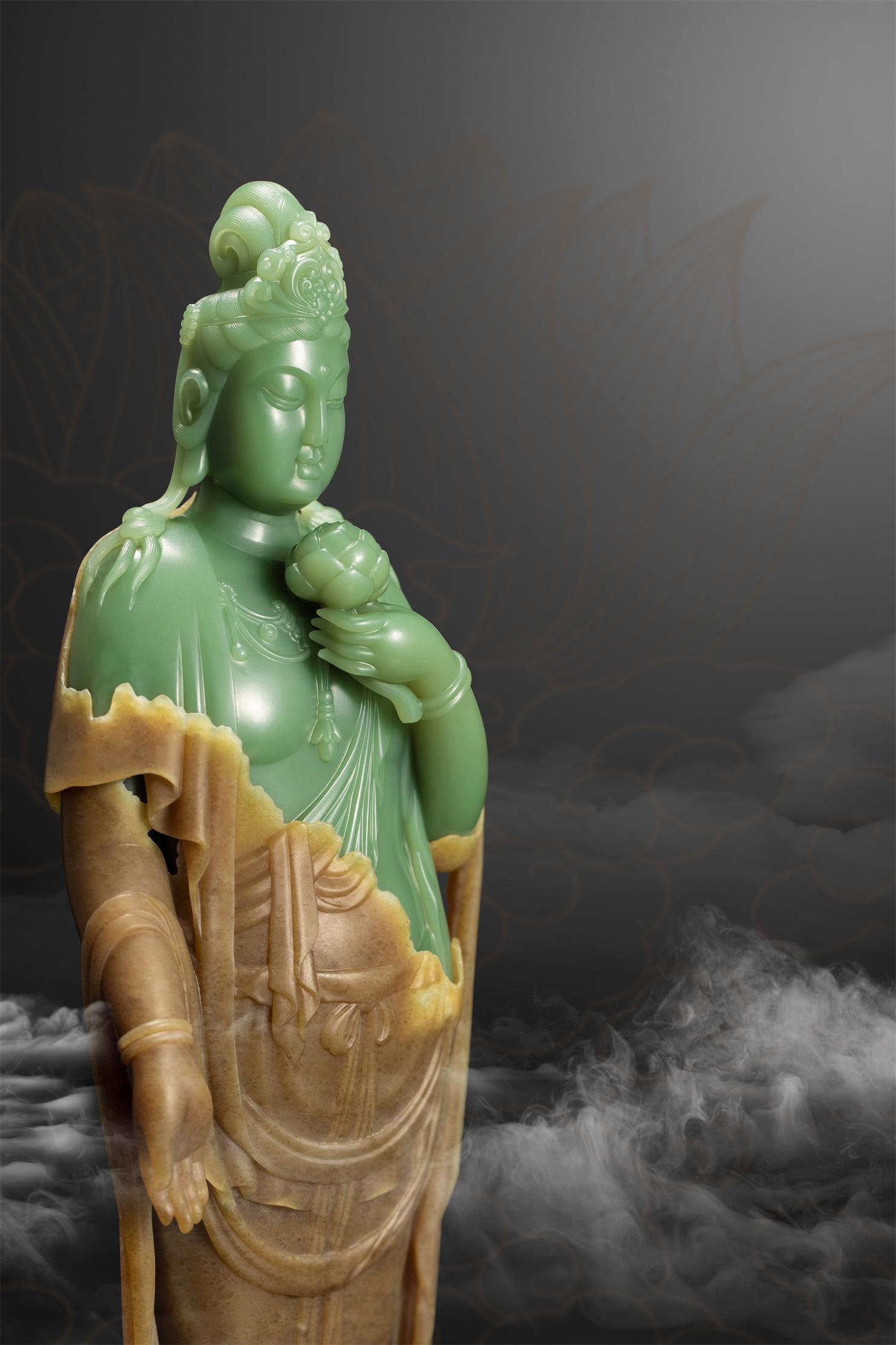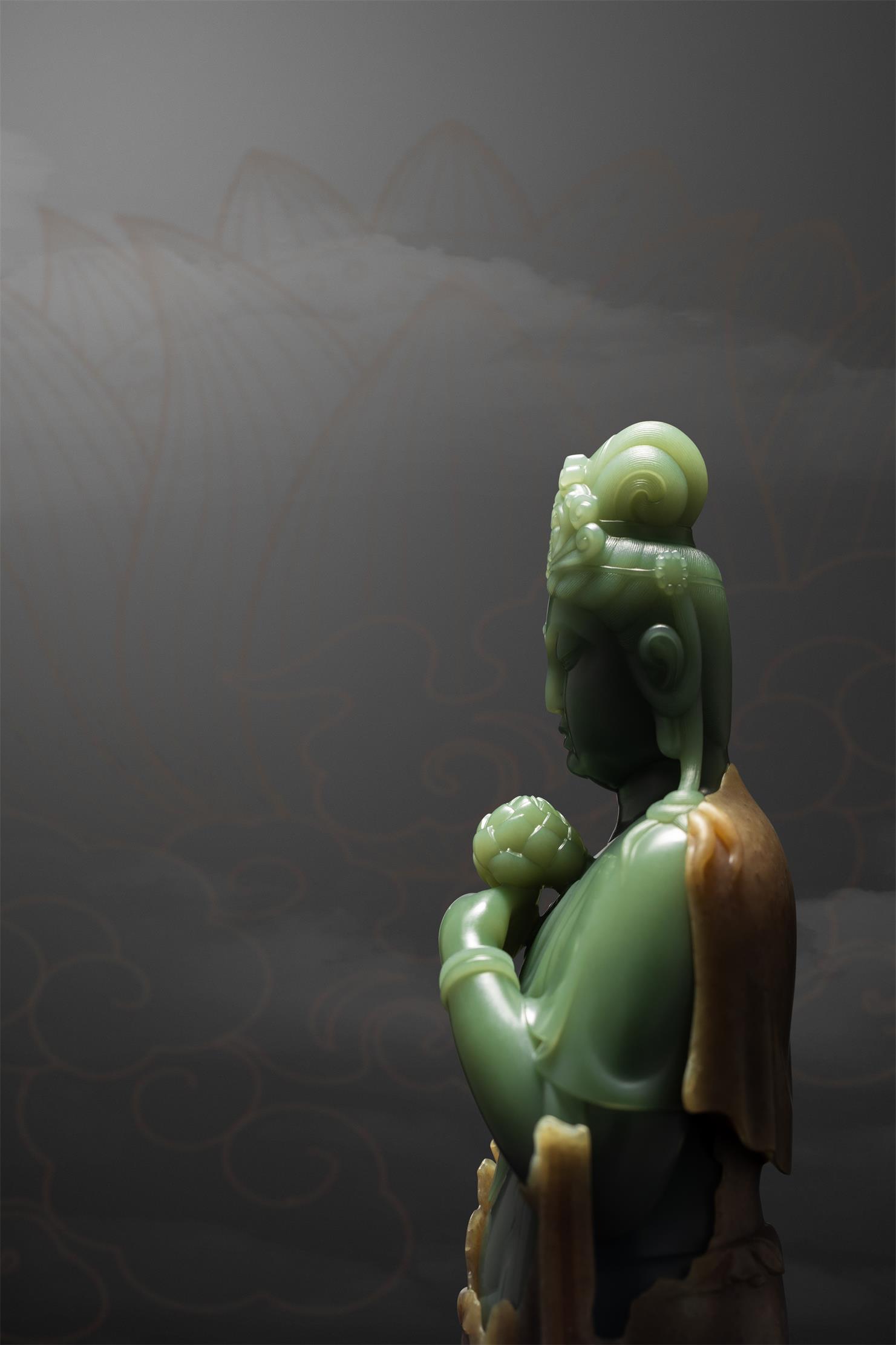玉雕师雕刻佛像,多偏爱选择细腻净润的玉,并以圆润的雕刻语言来表达不染纤尘的圆满、祥和、安宁与尊贵。