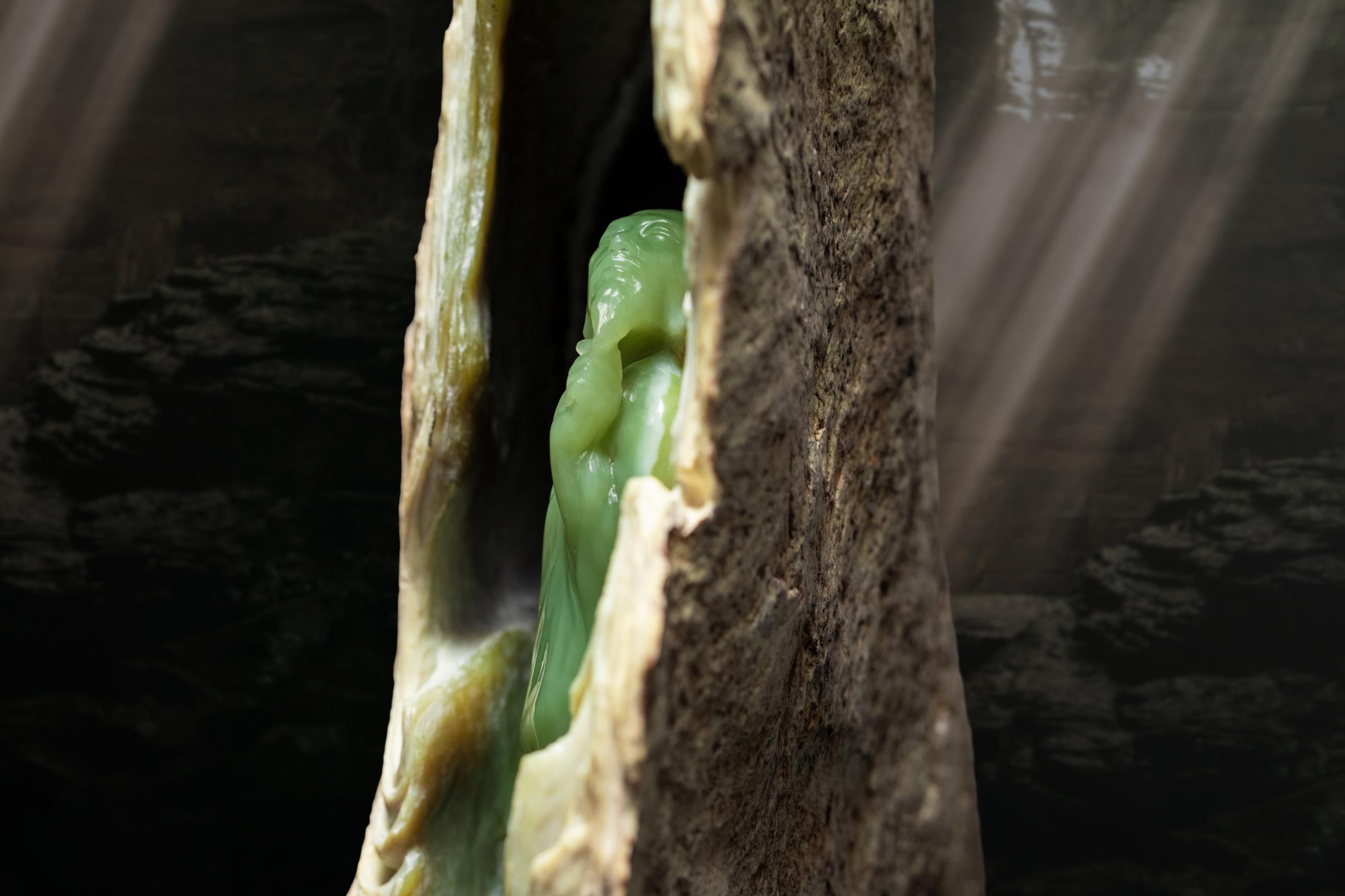 作品积厚的鲜亮皮色与玉肉之绿形成鲜明对照,让观者在层次分明中,通达幽隐、寂静与恬淡的境界。