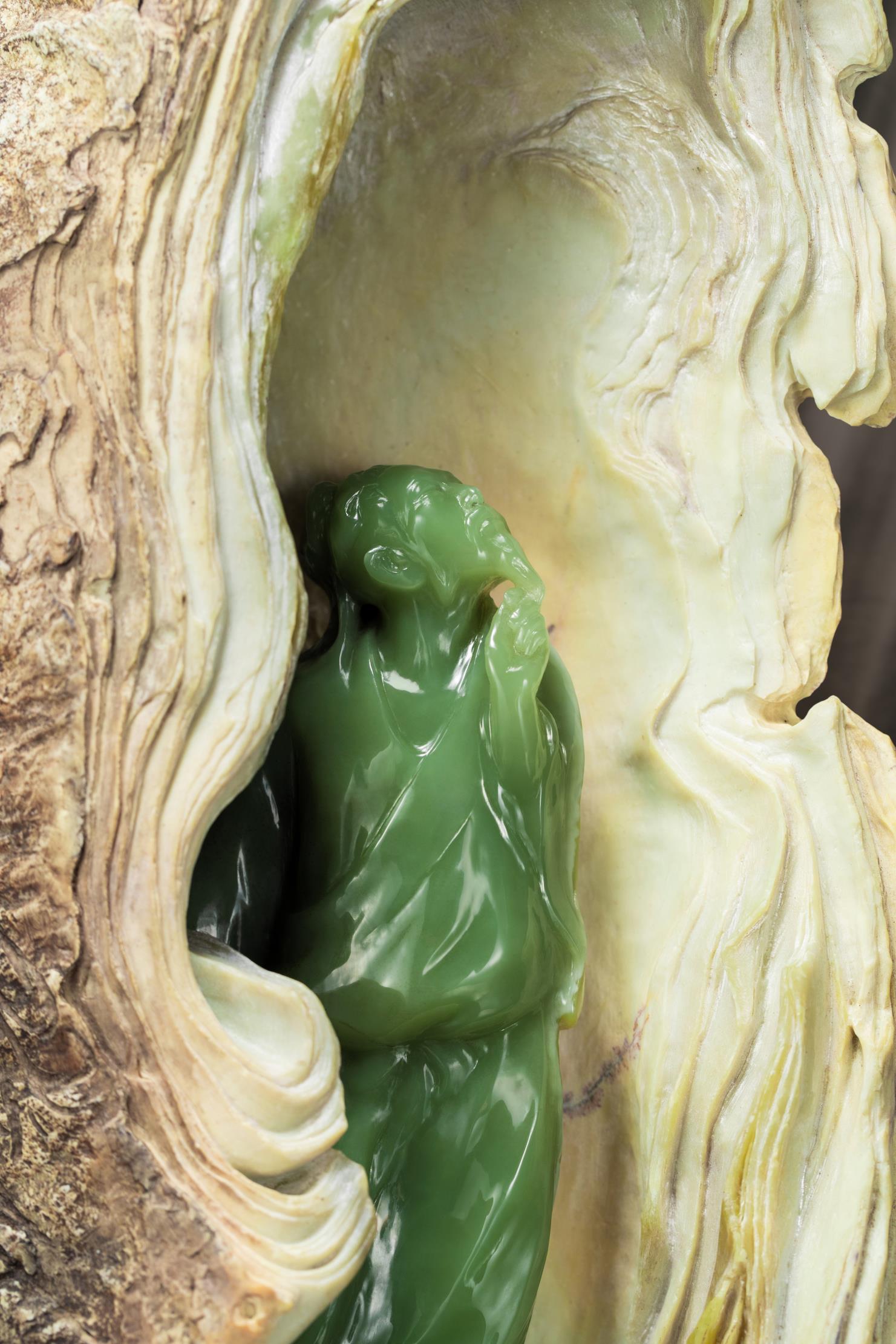 沧桑的玉皮沉淀下两个人衣襟的飘逸和风度的洒脱,令人由衷感叹大自然的鬼斧神工与人工化境。