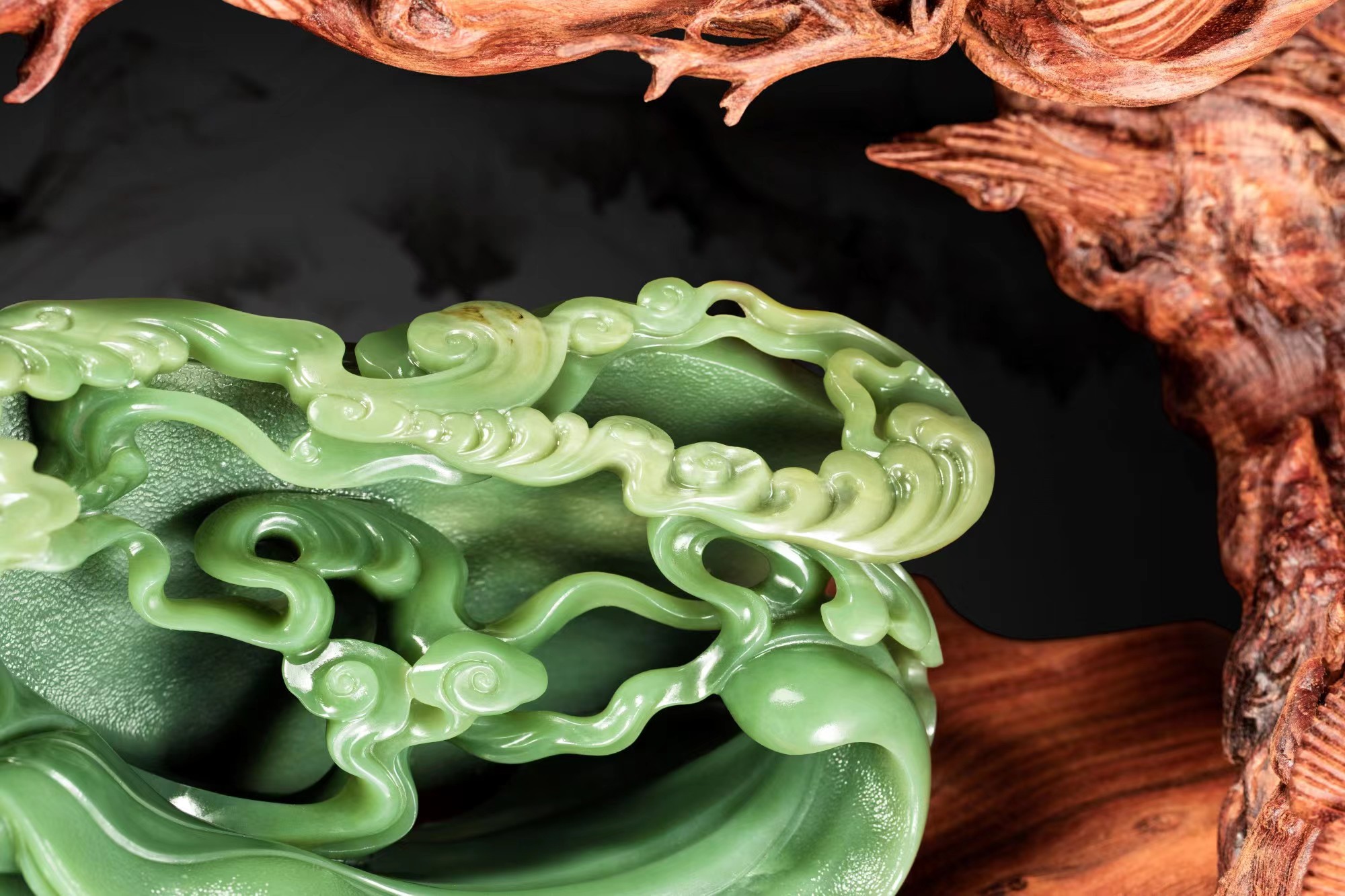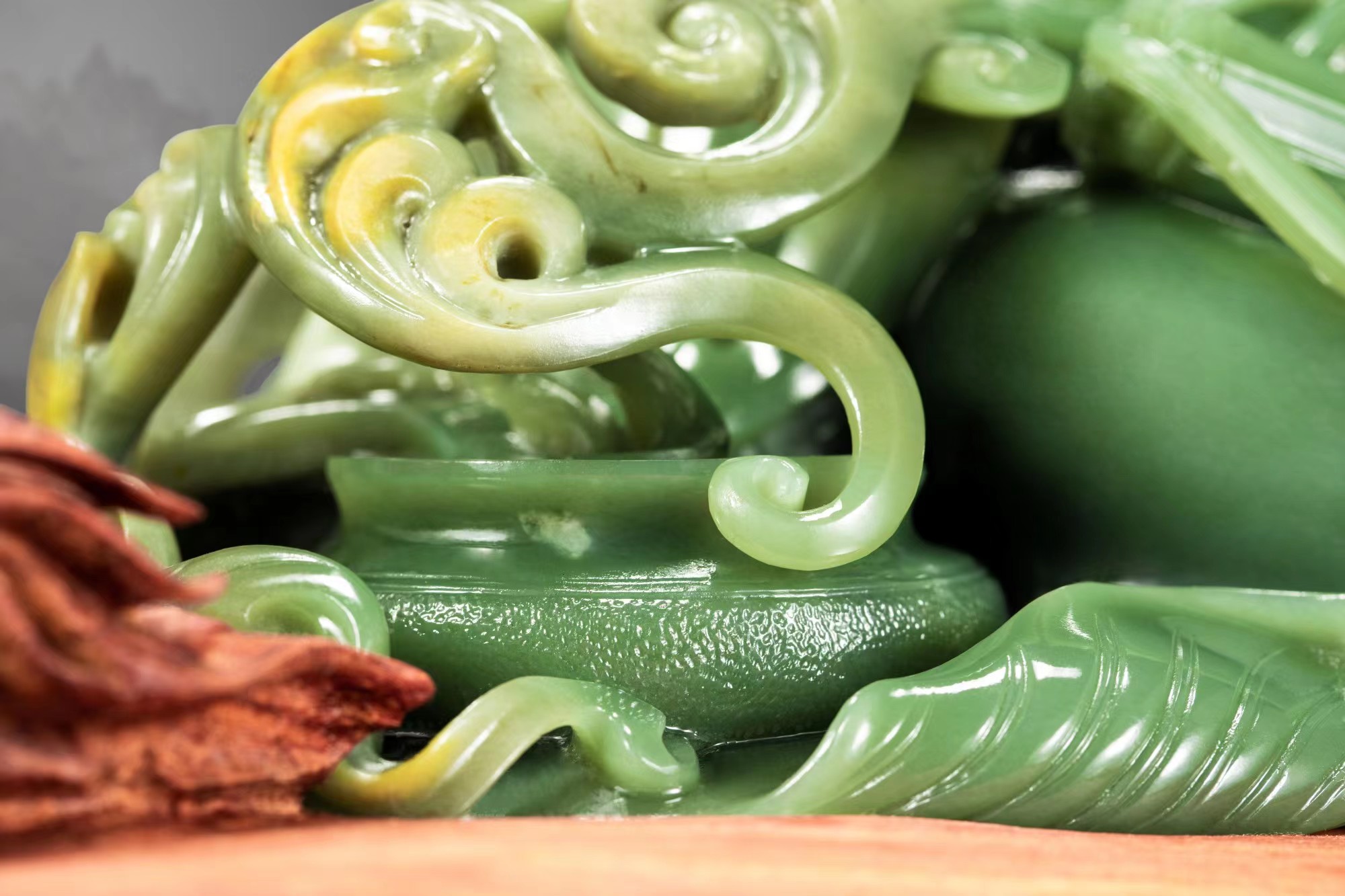 张雪松深谙析木玉不同皮色所呈现效果的区别,知道如何通过创意与巧工来驾驭它不同的玉色玉质,既能展露繁复多变的线条美,又能营造形神兼备、别开生面的艺术效果。