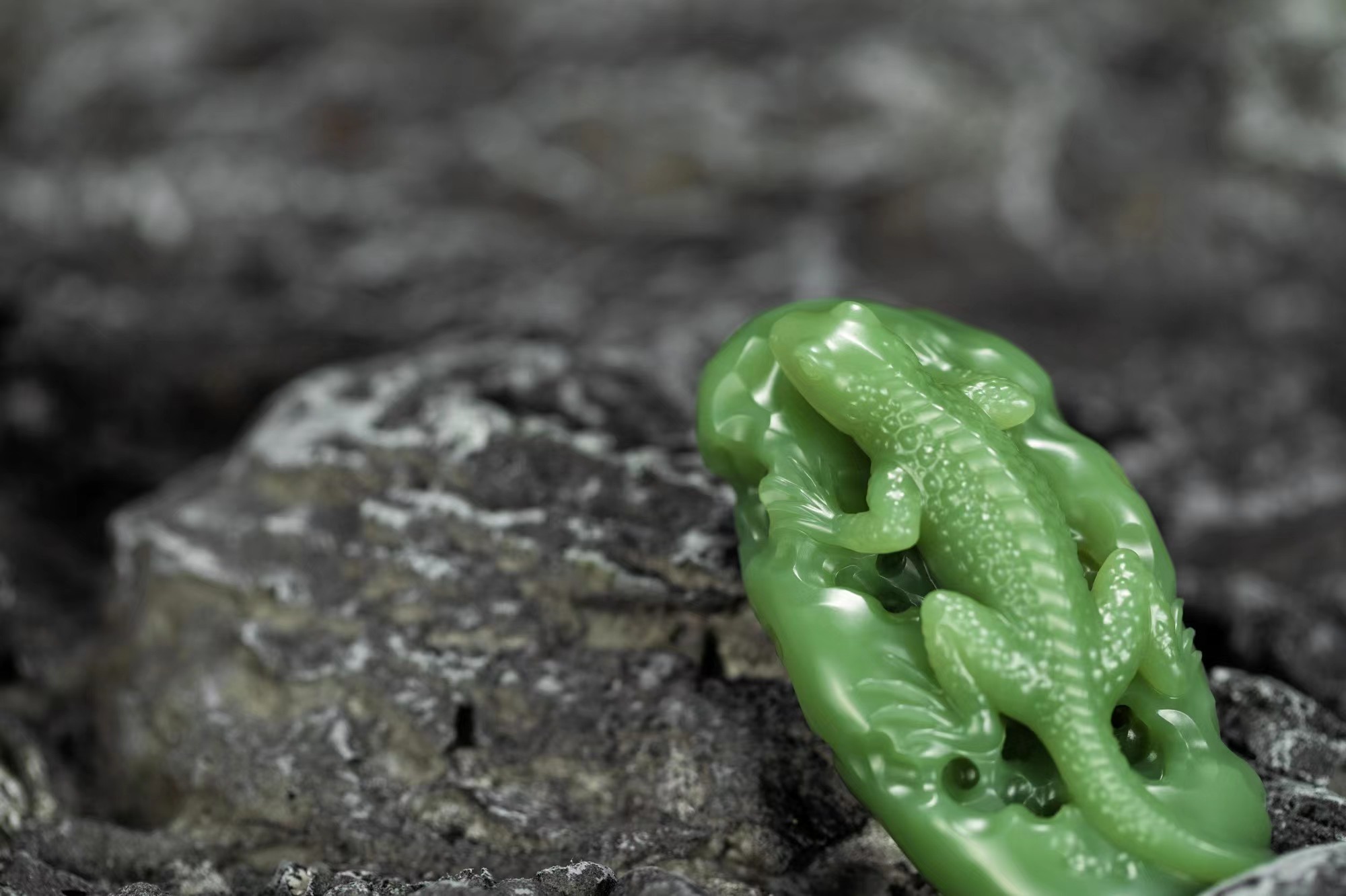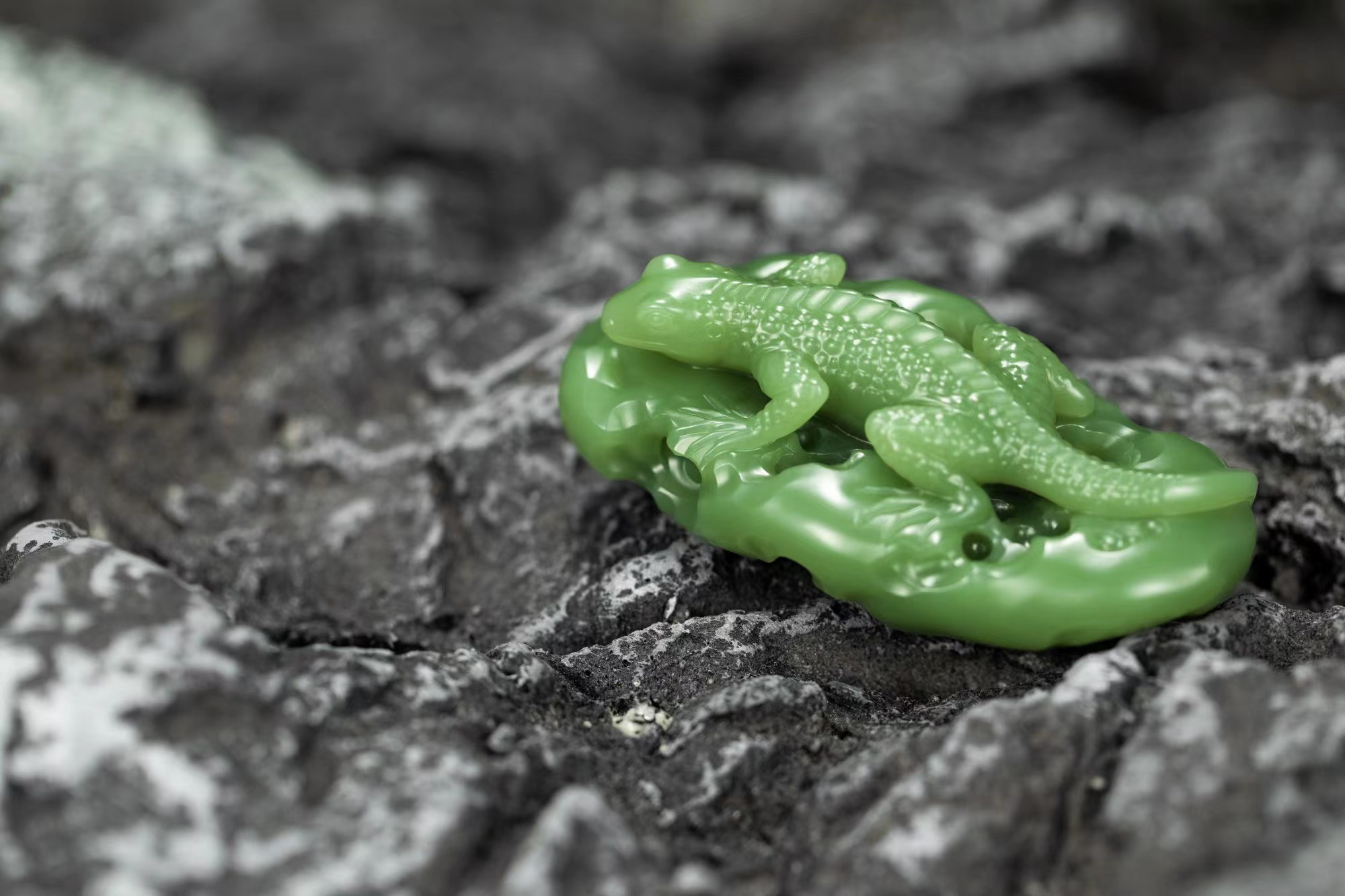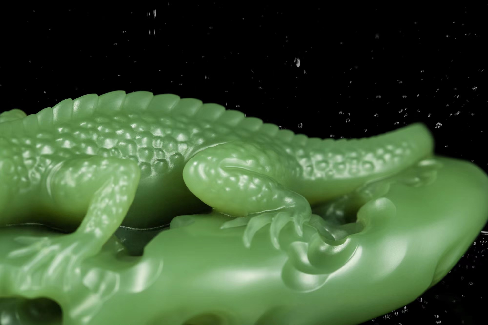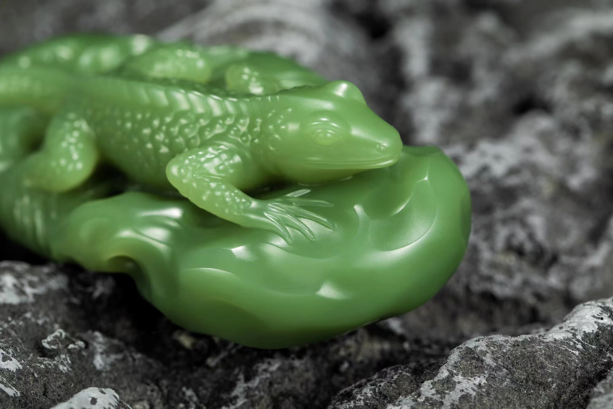 玉雕题材里,有一个象征智慧、会断尾逃生、沉着应变的小动物蜥蜴,总是以活力四射和千姿百态愉悦我们的观感,启迪并激发我们的心智与思悟。