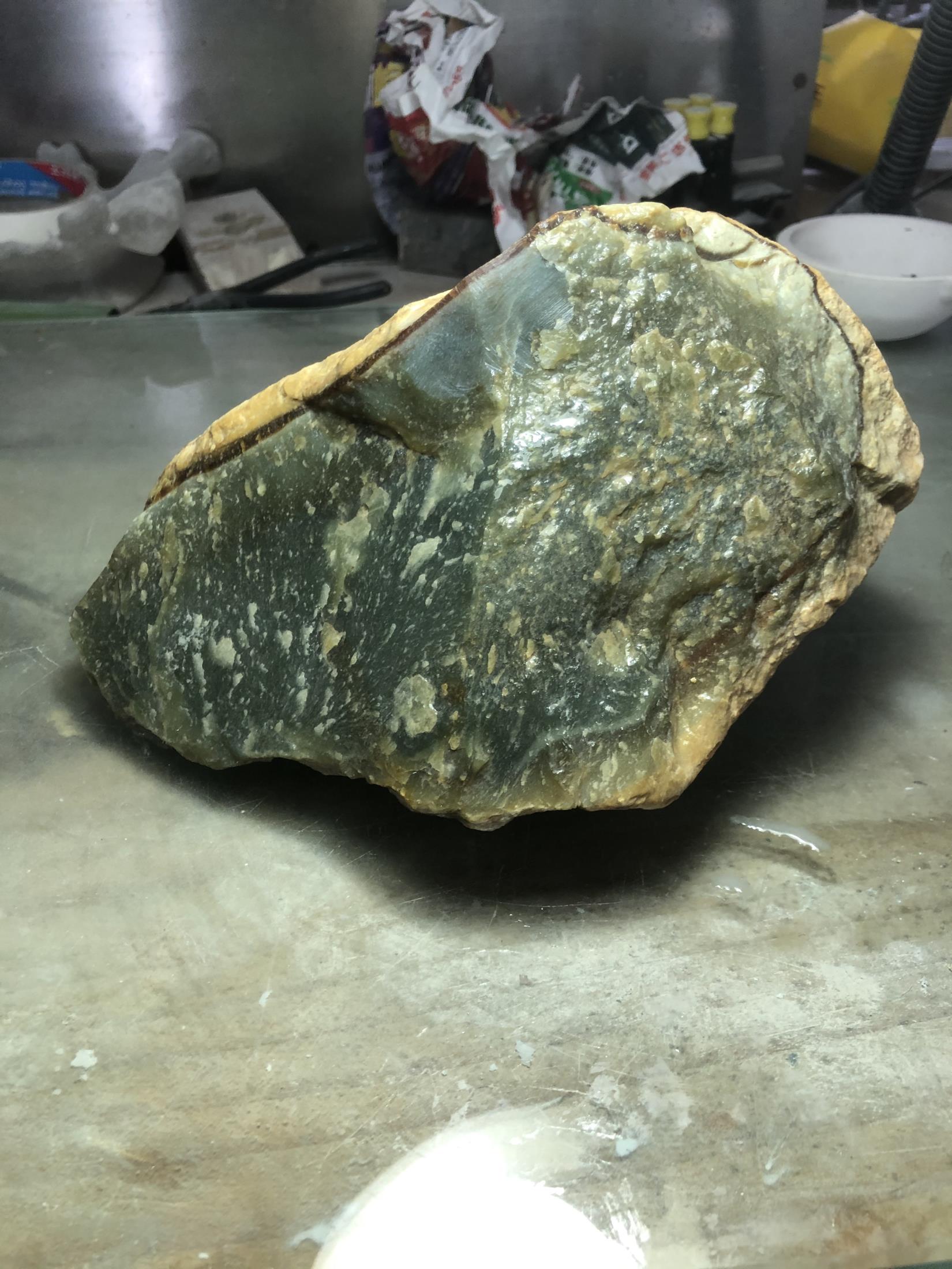 这奇幻的析木玉,有绿润心脾的一面,也有红到快发紫、庄雅稳重的一面。绿肉与红褐色皮间,还有第三种颜色,即明亮鲜润的黄。
