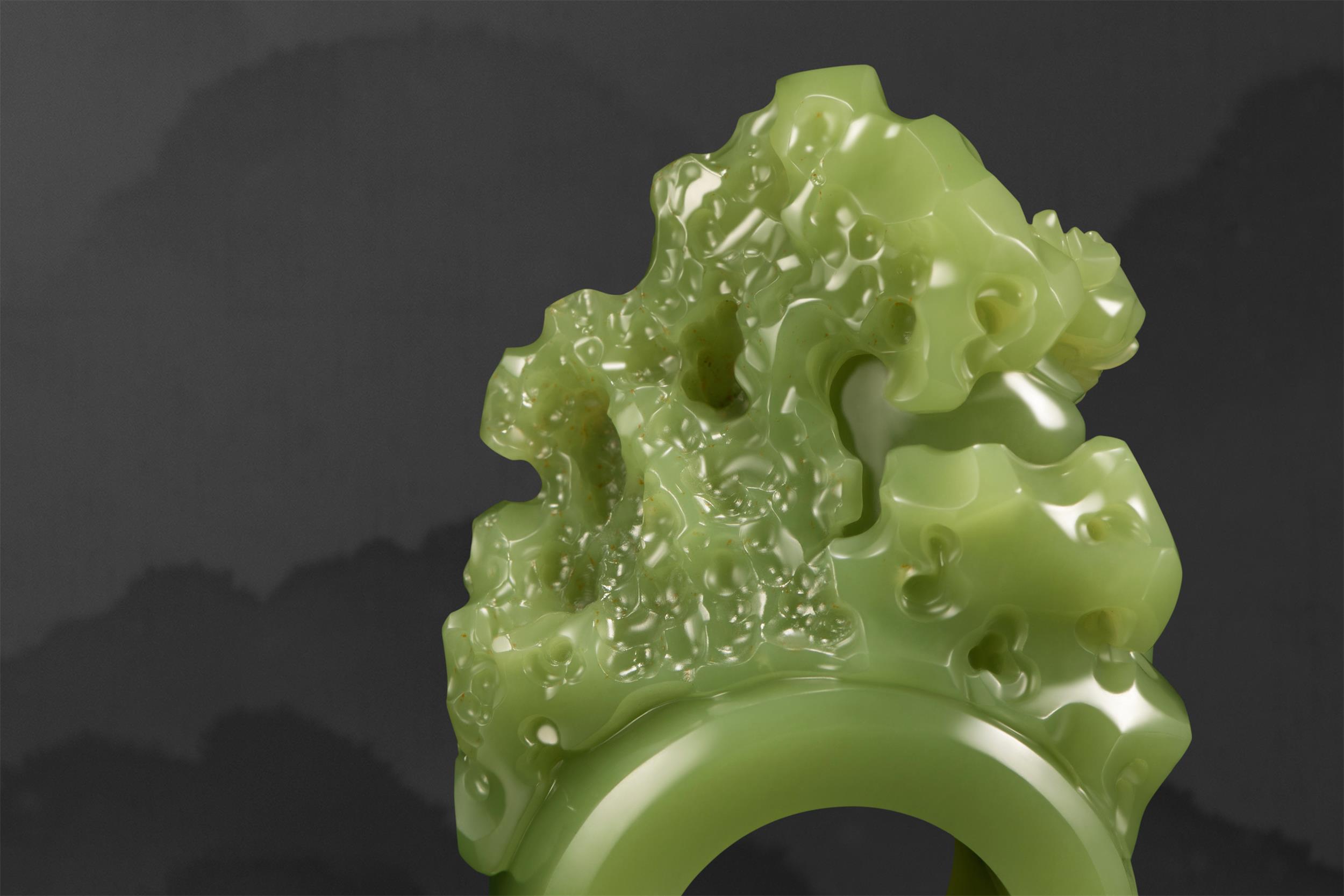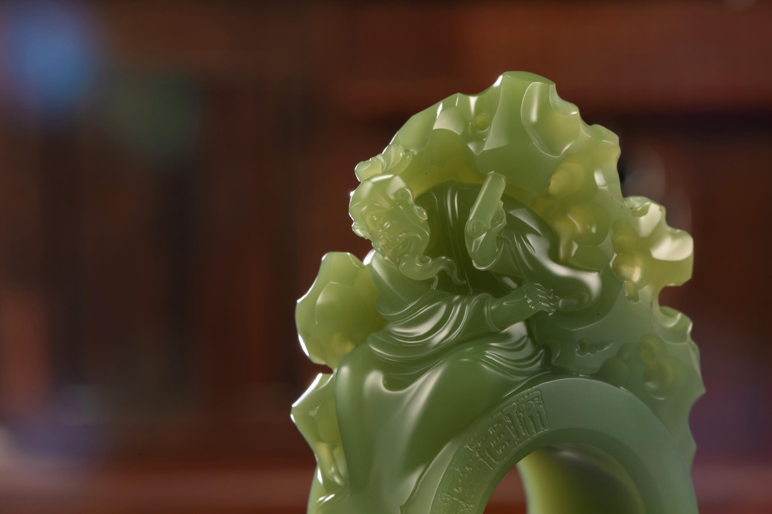 国家级非物质文化遗产项目玉雕(海派玉雕)代表性传承人、中国工艺美术大师、中国玉石雕刻大师崔磊,以立体圆雕作品《米芾拜石》,引领我们欣赏小小扳指里的文人情趣。