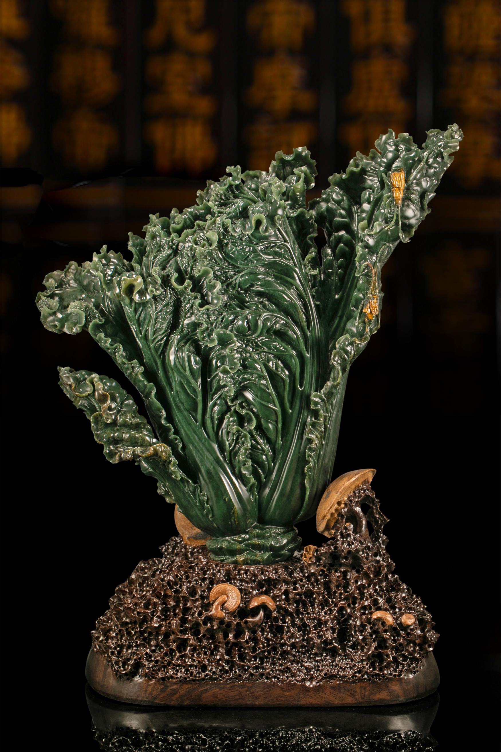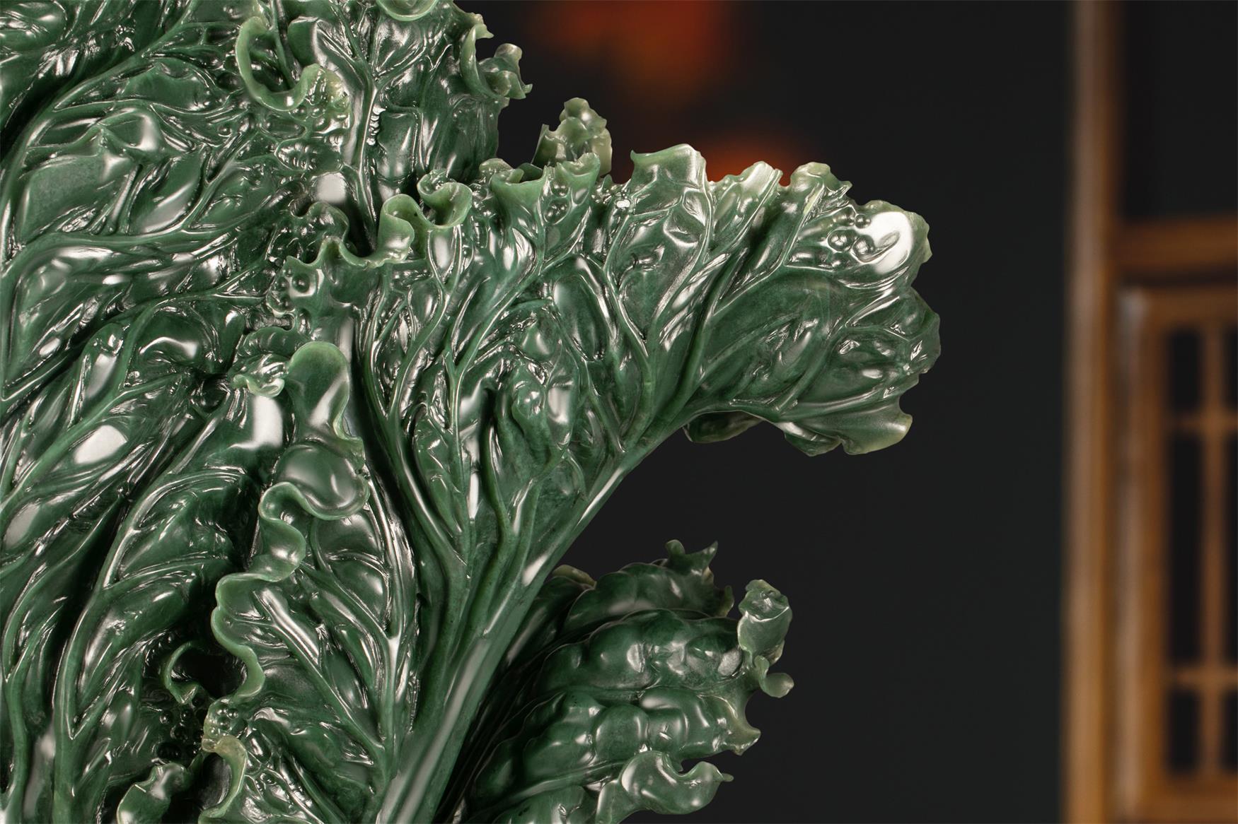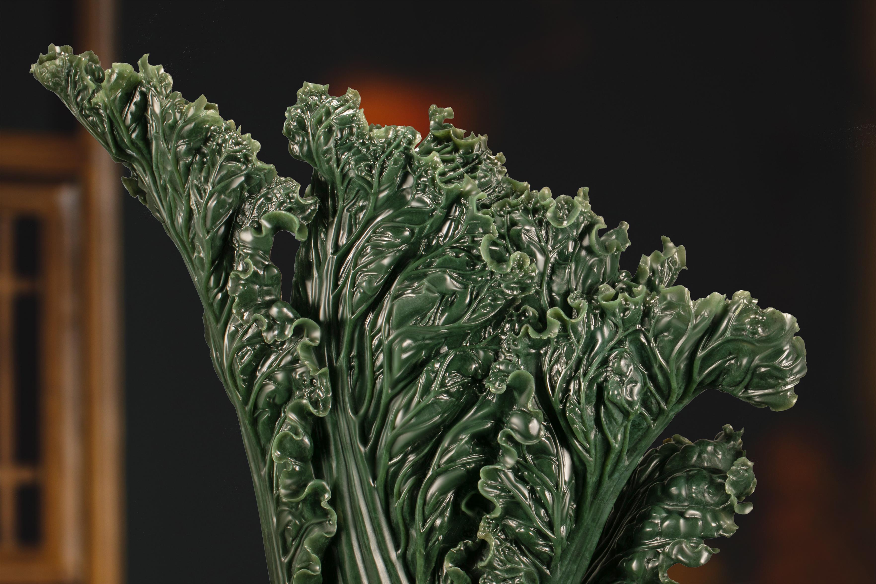 “东北白菜王”李红伟,定然不是种大白菜的,而是雕白菜的,他雕白菜可有一手,非常人能及。但是,今天的“白菜”很特殊,不是那种白绿相间的玉白菜,而是通体墨绿、熠熠生辉的玉白菜!