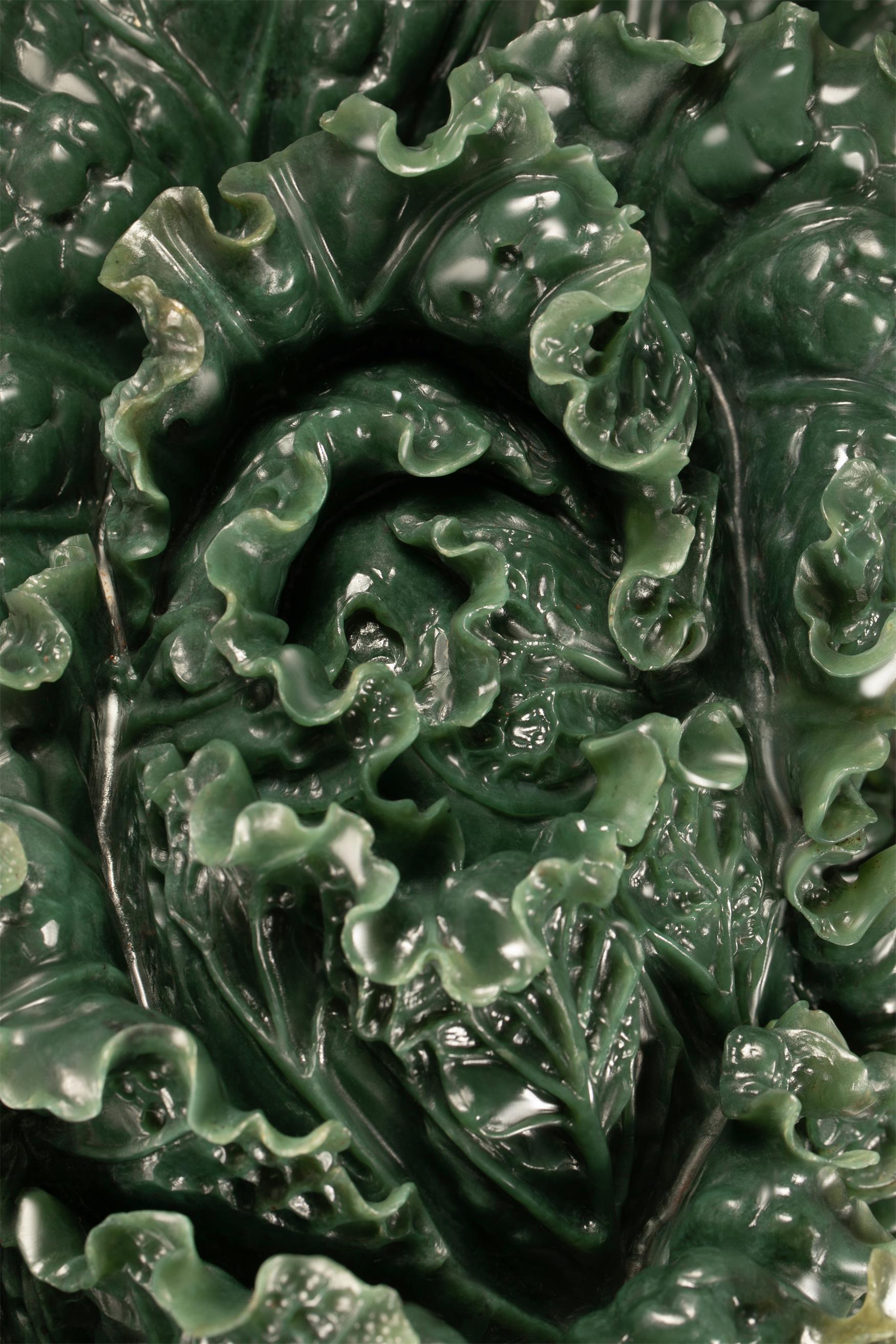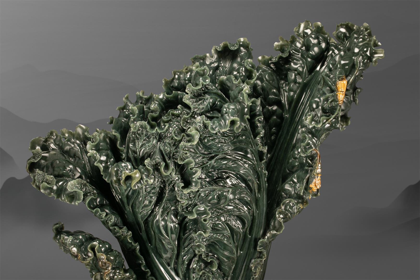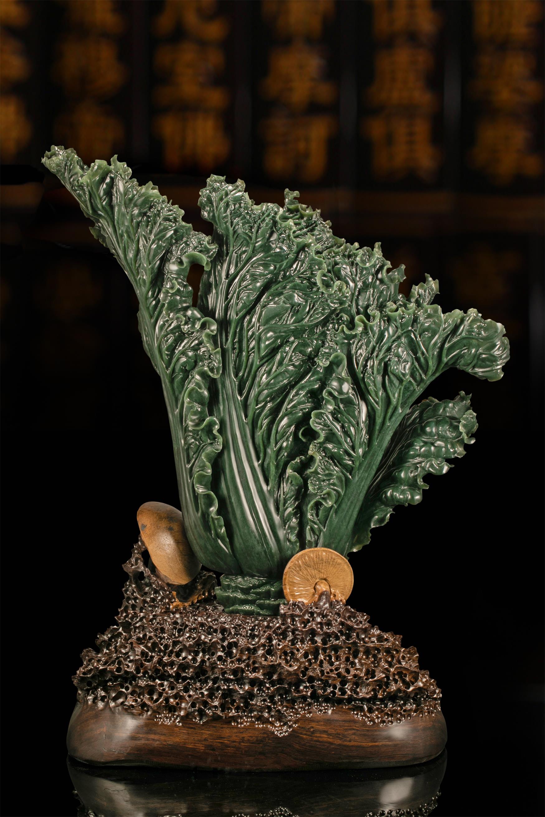 “东北白菜王”李红伟,定然不是种大白菜的,而是雕白菜的,他雕白菜可有一手,非常人能及。但是,今天的“白菜”很特殊,不是那种白绿相间的玉白菜,而是通体墨绿、熠熠生辉的玉白菜!