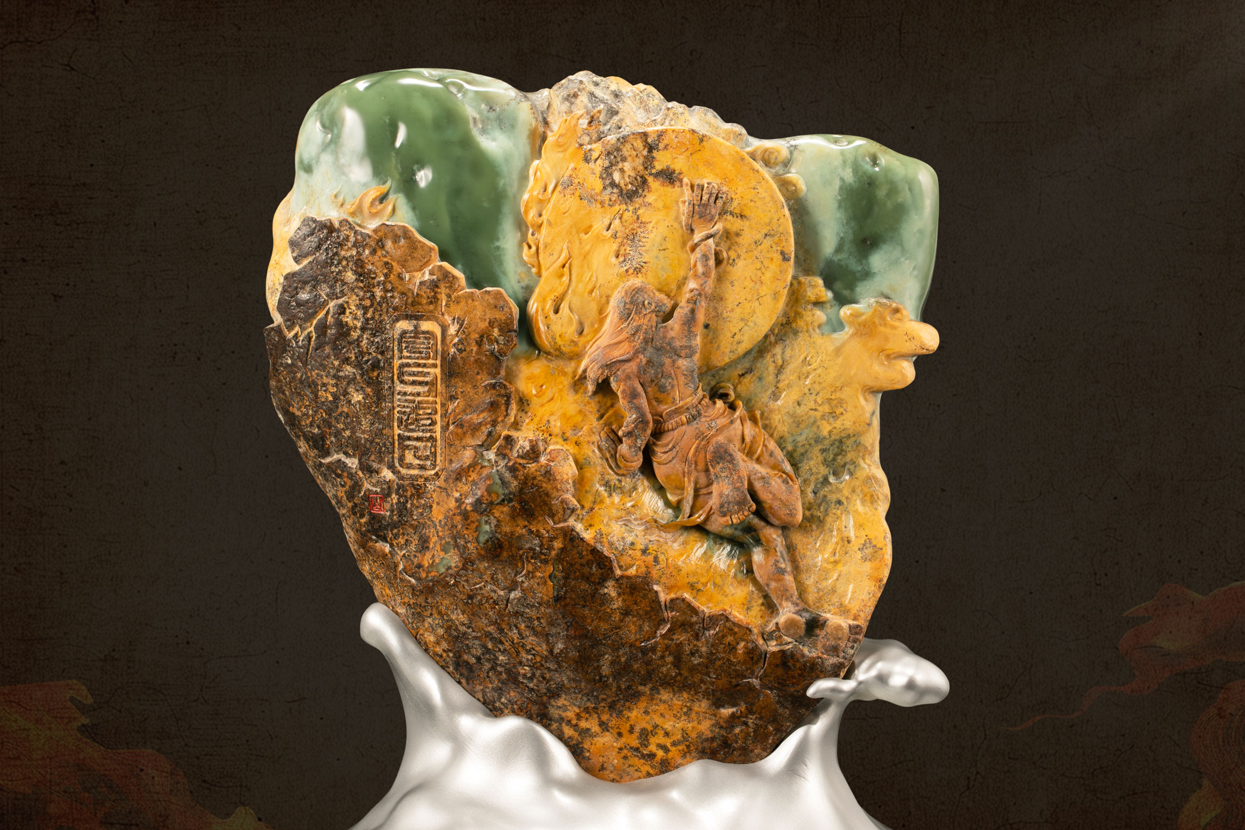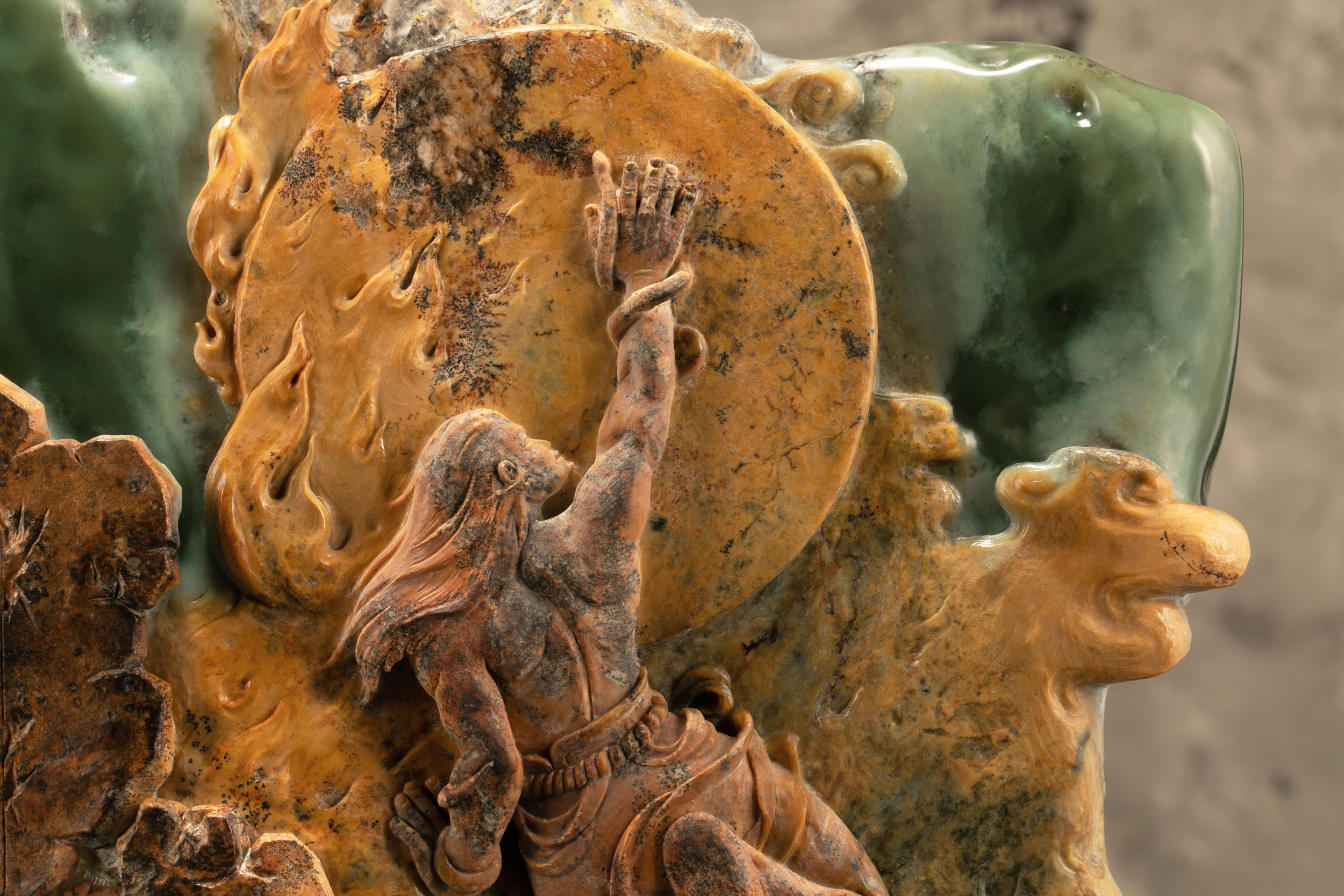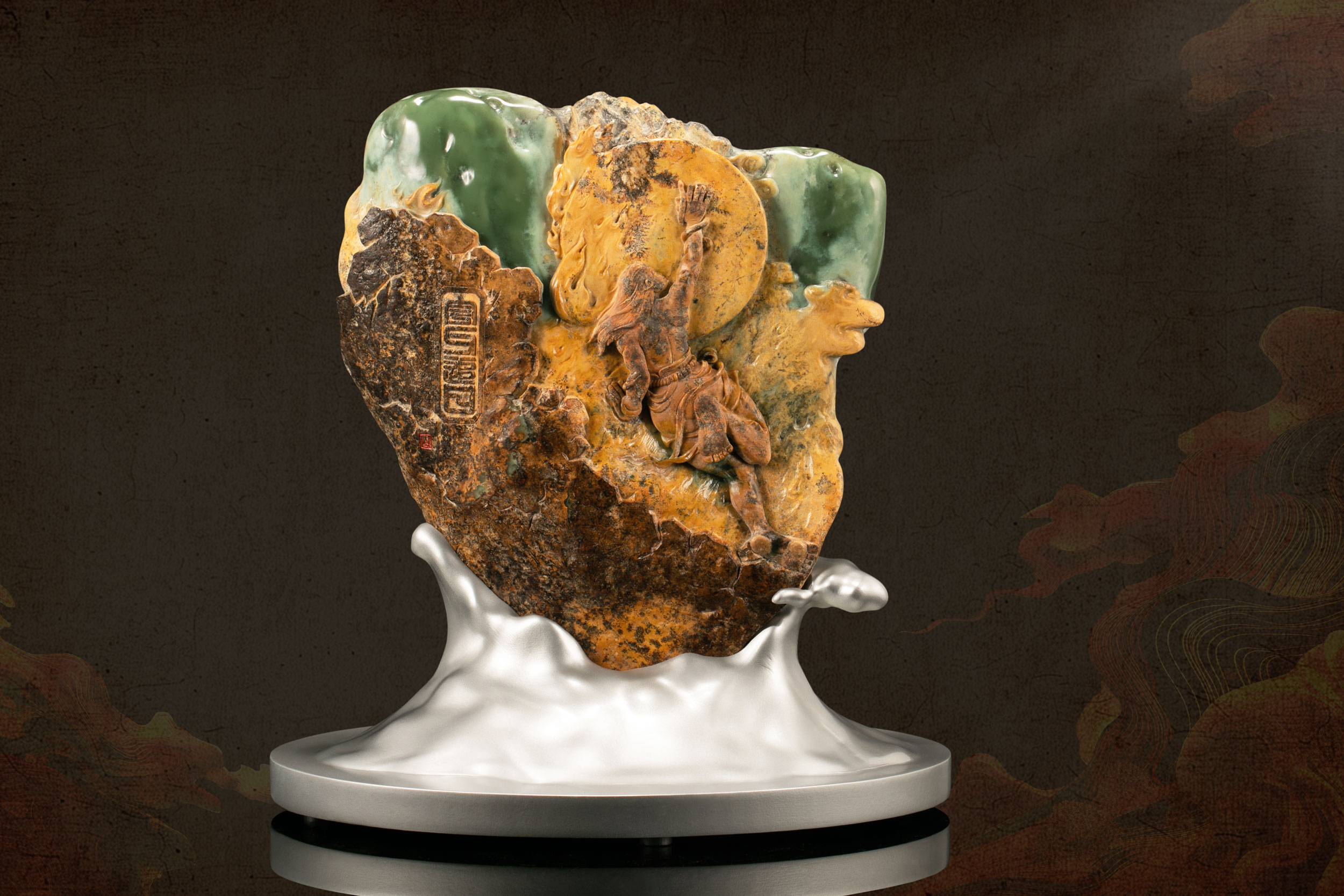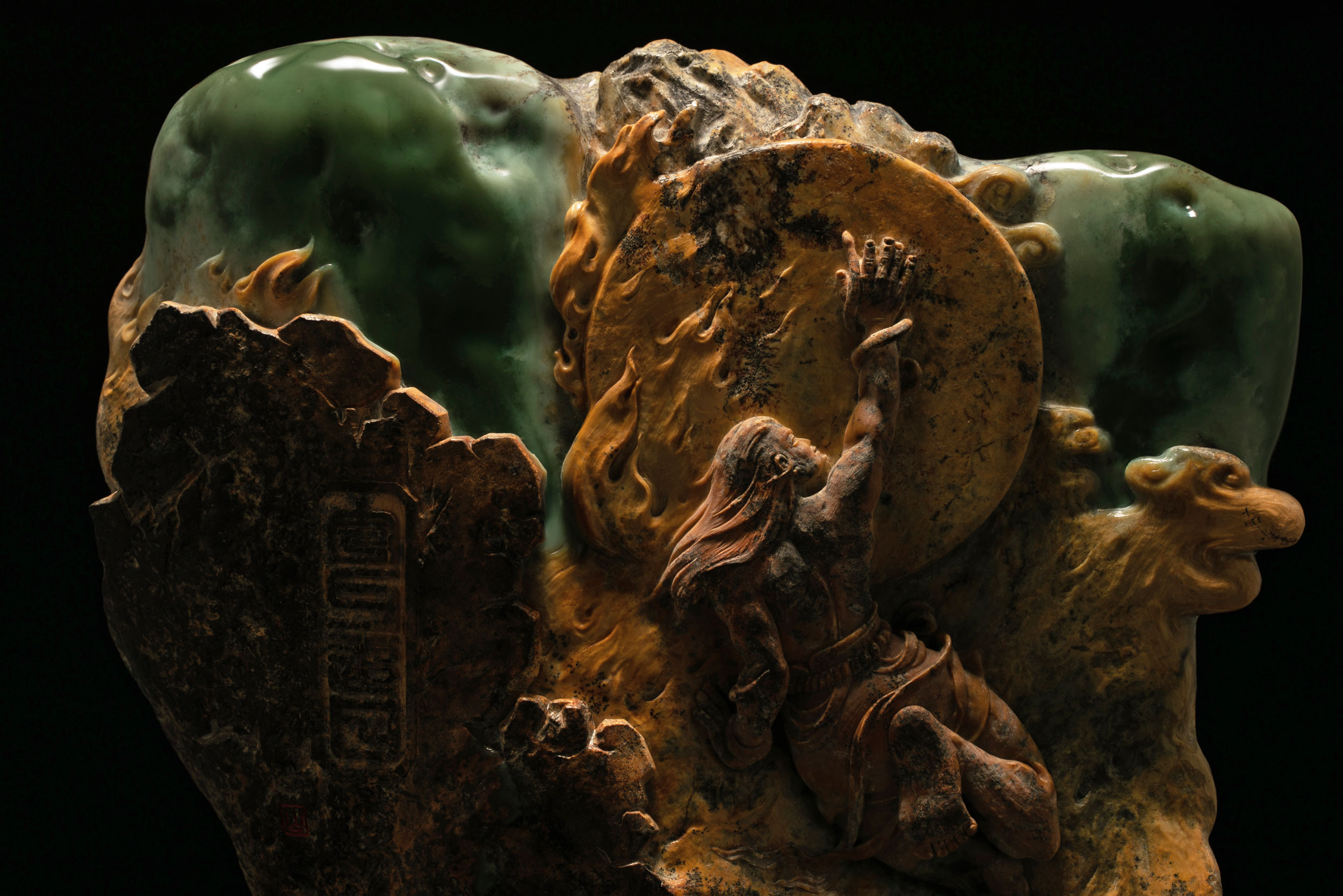 中国玉石雕刻大师刘忠山,以独特视角、遒劲刀触和内心感悟刻画了《夸父逐日》,塑造了夸父栩栩如生、血肉丰满的形象,也引领我们在感知古代先民探索自然的非凡胆略和对末来坚定不移的信念中,看到一个瑰丽而震撼人心的世界。