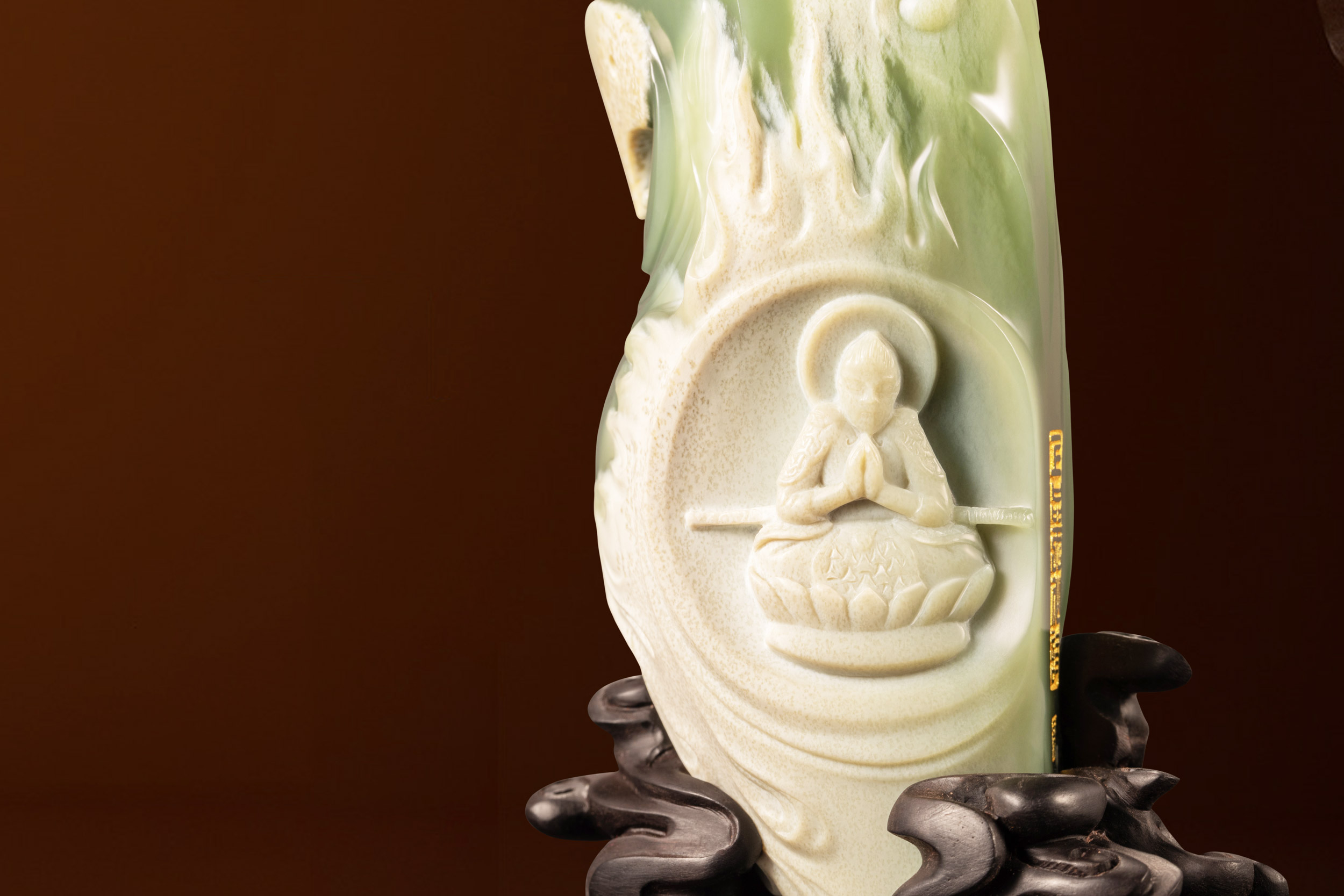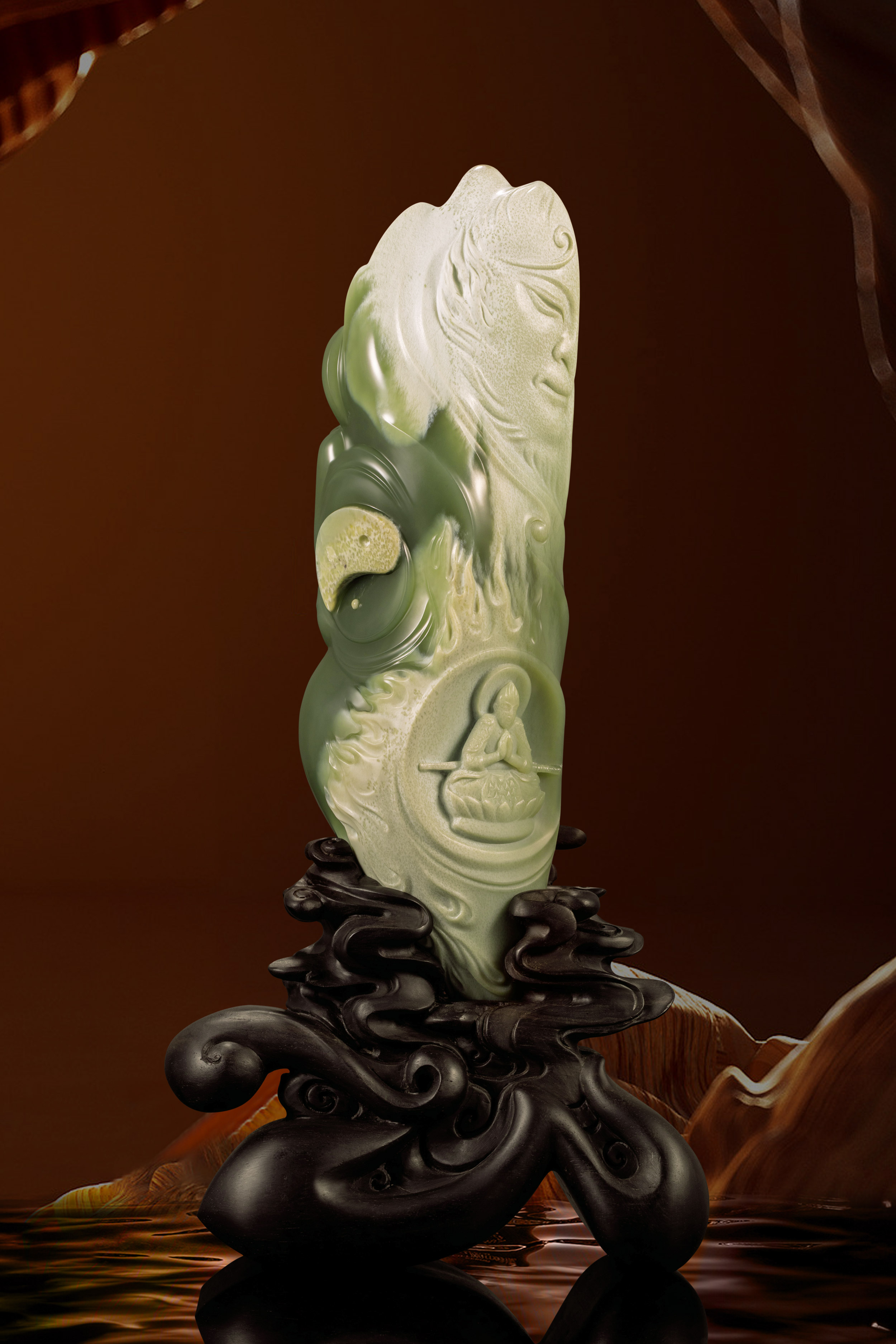 许是心有灵犀,中国青年玉雕艺术家、辽宁省工艺美术大师关守龙,立体圆雕了《上品天仙诀》,让我们自己悟“诀”!