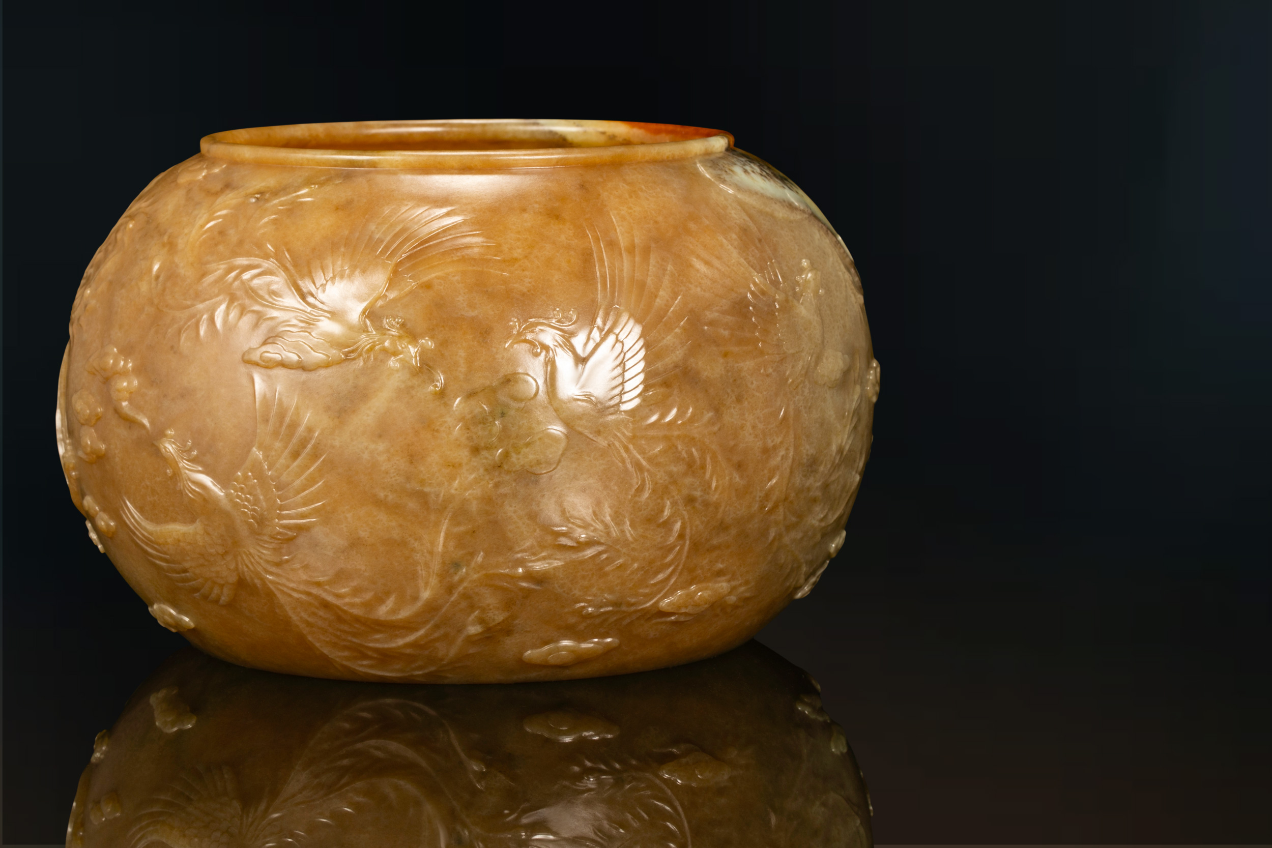 07-27 千璞汇析木玉盛夏时节,走进千璞滙玉雕艺术馆文房四宝展区,一枚古朴典雅的玉洗正迎面而置,它明媚、炙热,又带着一种无法言喻的深沉与静谧,愉悦着人的身心,它正是由玉雕大师李旭创作的《九凤洗》。