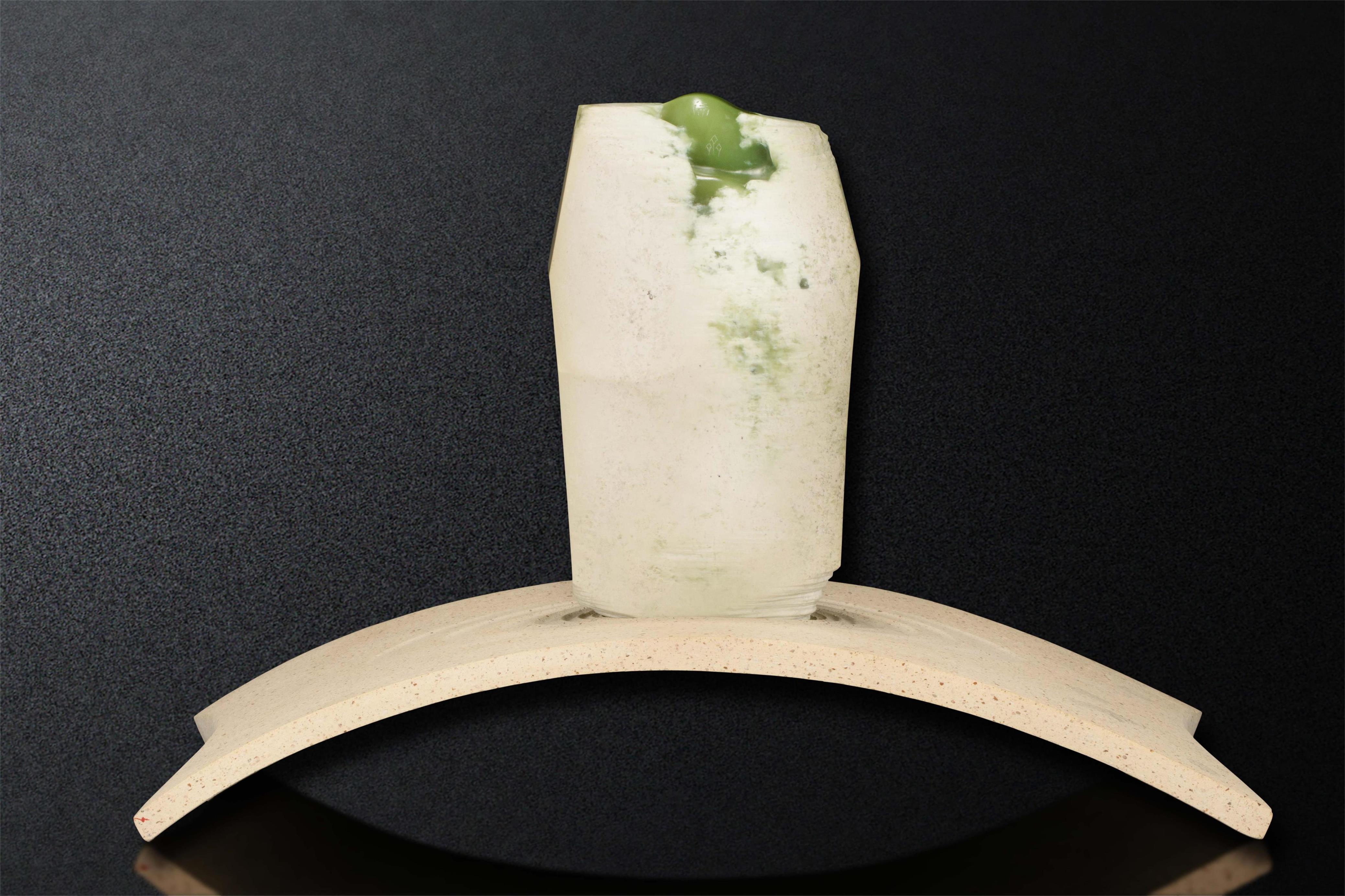 这样的作品沉稳地伫立在拱起形状的黄色陶土板底座,好像无垠的荒漠里,慢慢升起一尊被沉封很久的观音圣面真容。这种构思极具佛教禅意,正如《金刚经》所言:“一切有为法,如梦幻泡影,如露亦如电,应作如是观。”通过沙土的象征,观者可以体悟到万物皆虚幻,本来无一物;尘世的复杂与变化,总有一天会随风而逝,唯有内心的宁静、真理与智慧才是真正的永恒。