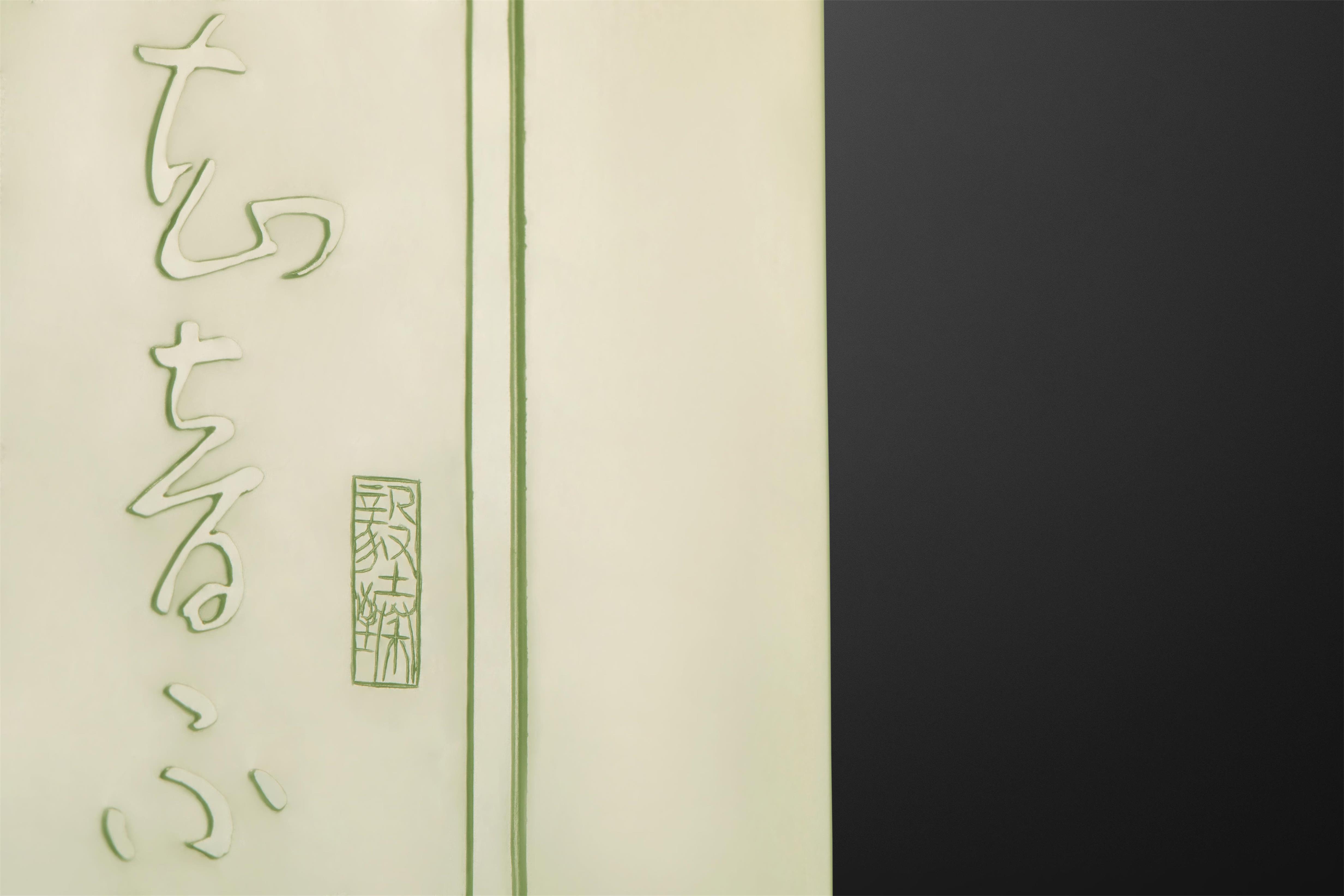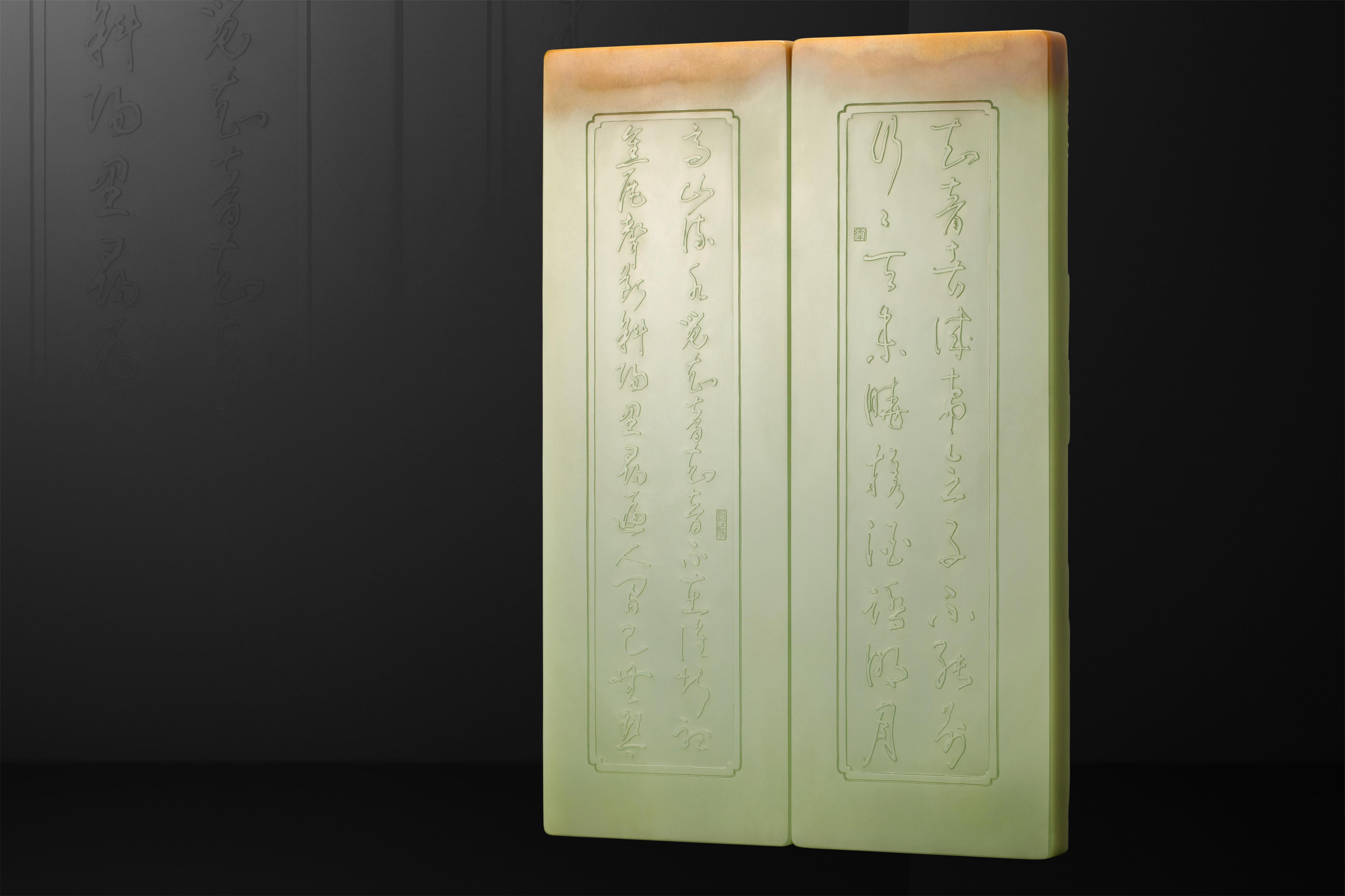 这是中国玉石雕刻大师、国家级非物质文化遗产(海派玉雕)代表性传承人翟倚卫,在析木玉《高山流水对牌》背面所刻的两段铭文。
