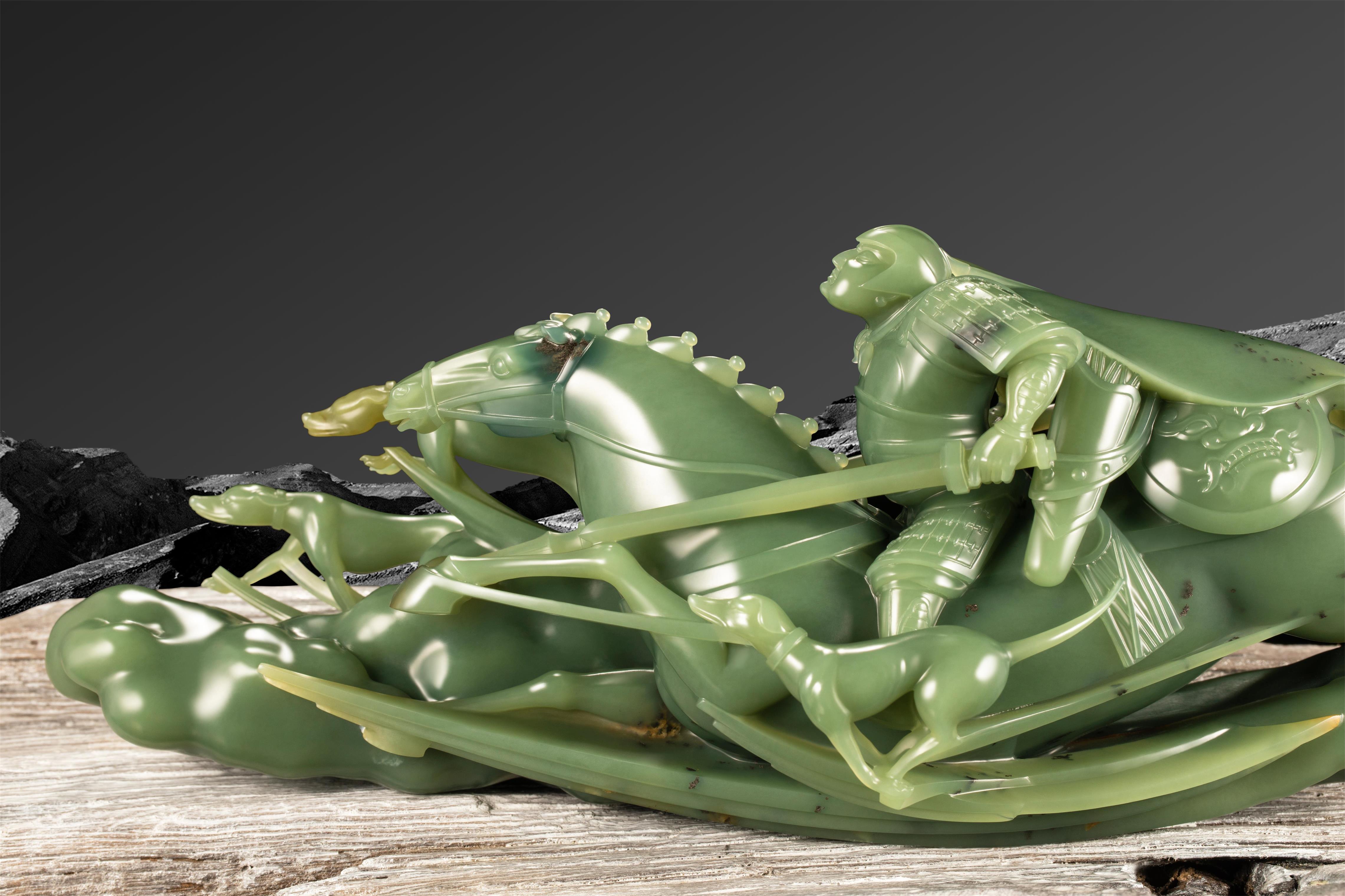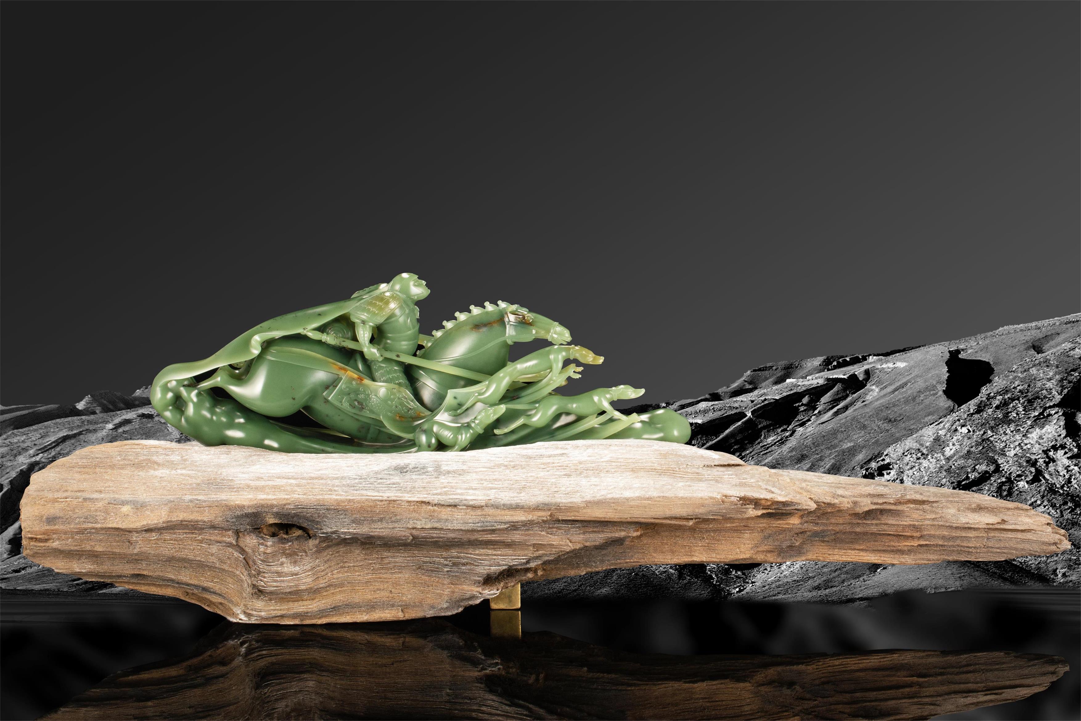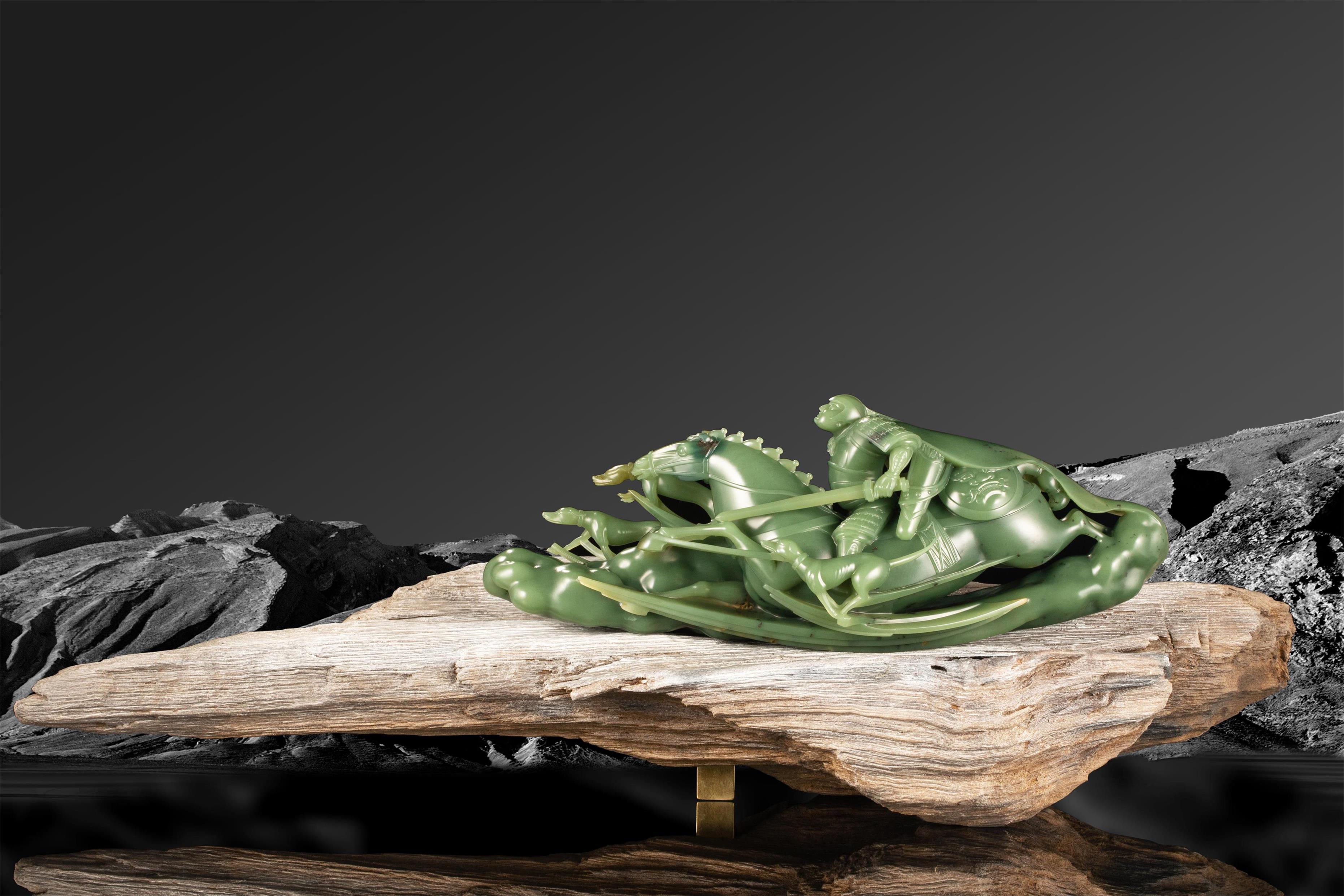 12-21 千璞汇析木玉在冬至这个象征着阴阳转换、万物始生的特殊时节,中国玉石雕刻大师张庆东以温润如春的析木玉,生动再现了古代武将狩猎的激烈场景,完美表现出一种蓬勃向上的尚武精神与追求卓越的渴望。