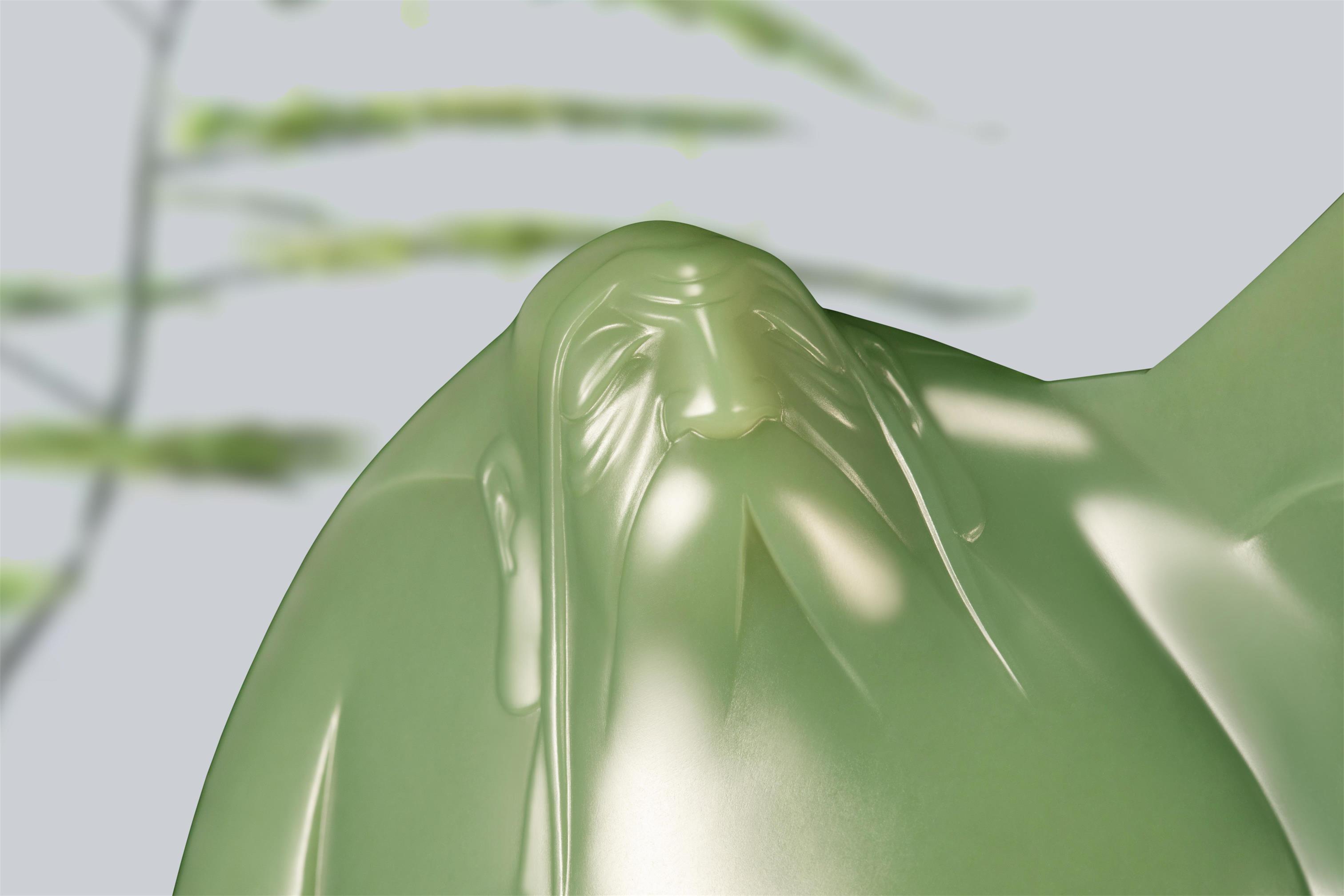 作品富于变化的几何图形、简洁凝练的线条、令人耳目一新的主体形态与温美素洁的天然玉质完美相融,既彰显出设计的创意与艺术性,也体现了中国古代伟大哲学家、思想家老子删繁就简、去除浮华、以自然本真回归本源的“大道至简”哲学理念,达到了“技近乎道”的最高境界。