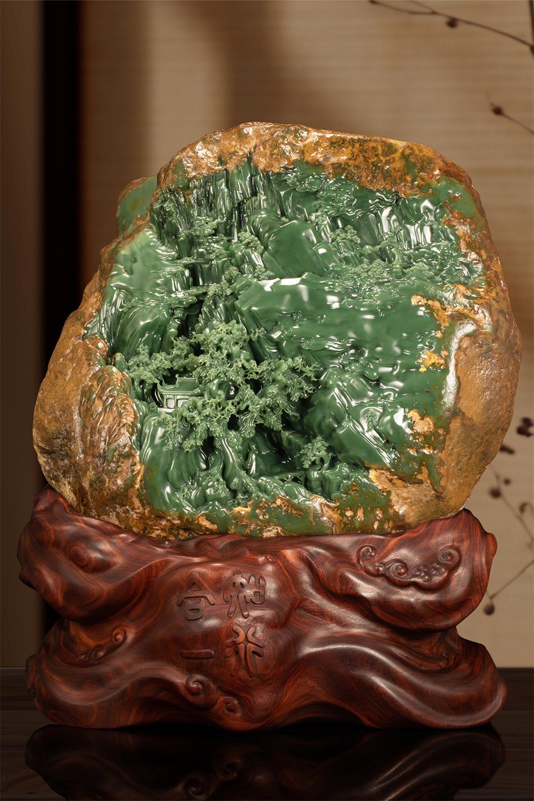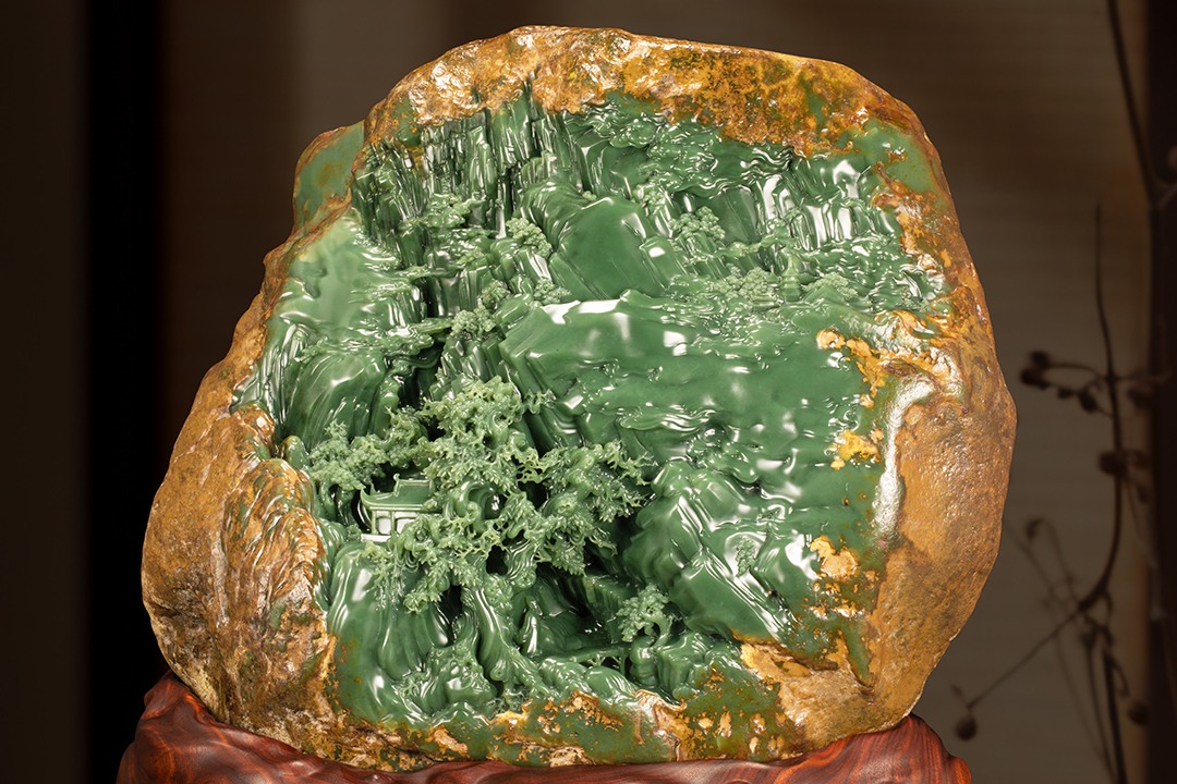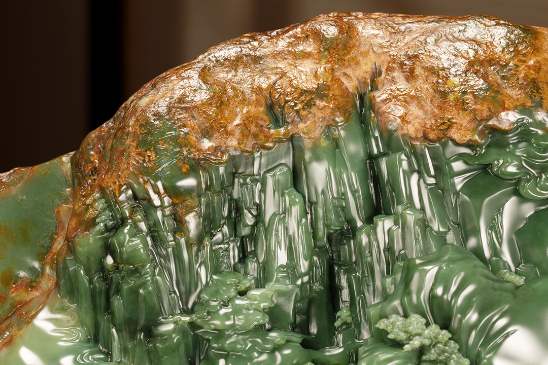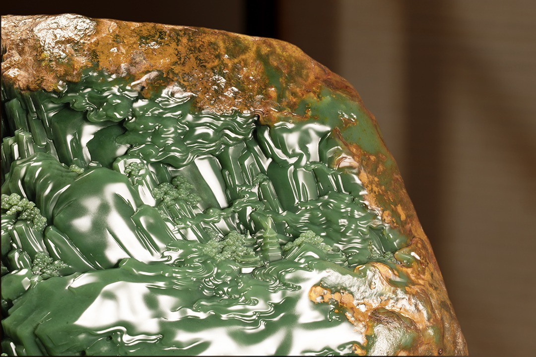 这玉料看似“毛病”众多,可于世东并未钻牛角尖,非要一次性将其消除殆尽。他反复研究,以灵动思维赋予裂痕以生命,让它们幻化成山涧幽谷;与杂质“对话”,唤醒它们暗藏的本真,营造出云烟雾霭、绿荫遮蔽,宛如魔术般神奇!