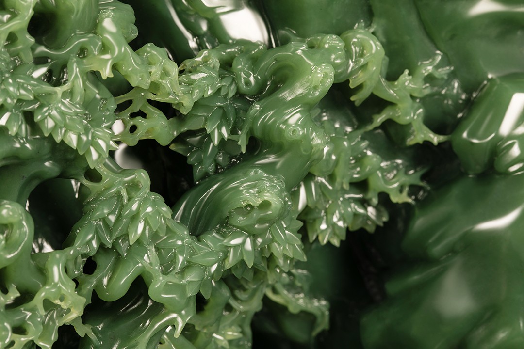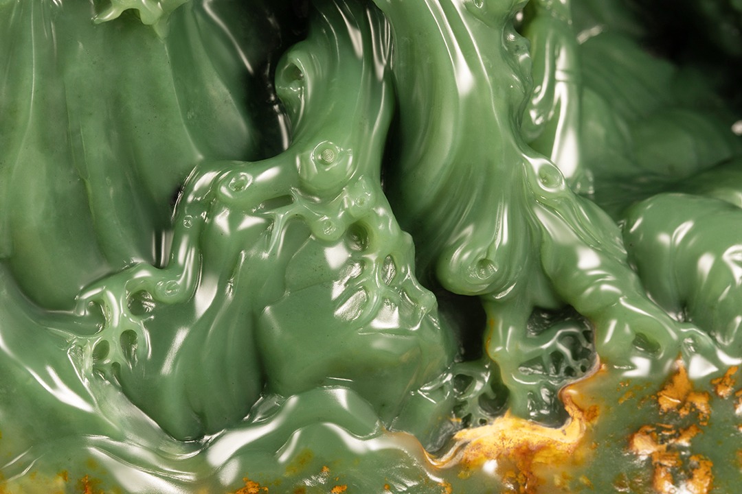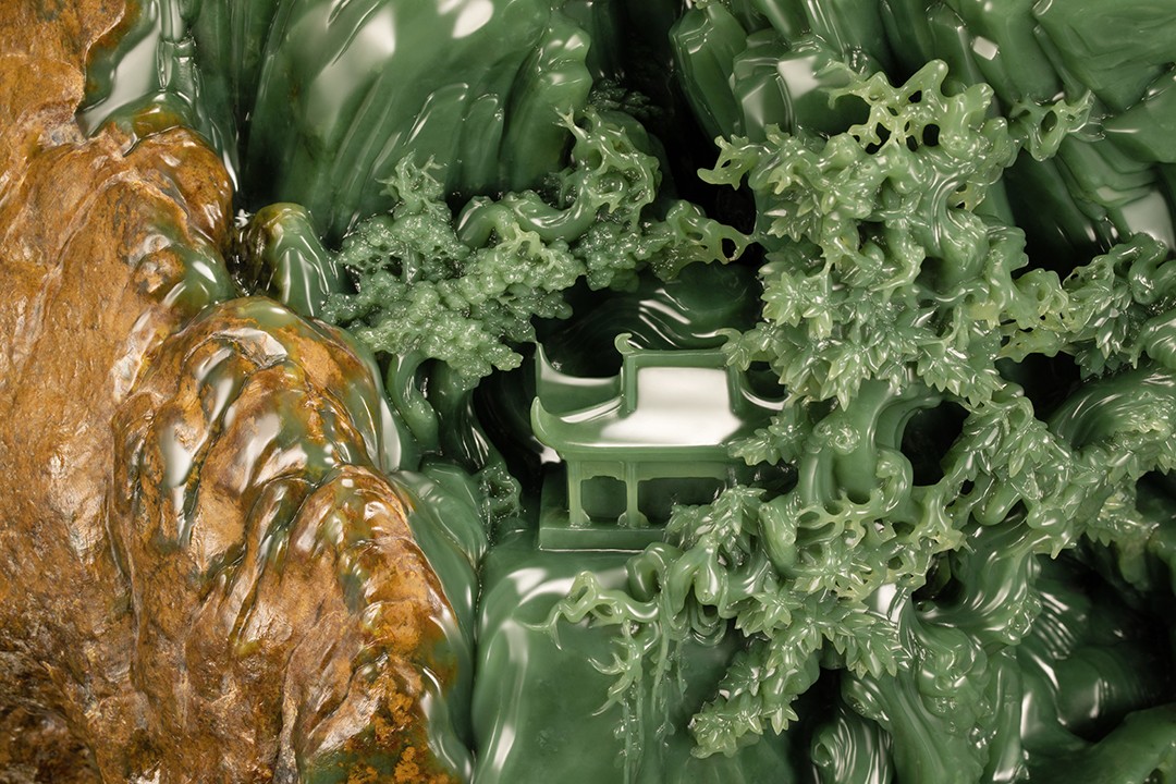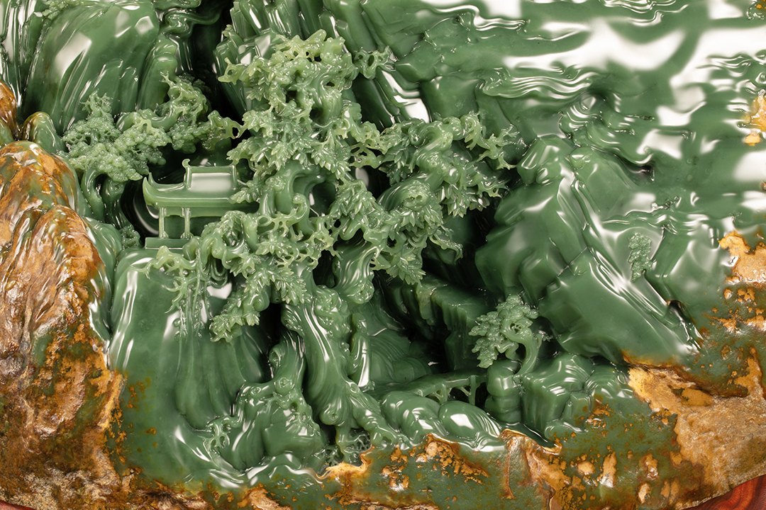 这玉料看似“毛病”众多,可于世东并未钻牛角尖,非要一次性将其消除殆尽。他反复研究,以灵动思维赋予裂痕以生命,让它们幻化成山涧幽谷;与杂质“对话”,唤醒它们暗藏的本真,营造出云烟雾霭、绿荫遮蔽,宛如魔术般神奇!