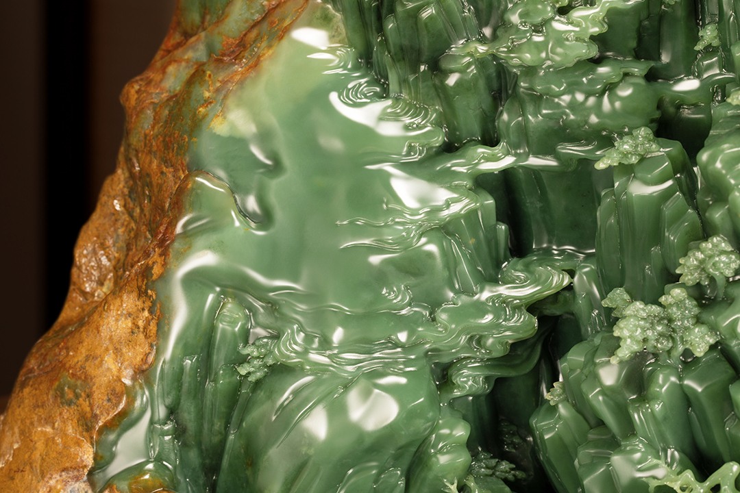 我们观赏这一作品时,不仅能看到层峦叠嶂的景致,还能触摸到匠人在“格物致知”时的思想脉络。那些反复雕琢的刀痕,实则是心灵在玉料限制中突围的精神印记。