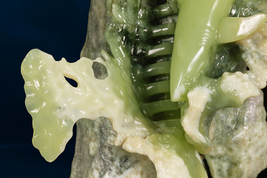 唐勇说:“玉雕不是技术活,而是把善念和美倾注进去。”《万物生》的创作,正是将谷雨“润物细无声”的滋养之力,转化为玉雕艺术的再生之力,在人类纪与地质纪的对话中,完成“天人合一”古老智慧的当代诠释与诗意应答。