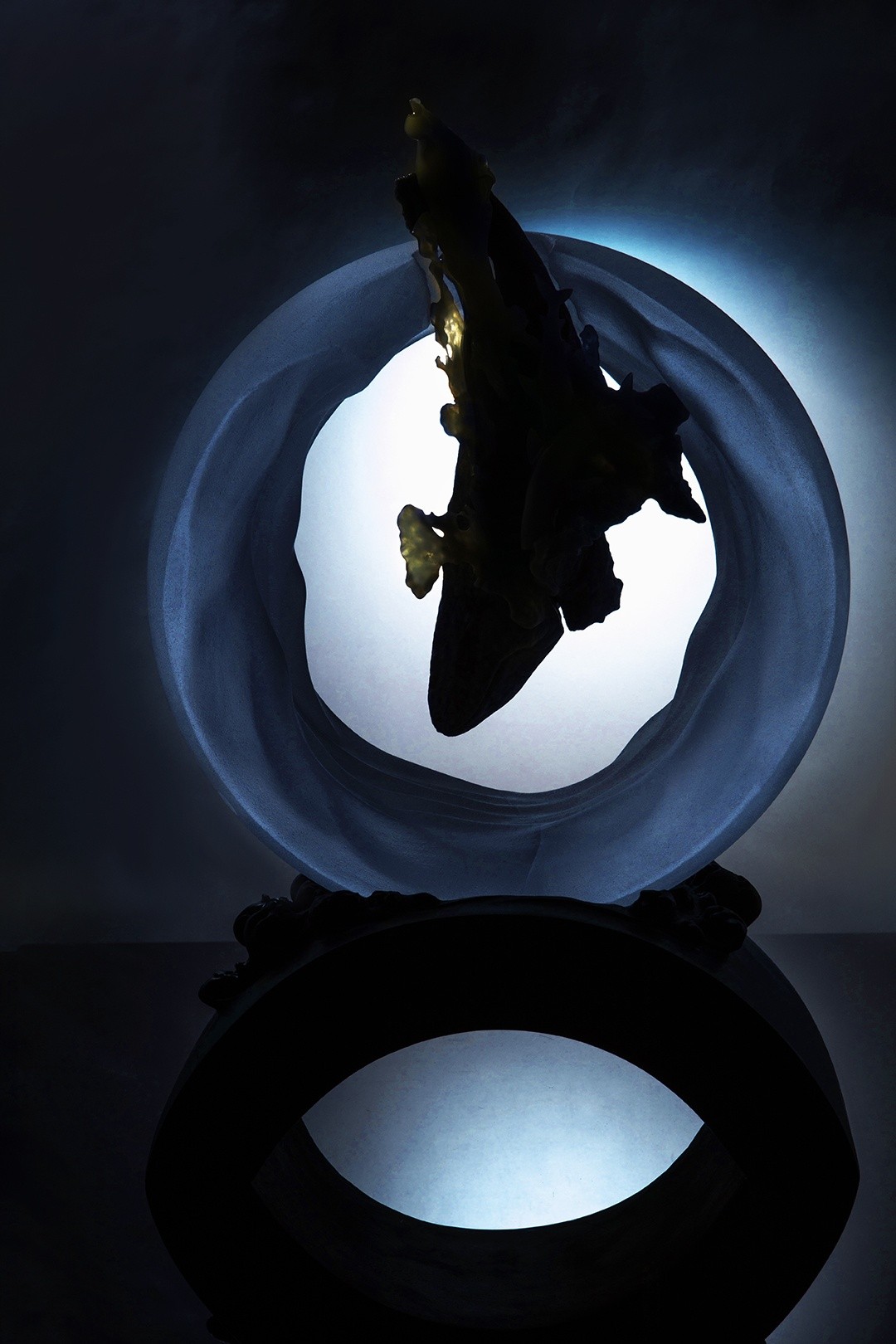 作者以现代材质重构古典“天圆地方”的空间认知,让静态的玉雕产生潮汐涨落般的动态观感。