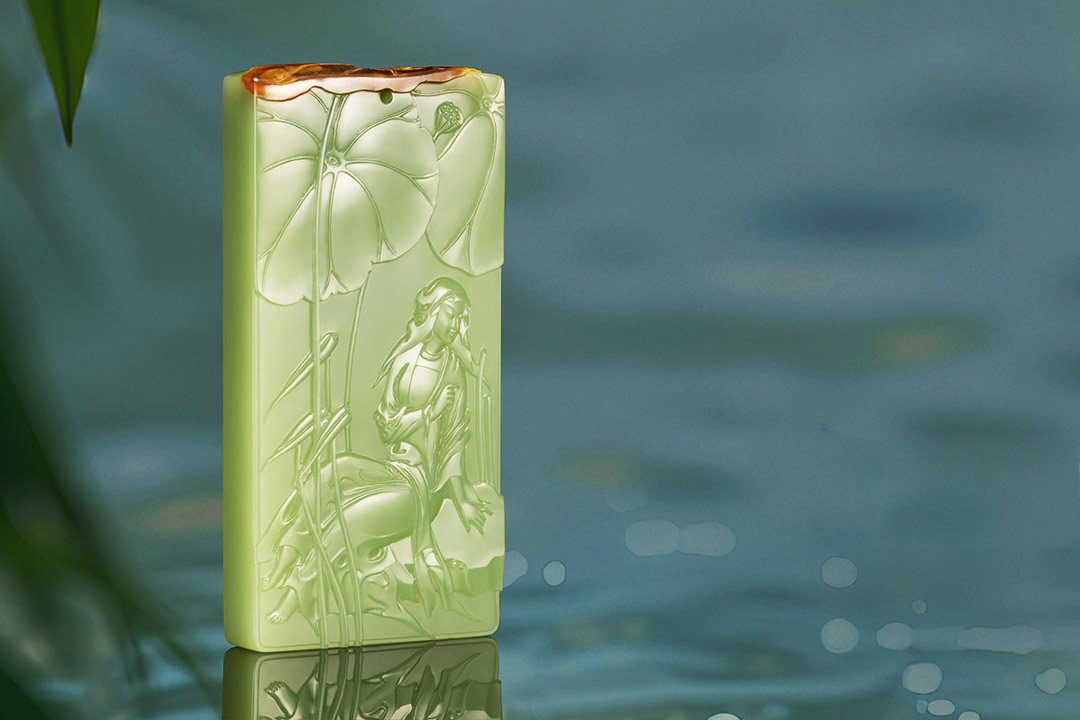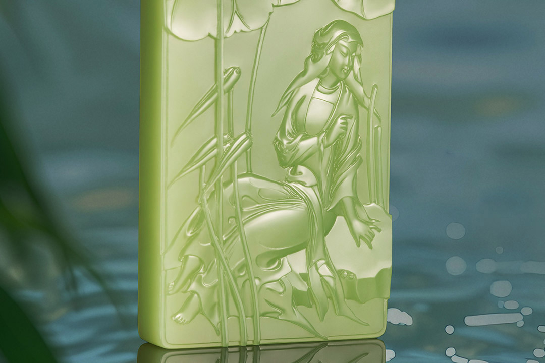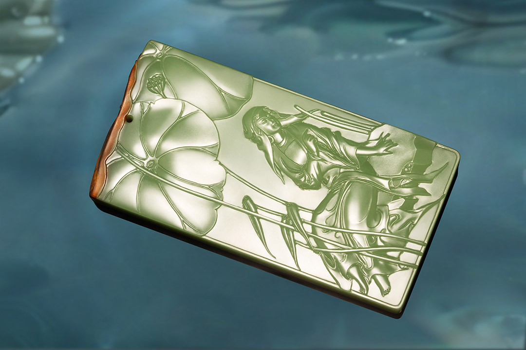 首先,他慧眼识玉,选用了质地温润细腻、色泽清新淡雅、凝聚天地灵秀之气的析木玉。