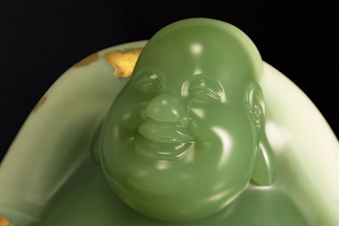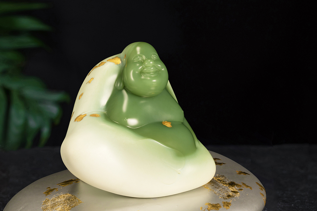那脂白皮壳化作抽象衣袍,青绿玉肉幻化成衣袍里的弥勒,实现地质馈赠与人文匠心在这小小天地里的完美共振。
