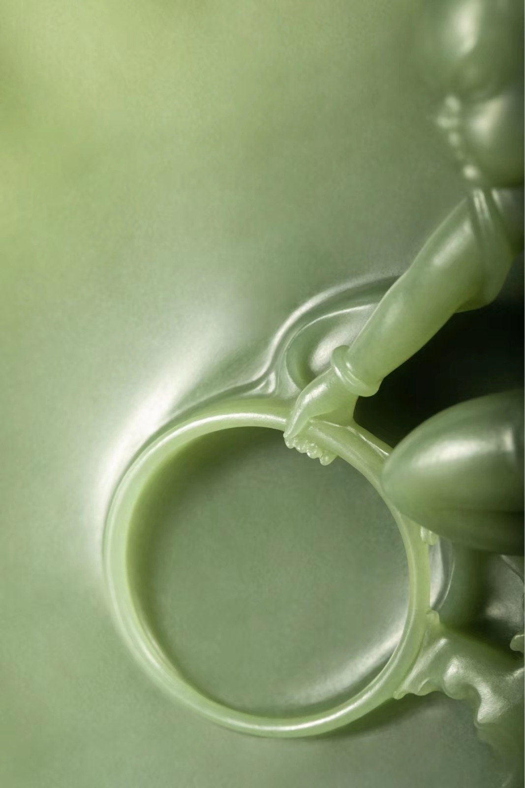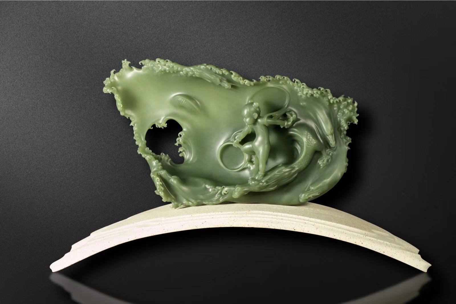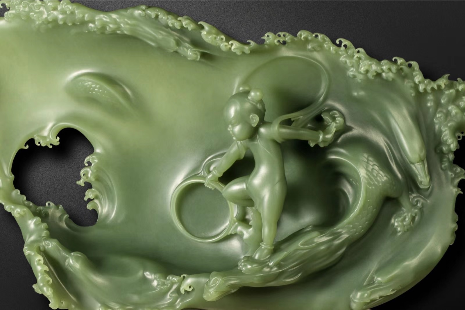 有薄透的不规则四边形玉料内卷浪花,象征一份包容。
