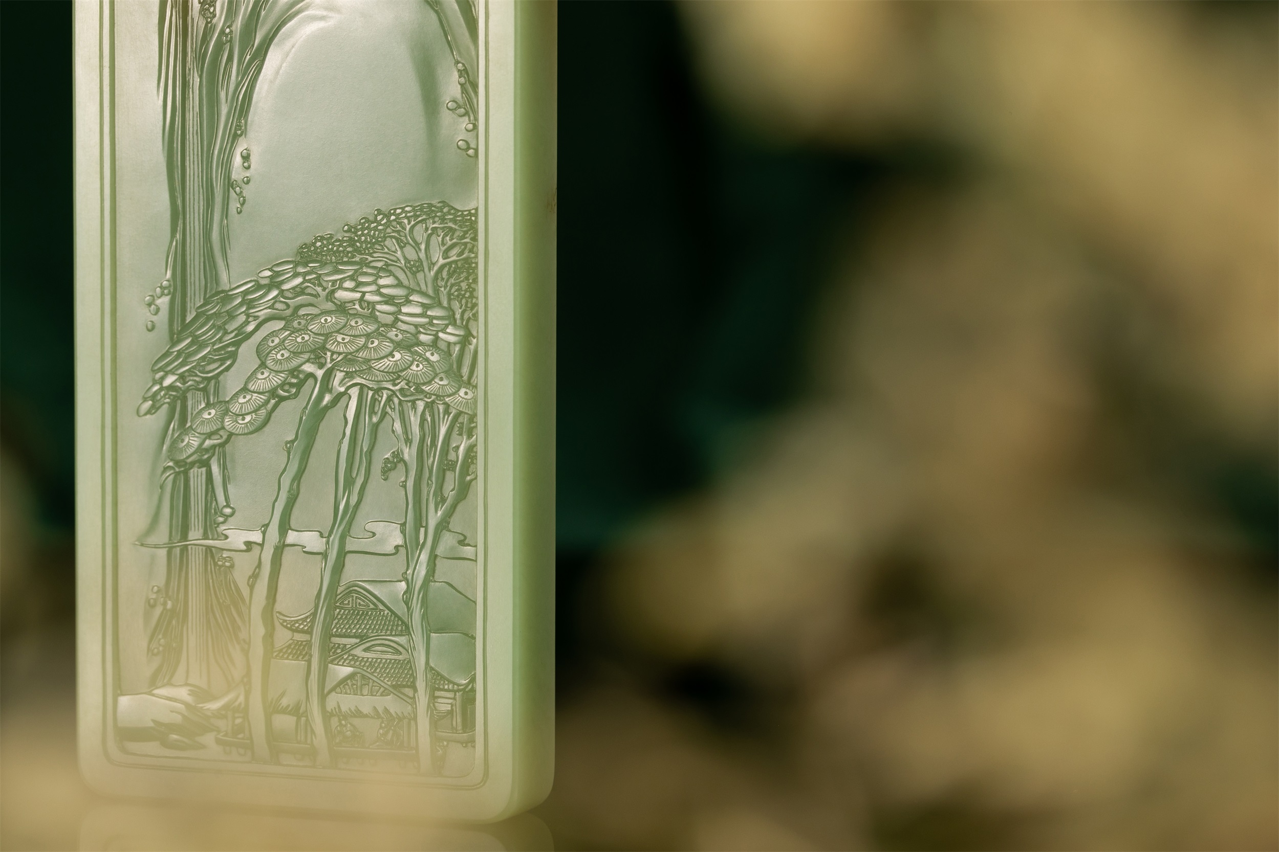 桃花流水窅然去,别有天地非人间”在清新温润之析木玉上精彩再现的画面。
