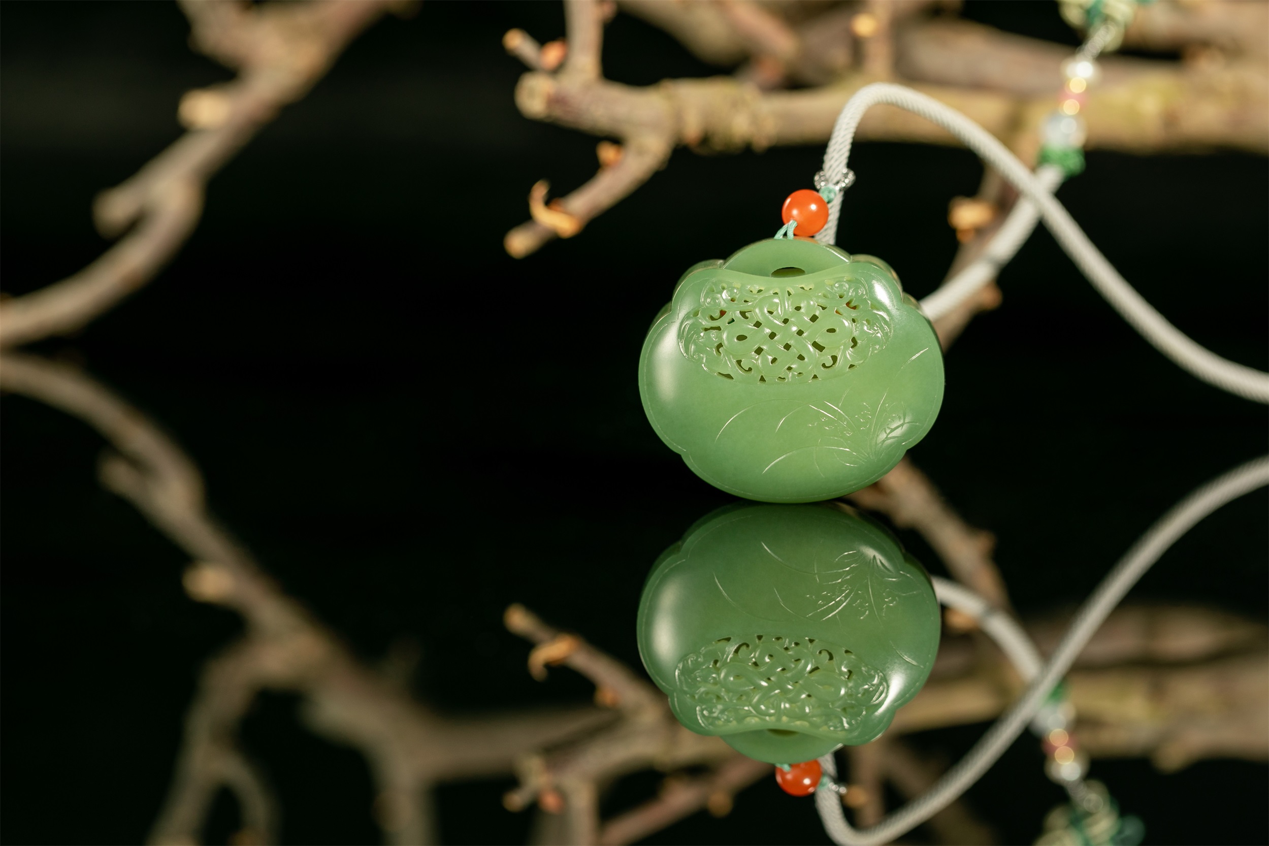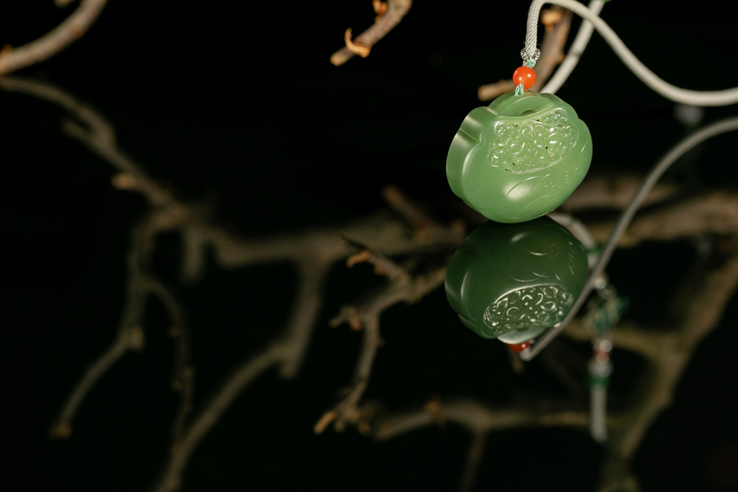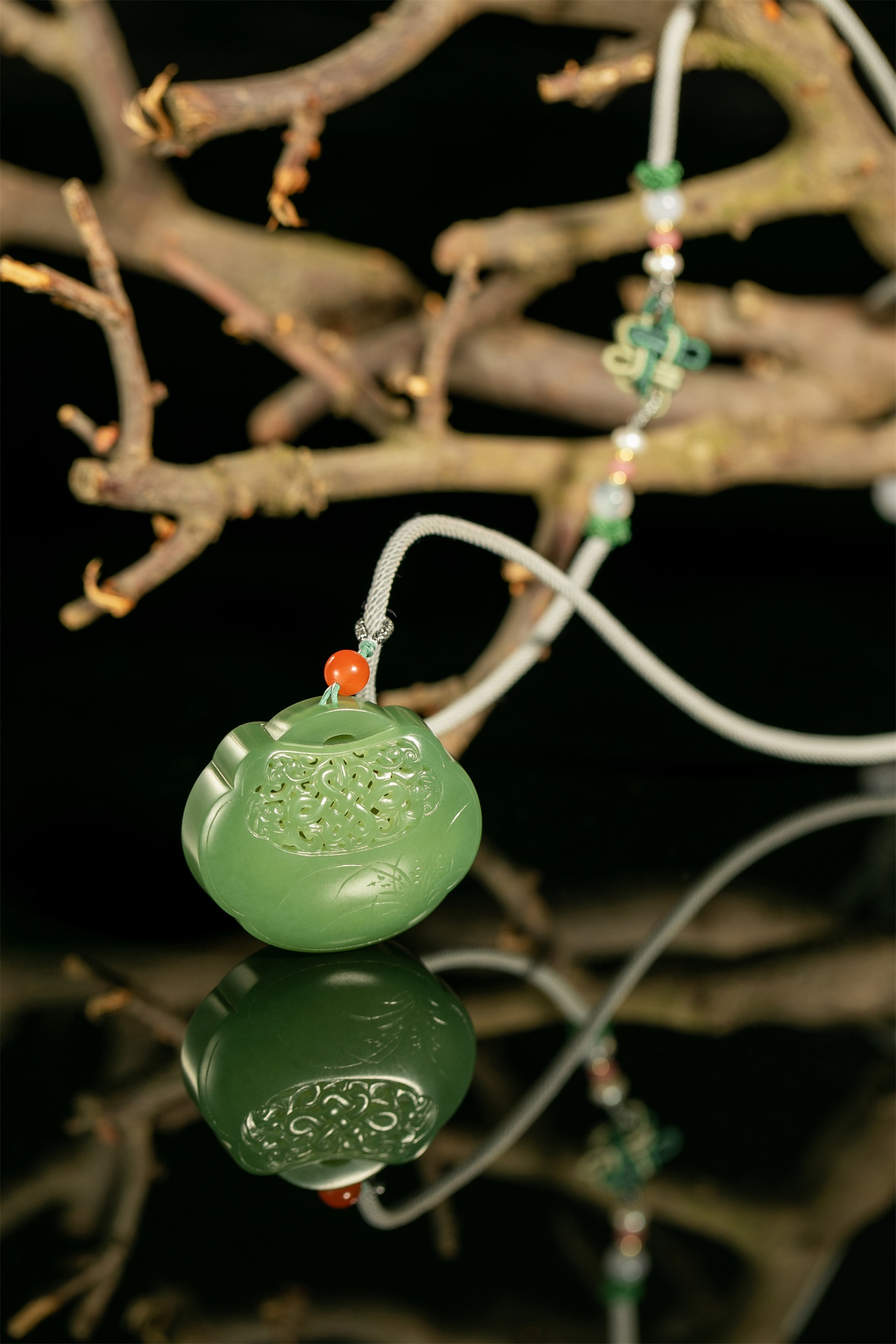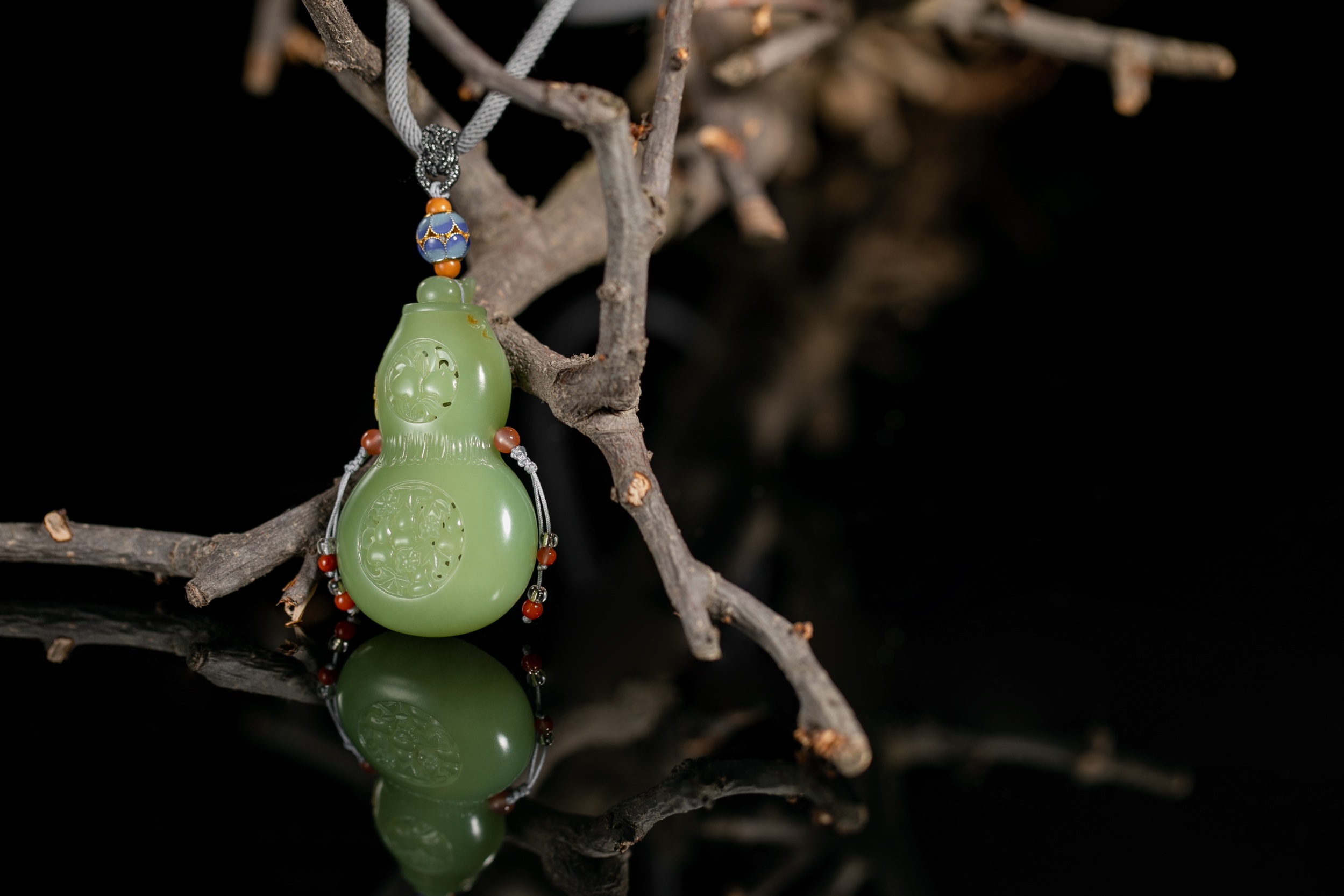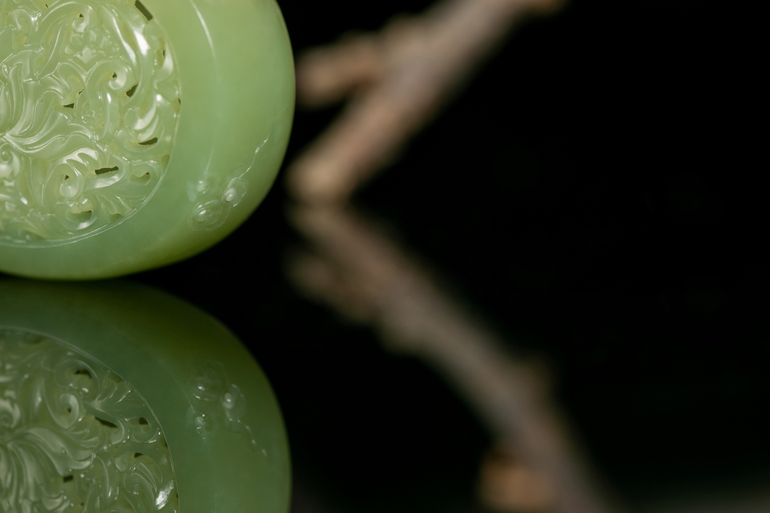 四件作品造型各异,桃形、心形、椭圆形和葫芦形的轮廓,与虚实相间的雕饰互生出一种精巧、空灵、唯美和逸秀,带给我们一种韵古趣雅的别样感官享受。