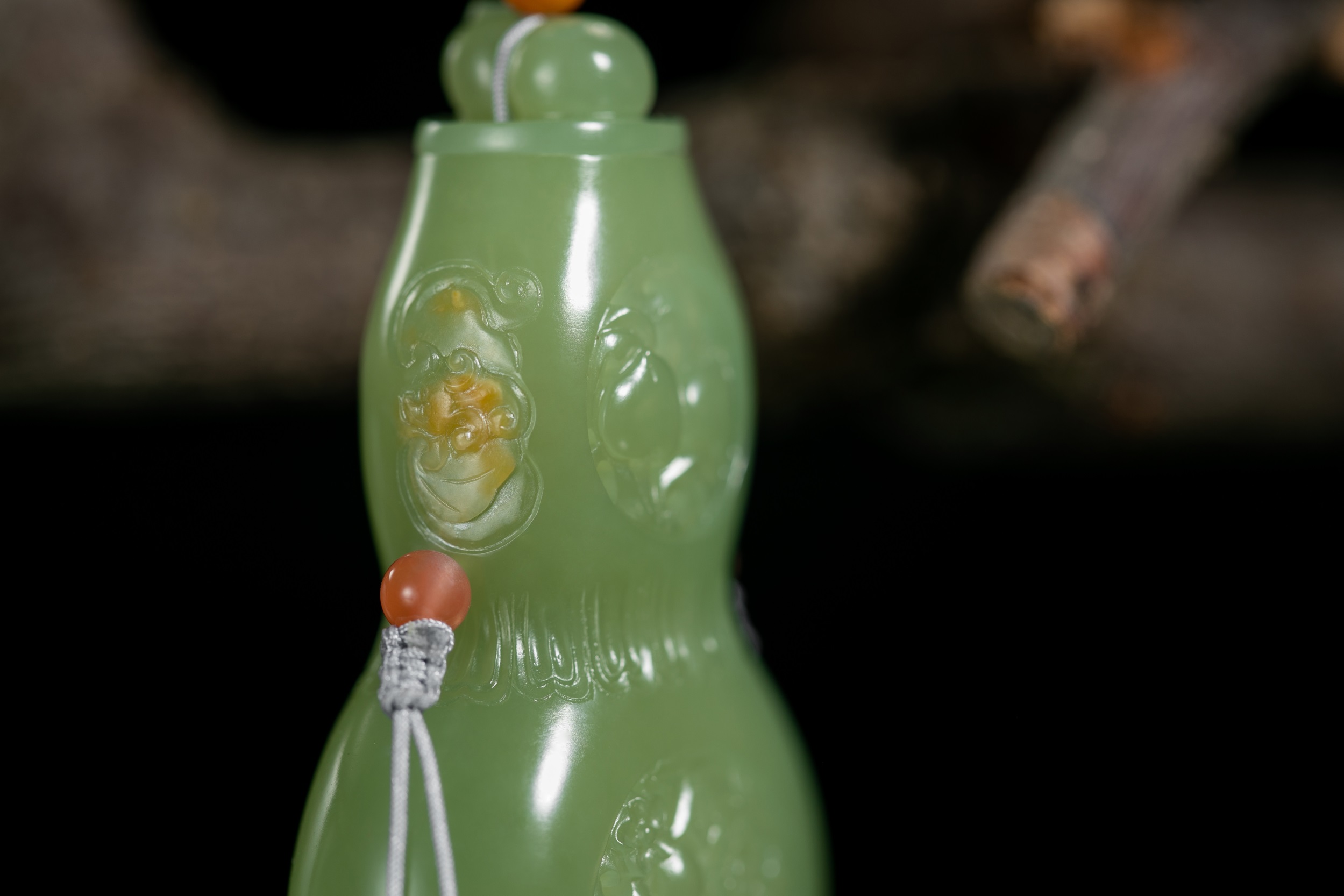 无独有偶,才这样想着,转过两三日,我便见到了中国玉雕高级技师、江苏省玉石雕刻大师钱建良创作的析木玉《香囊》系列作品。可以说,这组《香囊》小件一入眼,就能抓住人心。