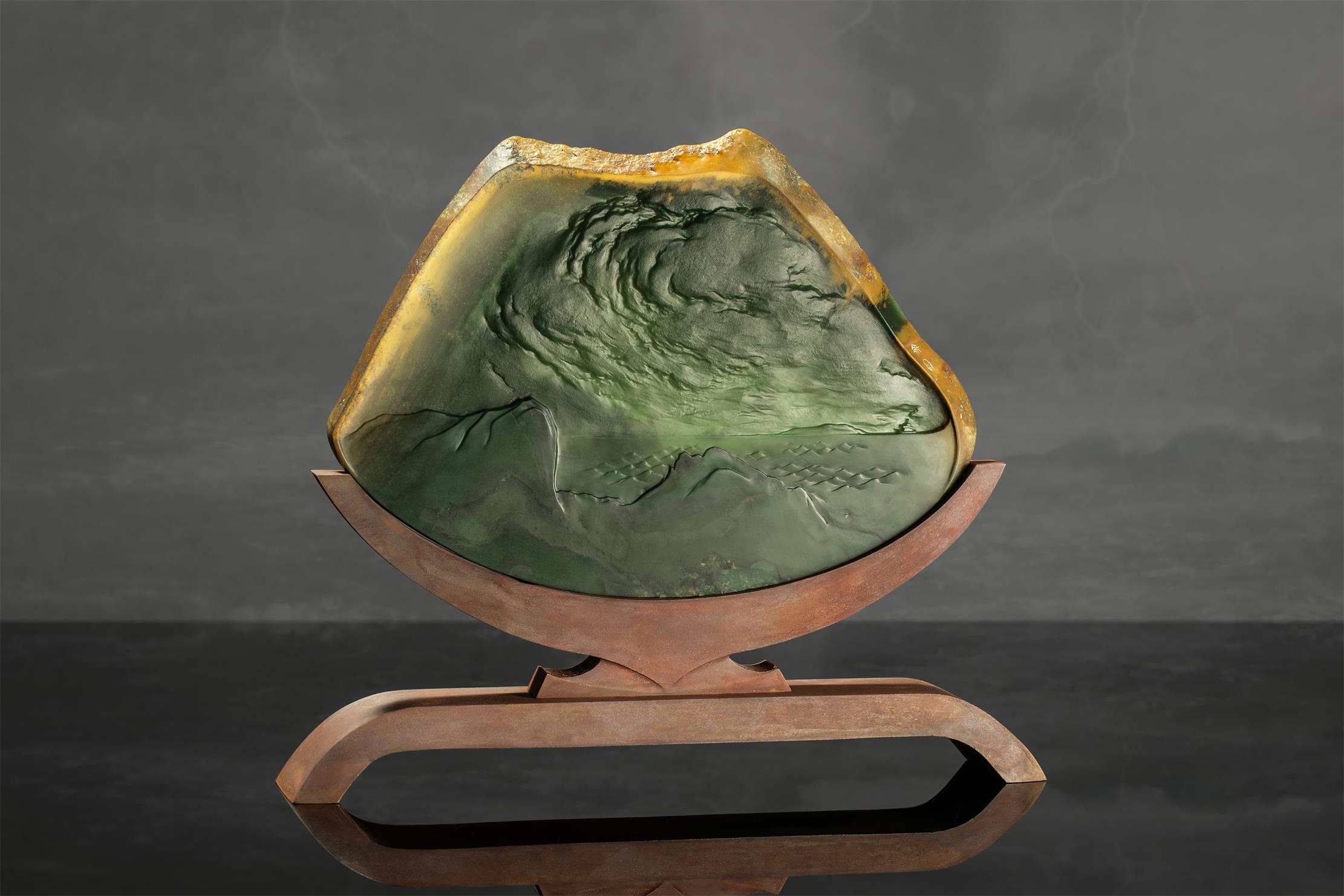 千璞滙旗下玉雕大师赵泽民,用粗犷刚力、柔劲流畅的线条,呈现玉料两面截然不同的画风,一面气势磅礴,一面情感激越,有很强的艺术感染力。