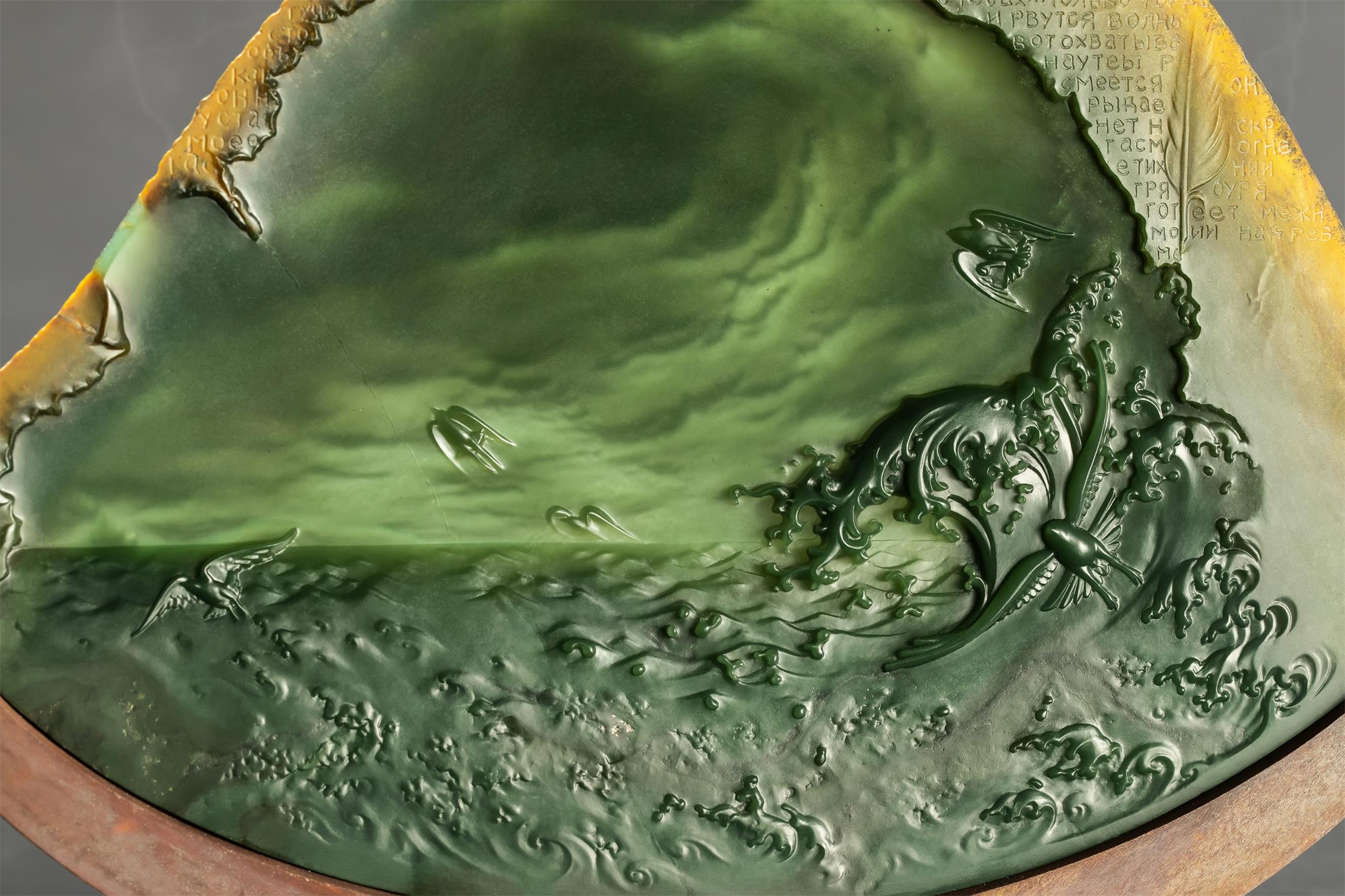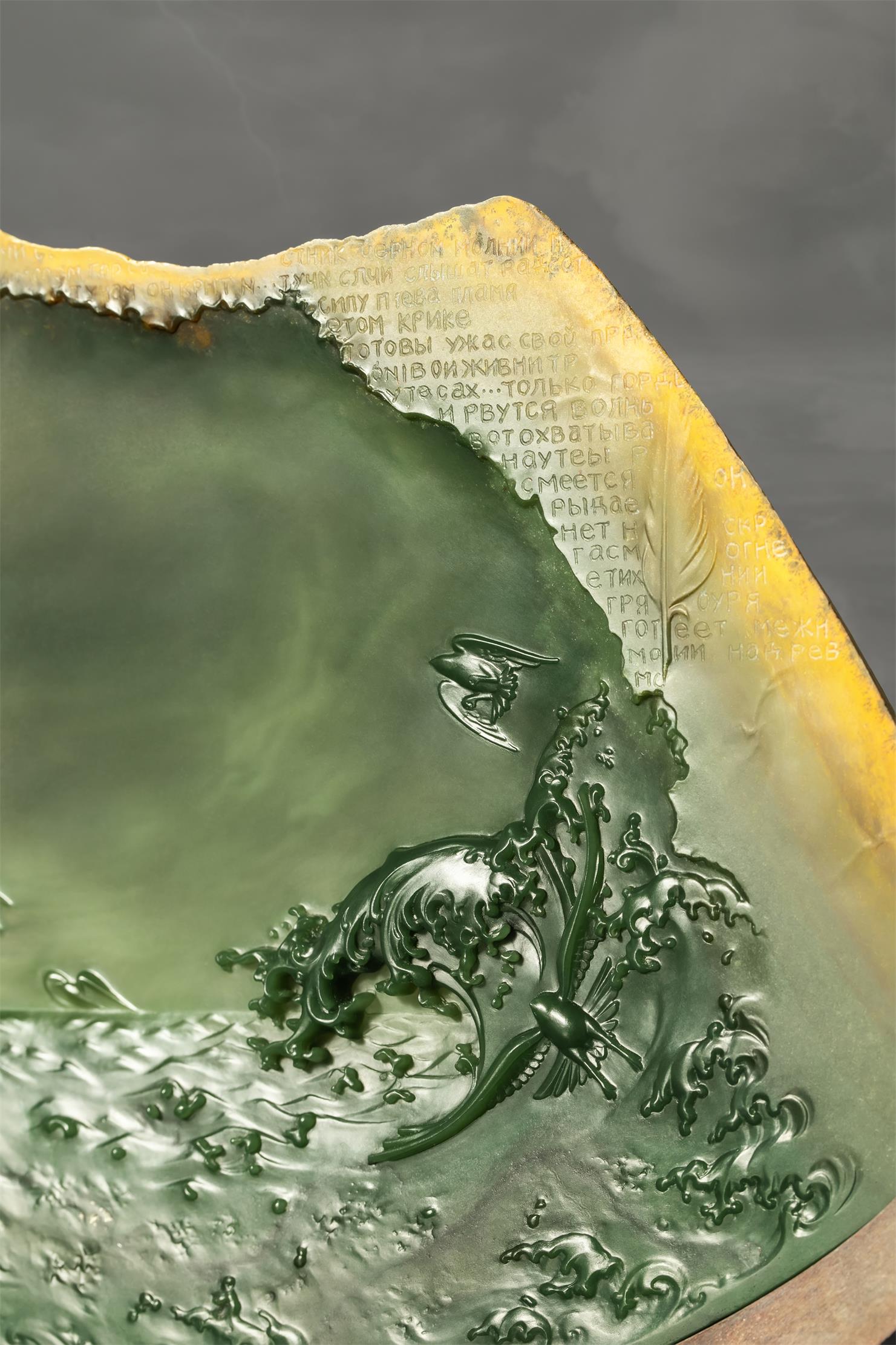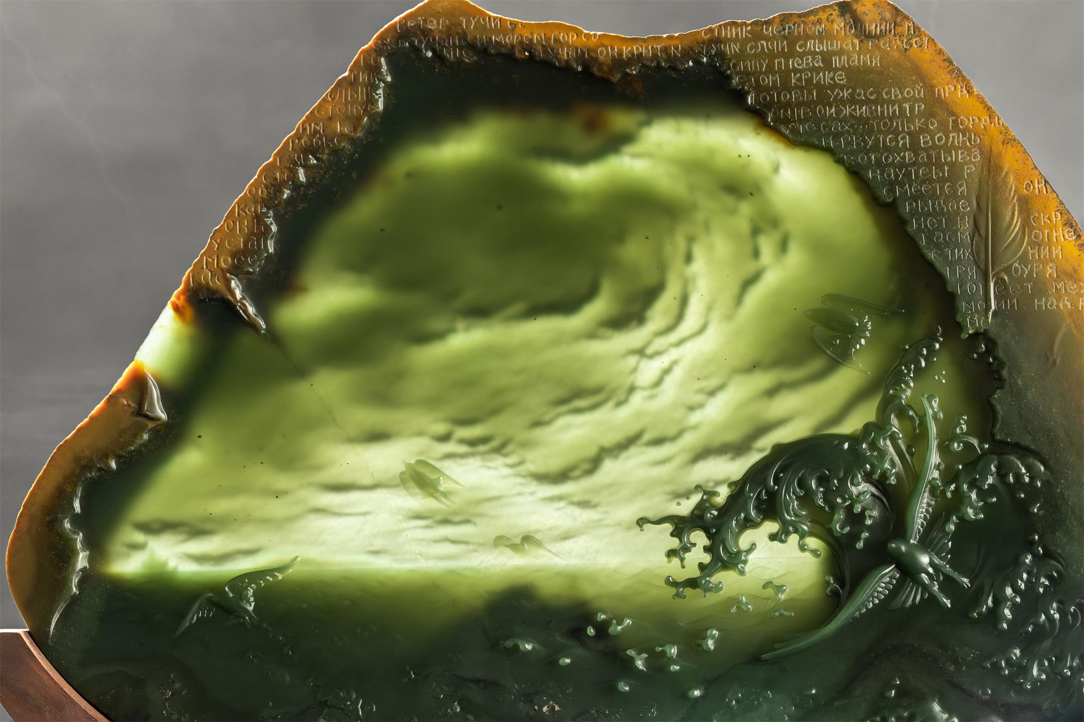 激荡人心的画面,以及边缘处精雕的高尔基笔迹,将在古老玉面上散发不朽的文化艺术魅力,给生活以希望……
