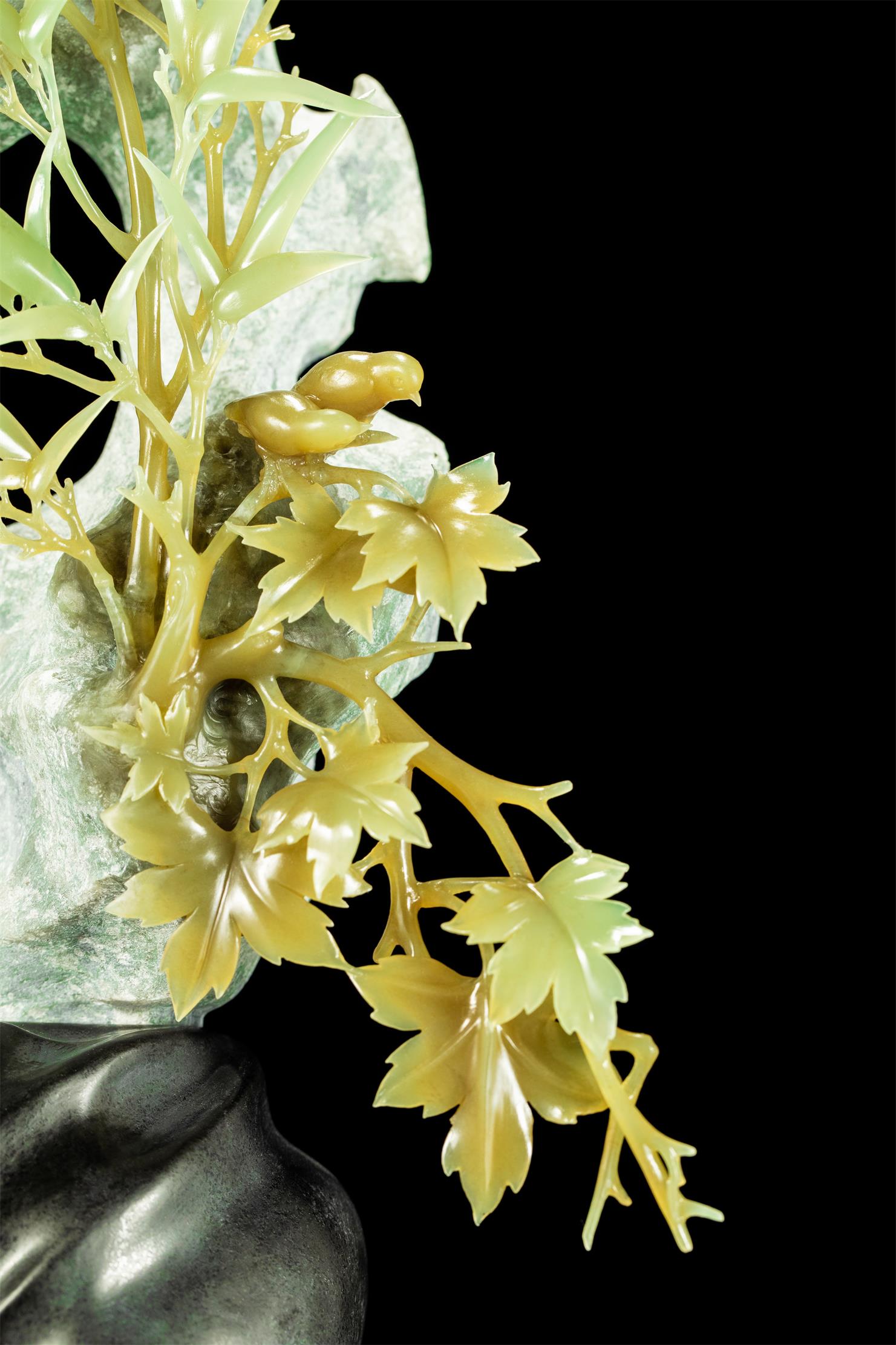 所以,我想,即将谋面的国际工艺美术大师、中国青年玉雕艺术家唐勇秋日题材玉雕新作《清枫》,总该是跟“丰富”相关的。