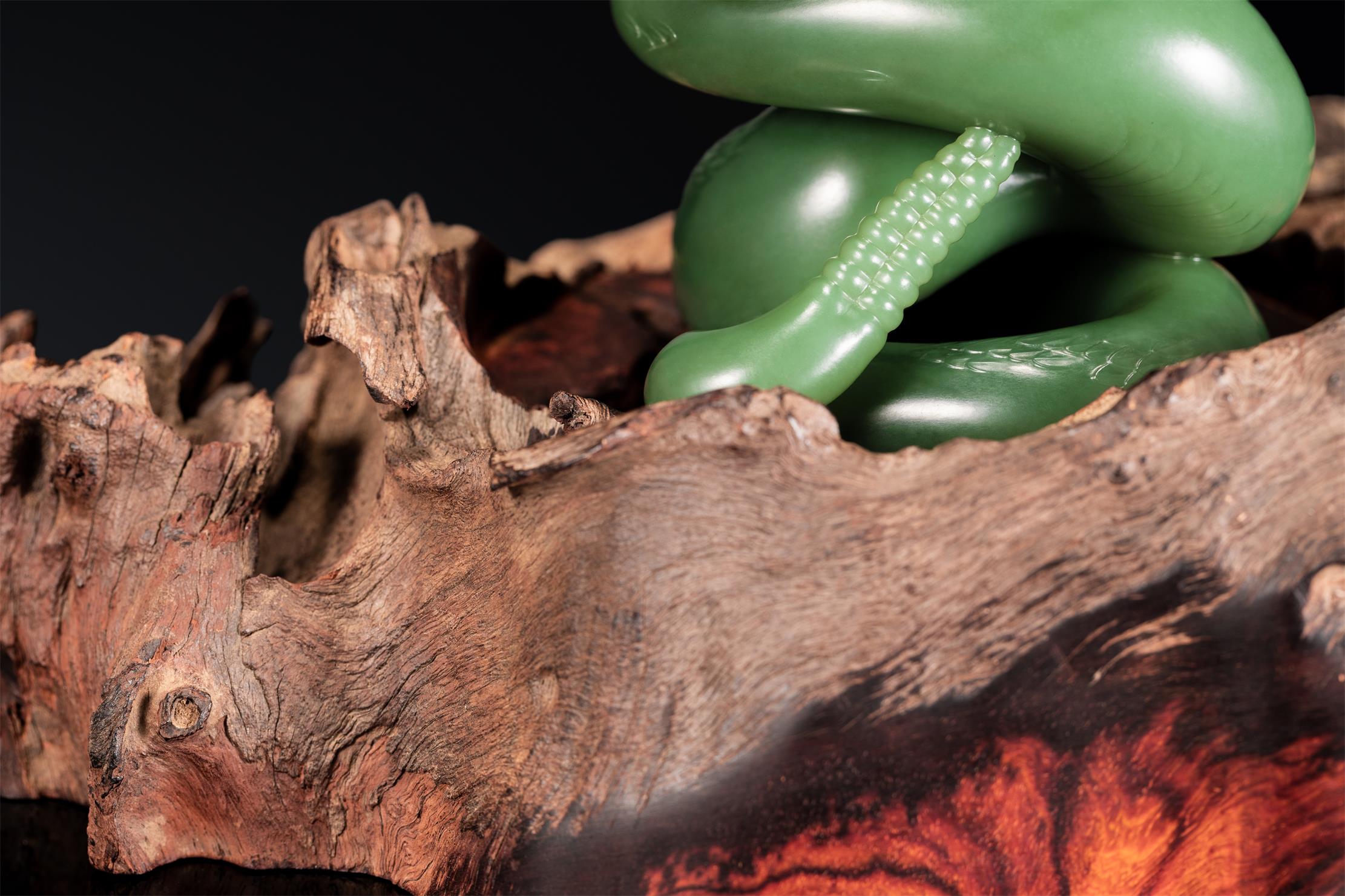 蛇身遒曲盘绕,鳞片偶现精工,线条彰显柔劲之美。