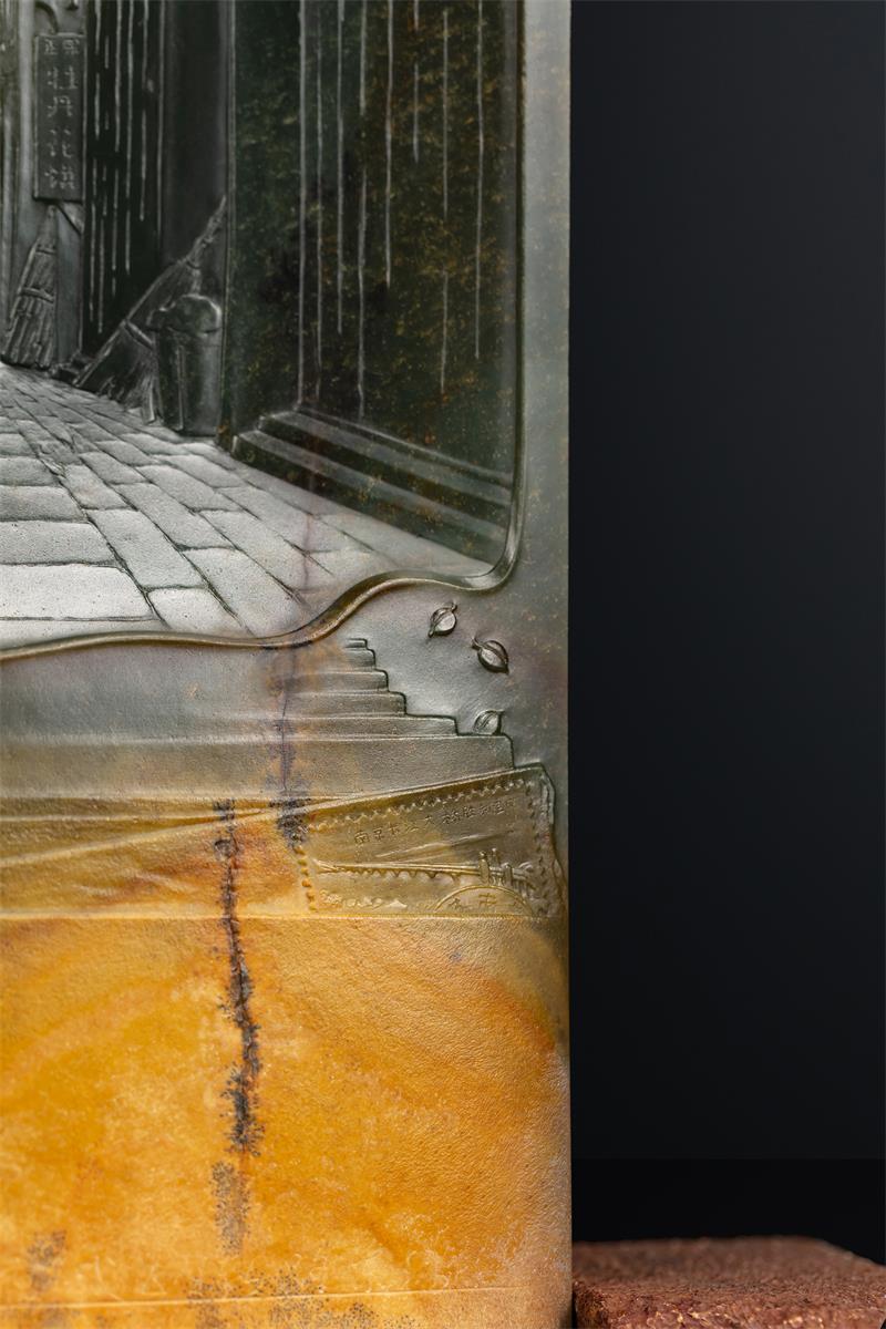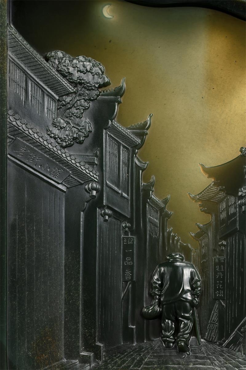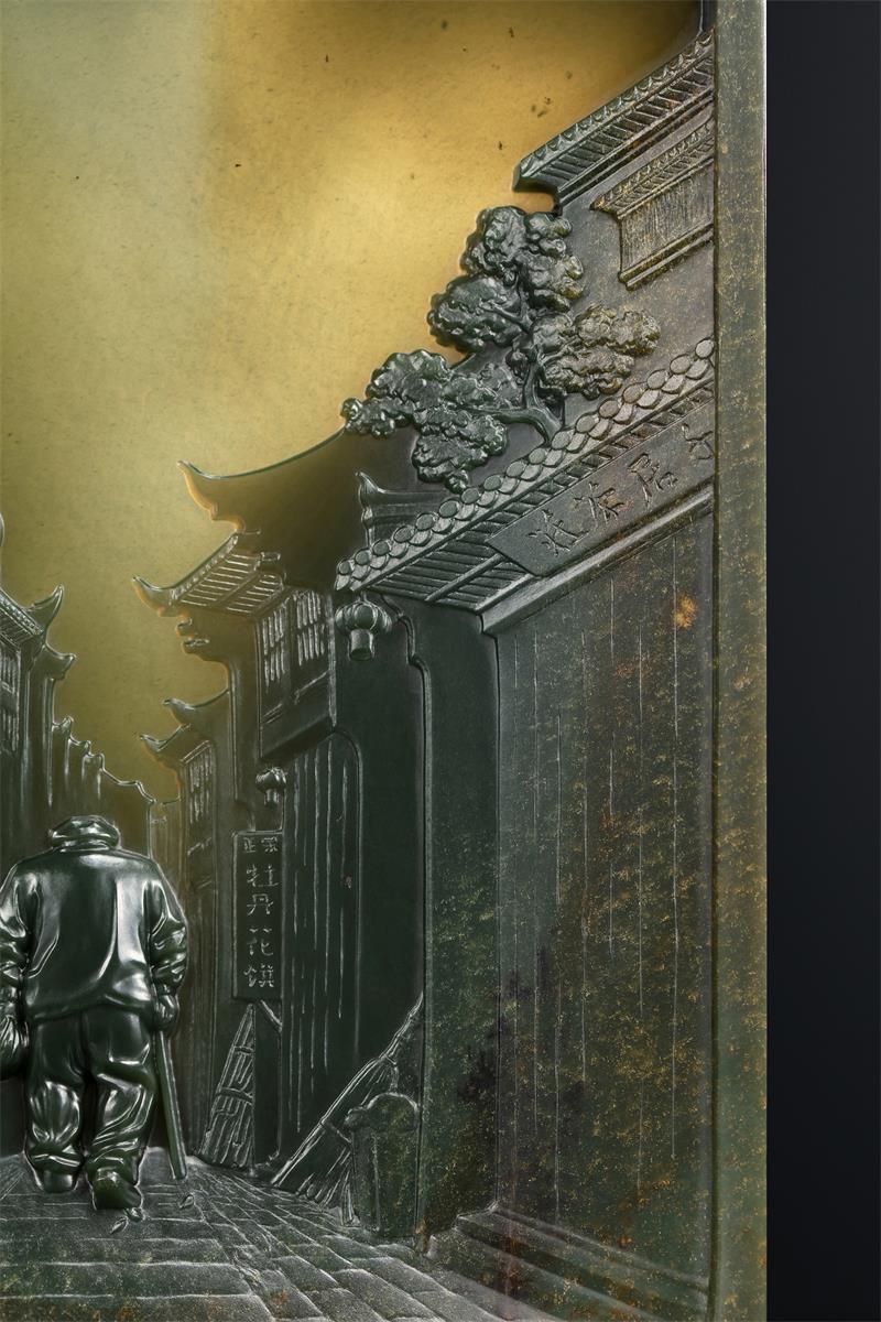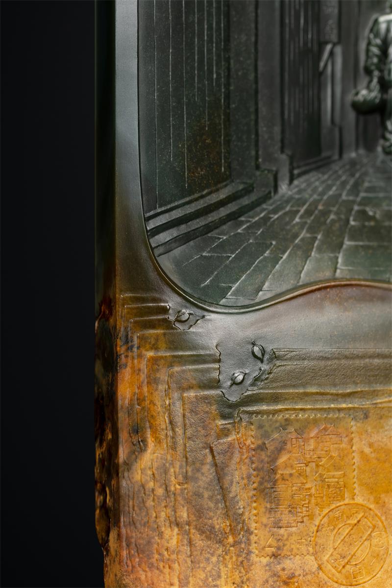 我问赵大师:“玉雕是人文与自然的结合,您是怎么想到以《背影》为主题,巧妙利用料性,呈现相得益彰的美?”