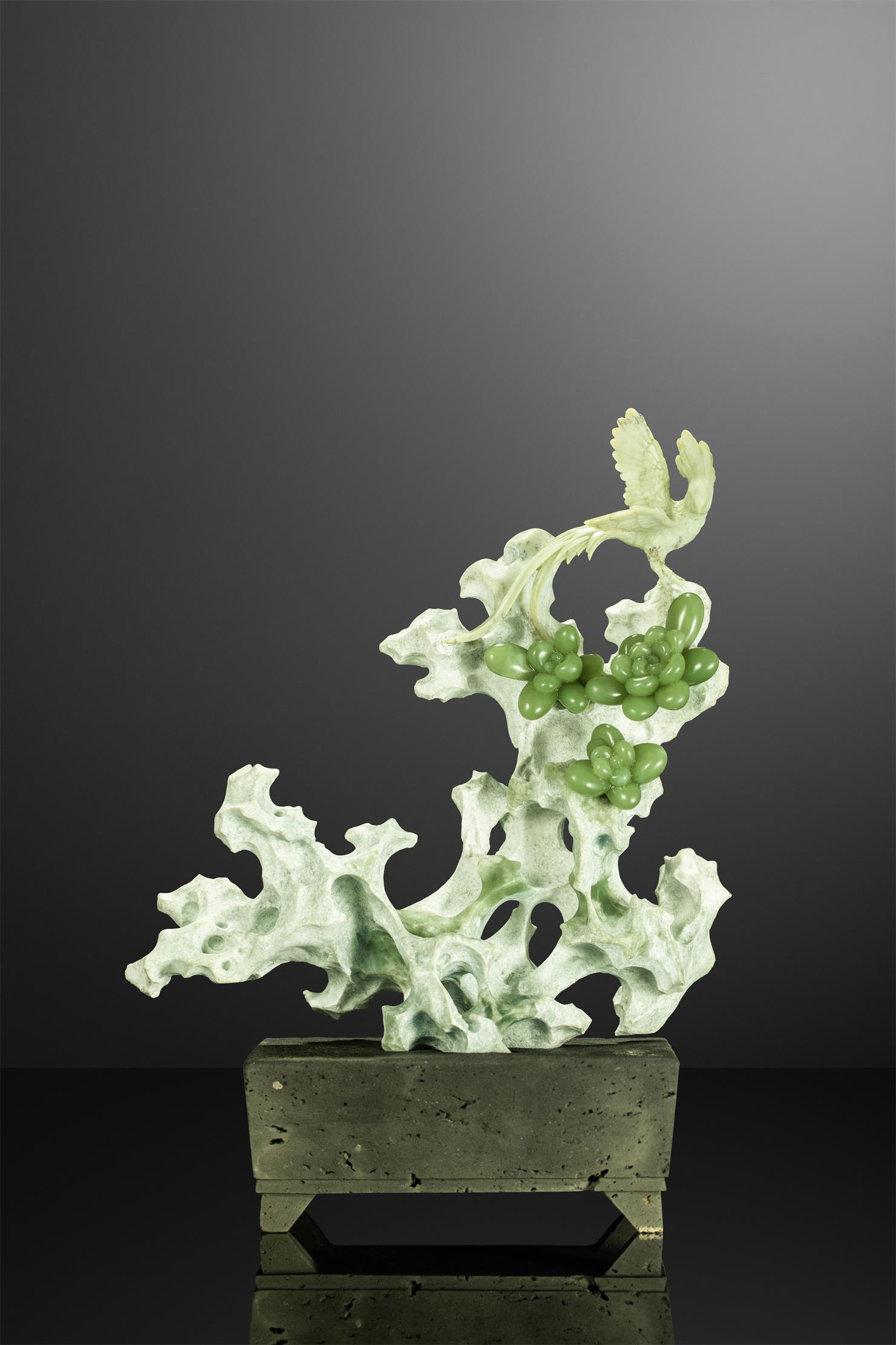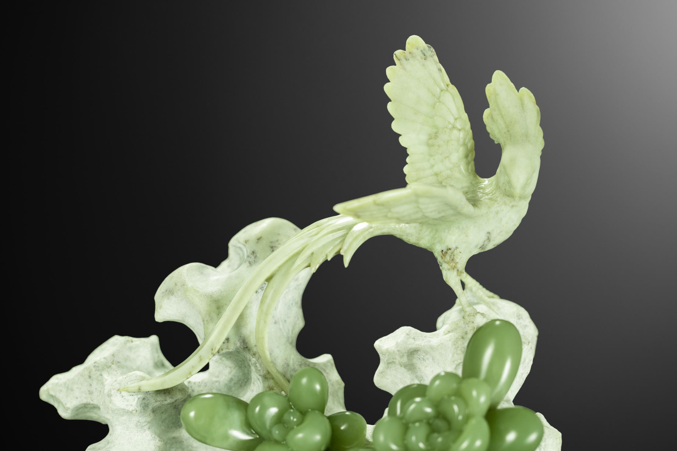 据考证,在商晚期就有玉凤凰、玉鹦鹉等花鸟题材的玉雕作品,这些作品不仅形神兼备、惟妙惟肖,还极富生活情趣,体现出艺术家们对禽鸟花卉的观察入微。