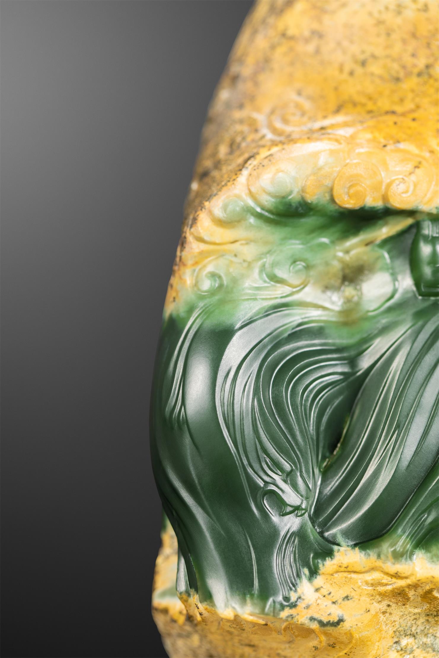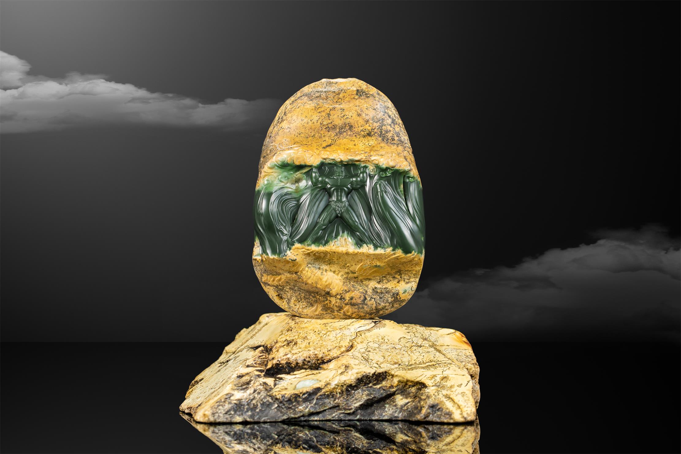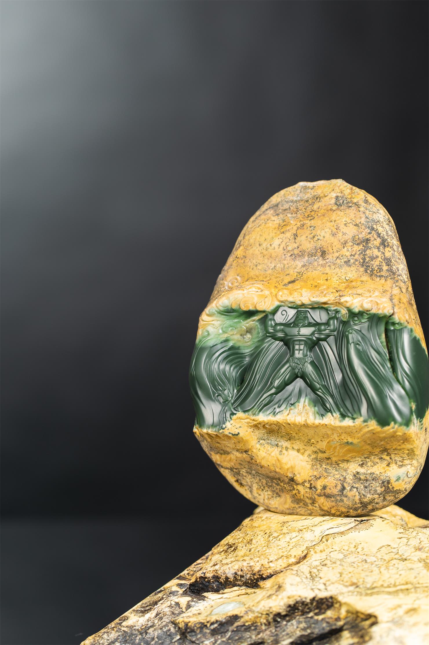 析木玉独特的皮子,把萧野混沌的意境还原,与原石底座形成整体色彩的协调。