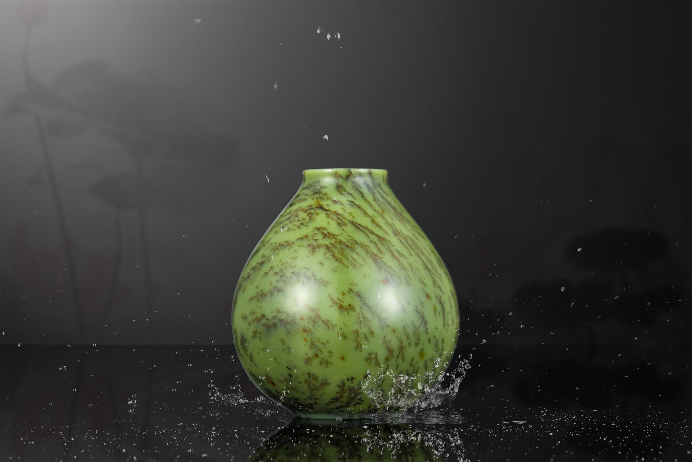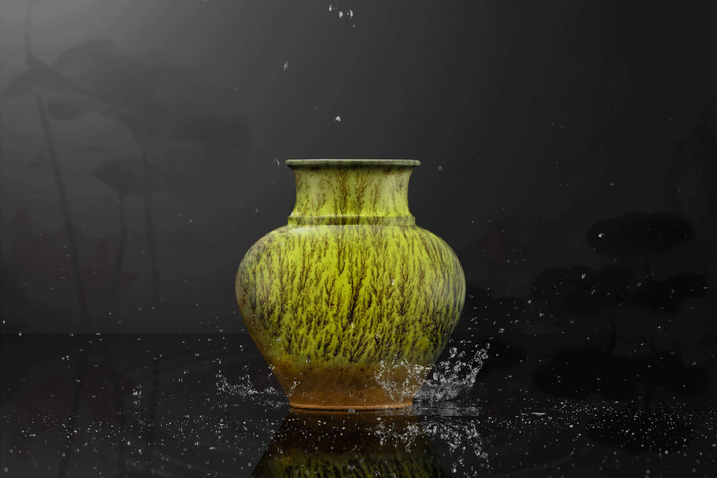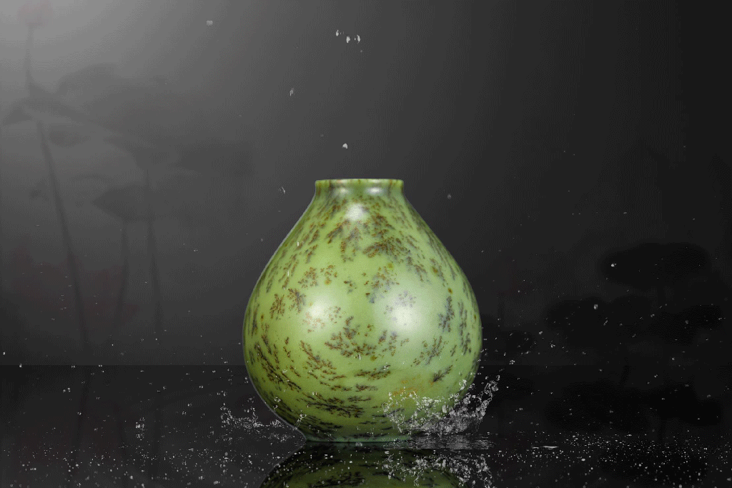 两个瓶器,一个圆融简雅,一个古朴端静,通身线条流畅优美,质地细腻润泽,胎薄如禅翼,画面自带构图章法与笔墨意境。